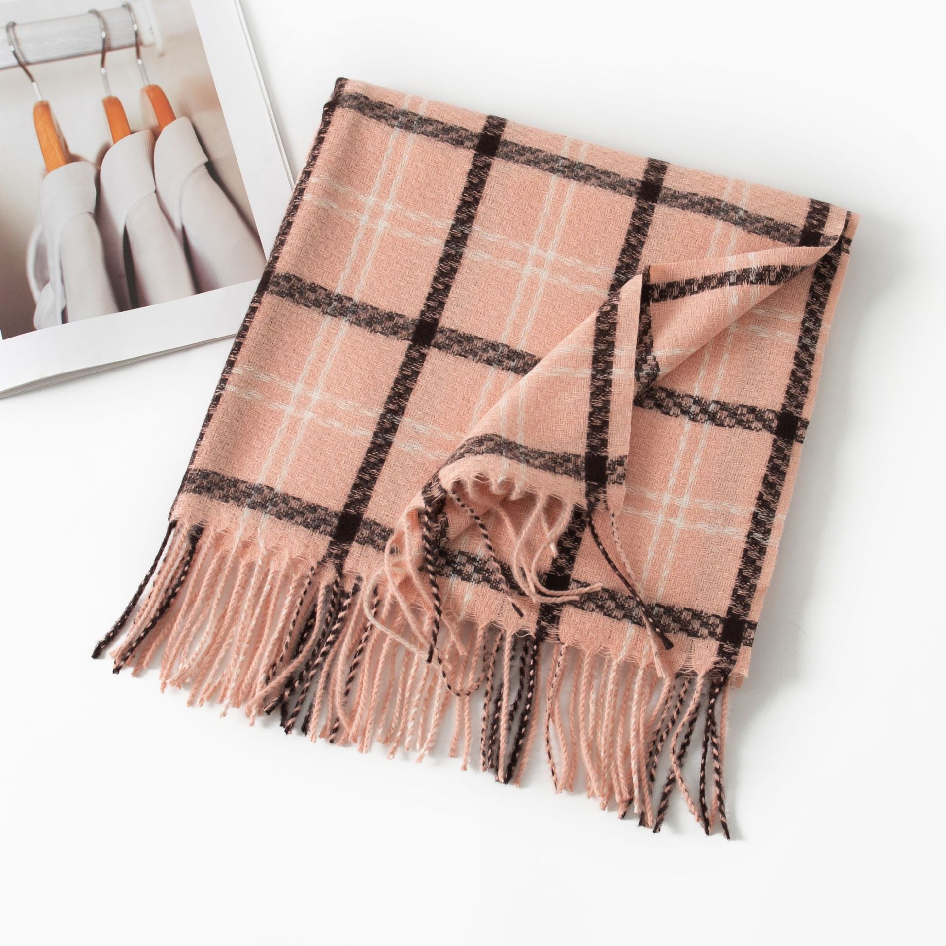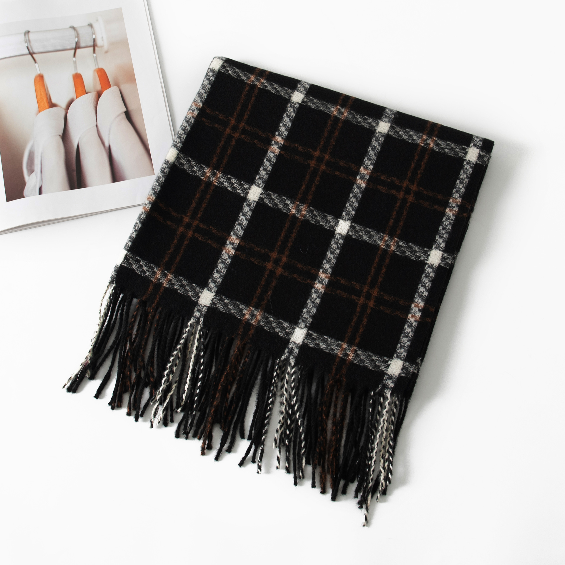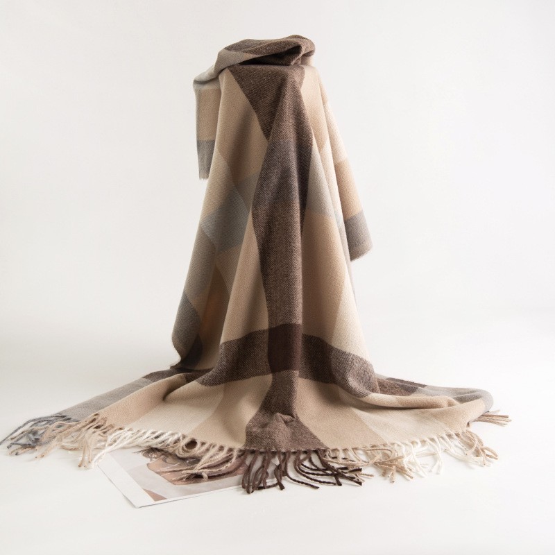 2024新款韩版仿羊绒围巾格纹加厚防寒披肩学生长款秋冬季保暖围脖