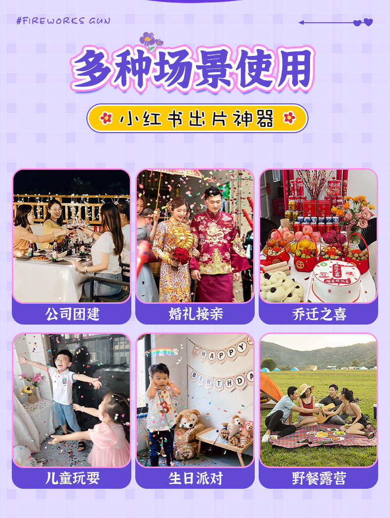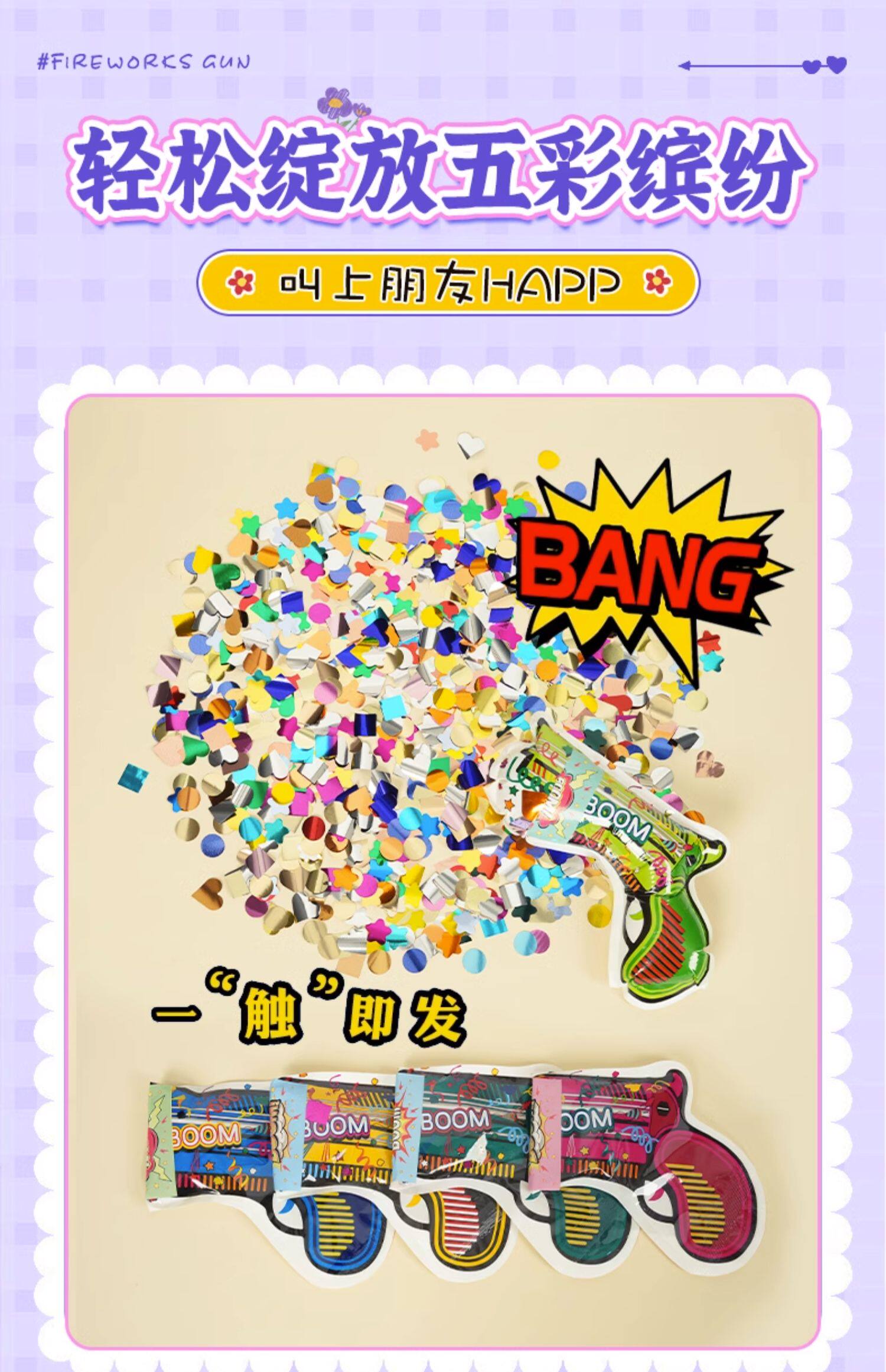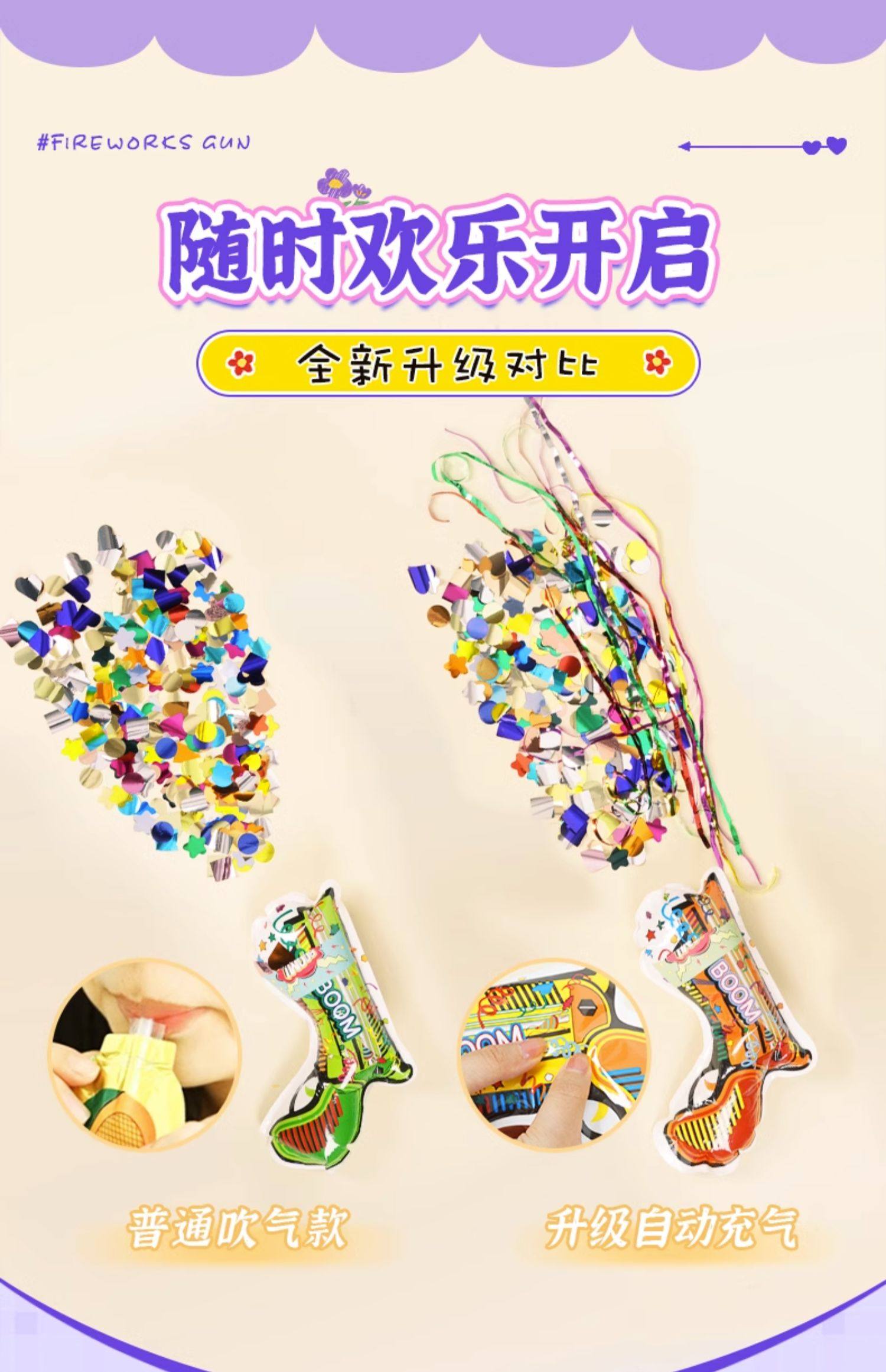 充气礼花枪新年自动抢烟花枪小礼炮手抛彩带过年鞭炮气氛生日喷筒