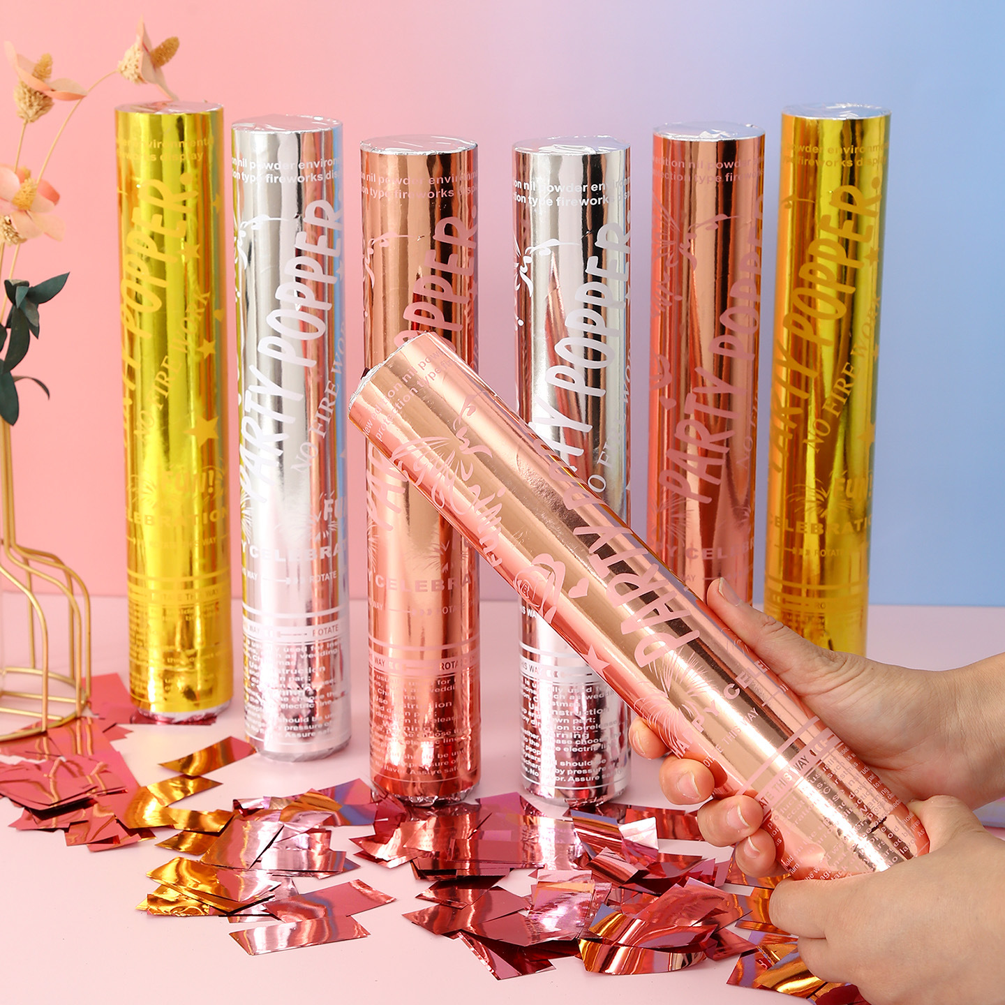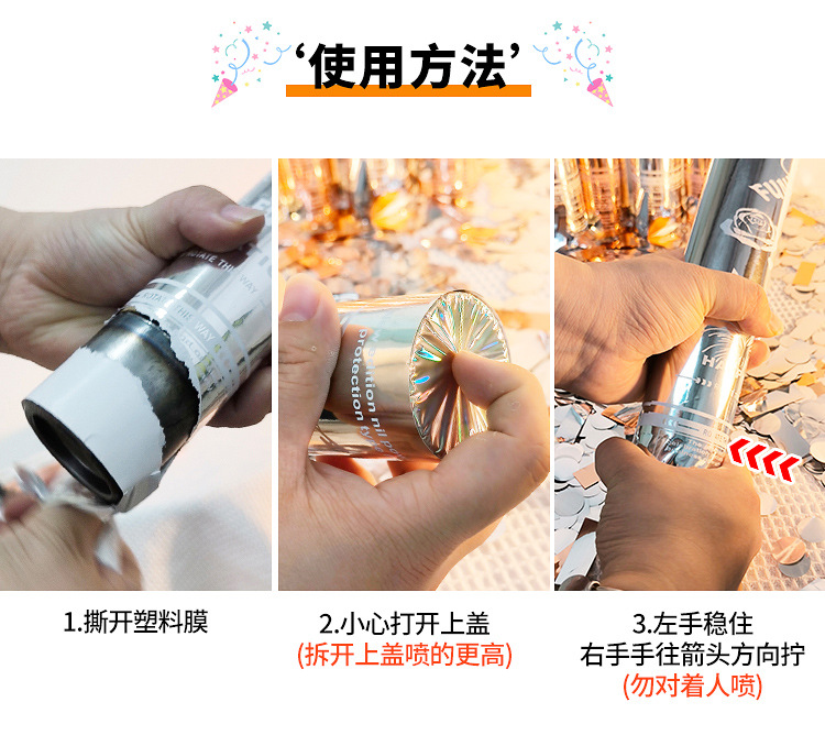 亮片喷花筒婚礼镭射喜庆礼花结婚乔迁生日手拧礼炮金色银色玫彩带