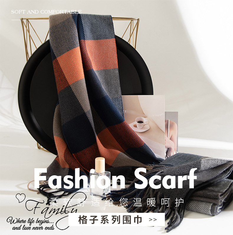 独立站冬季爆款英伦风格子仿羊绒围巾男高级感棋盘格防寒披肩围脖