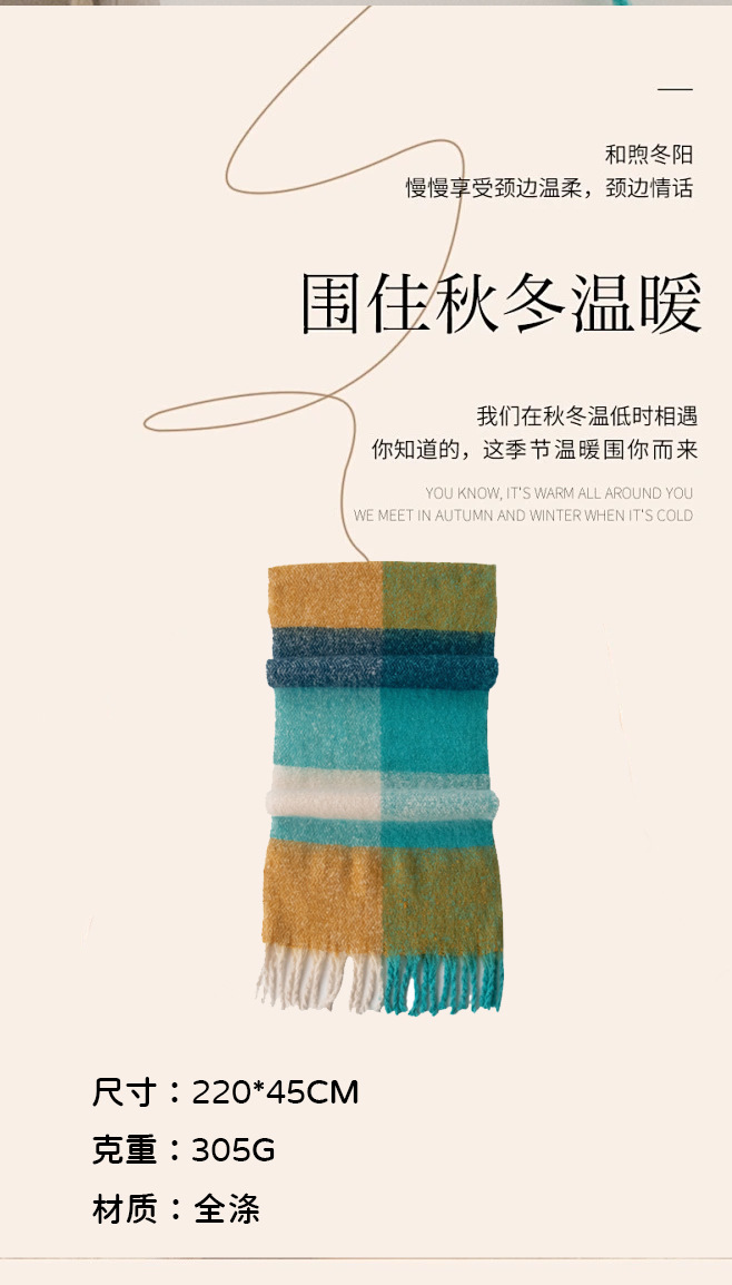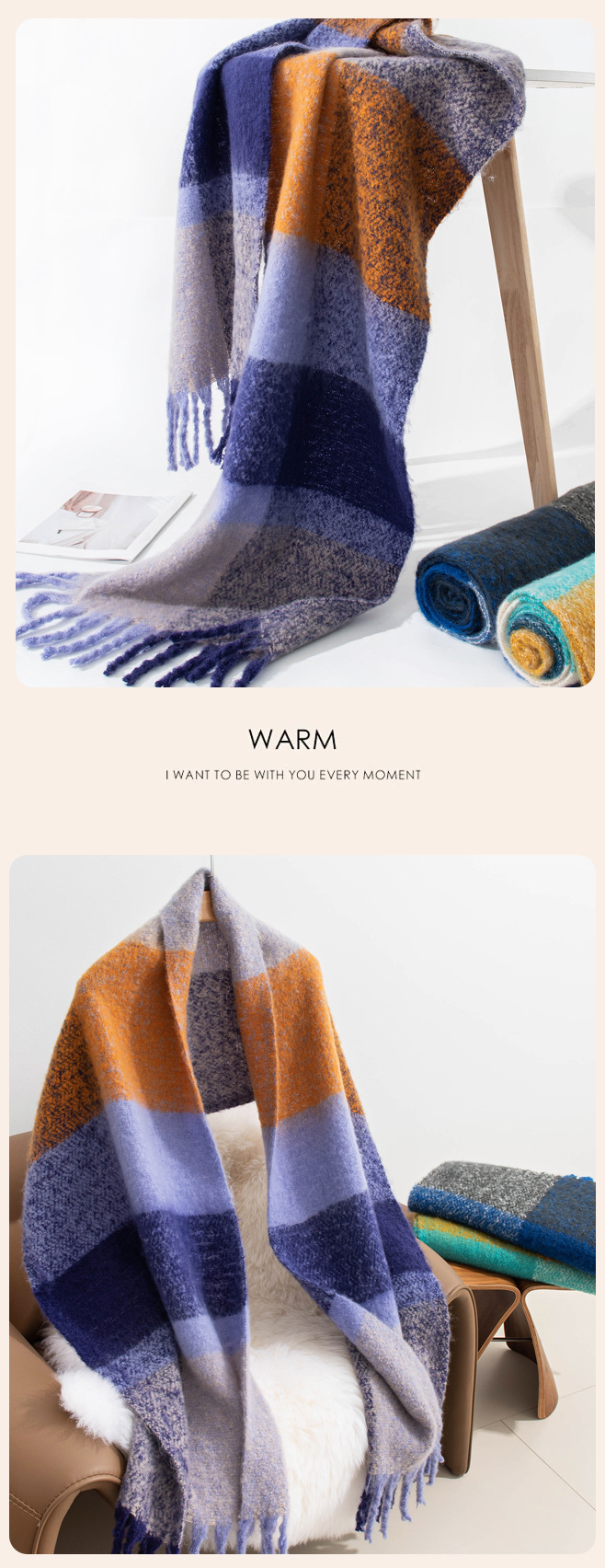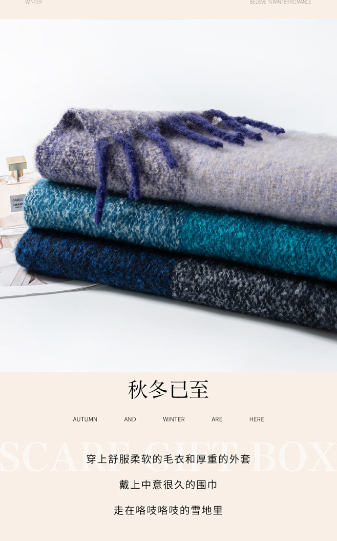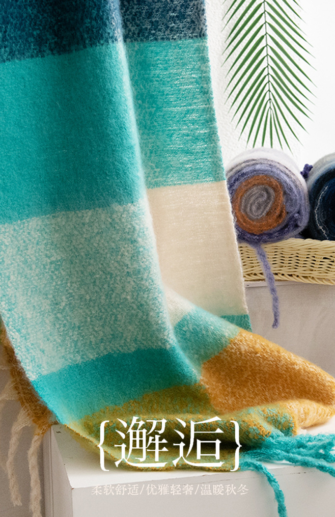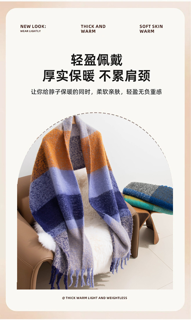 新款蓬松大拉毛女士保暖围巾时尚百搭格纹围脖高级感通勤披肩批发