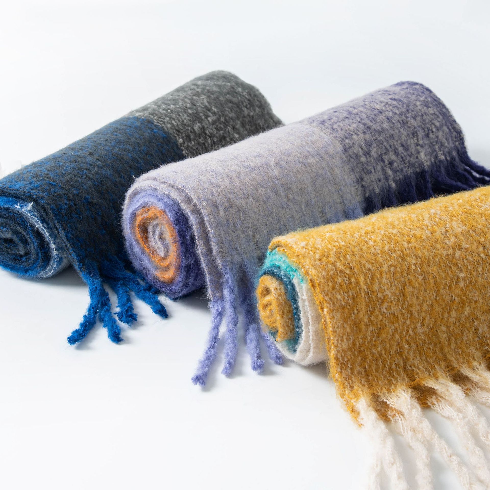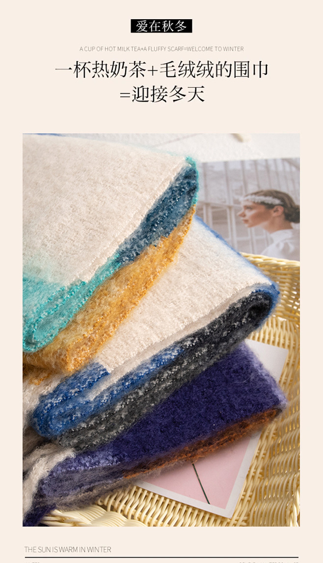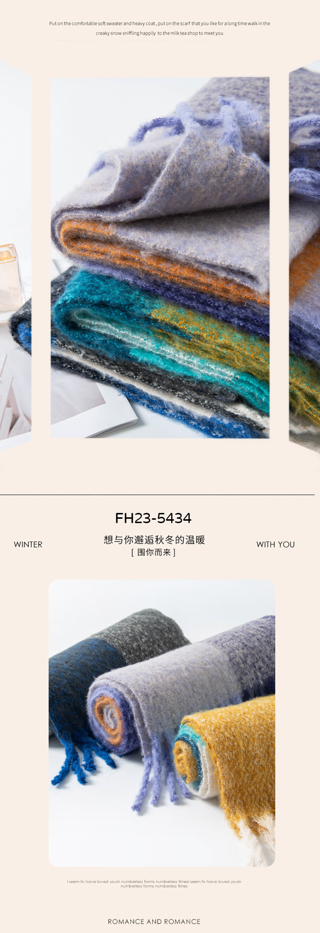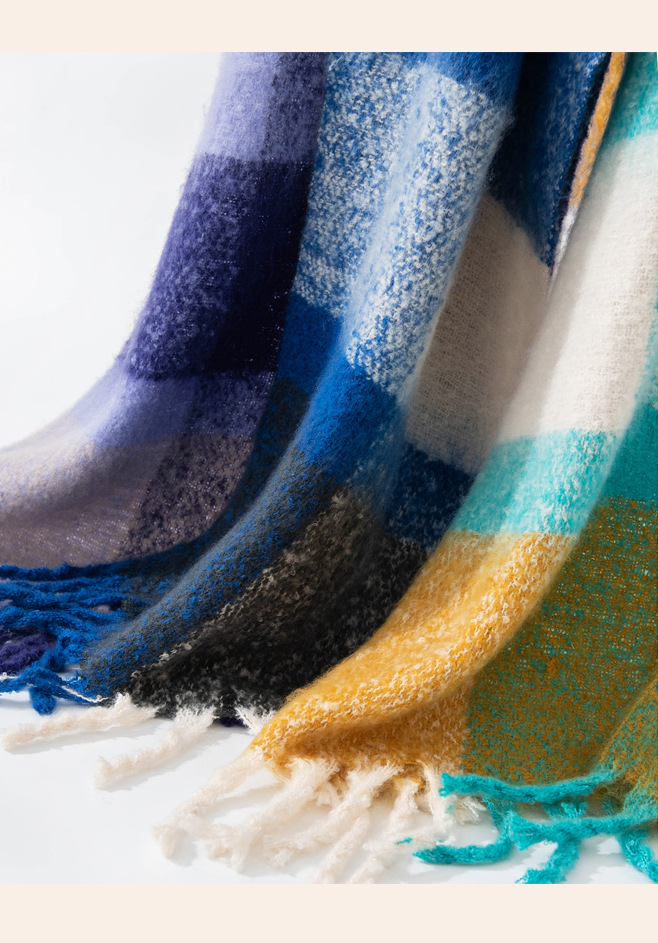 新款蓬松大拉毛女士保暖围巾时尚百搭格纹围脖高级感通勤披肩批发