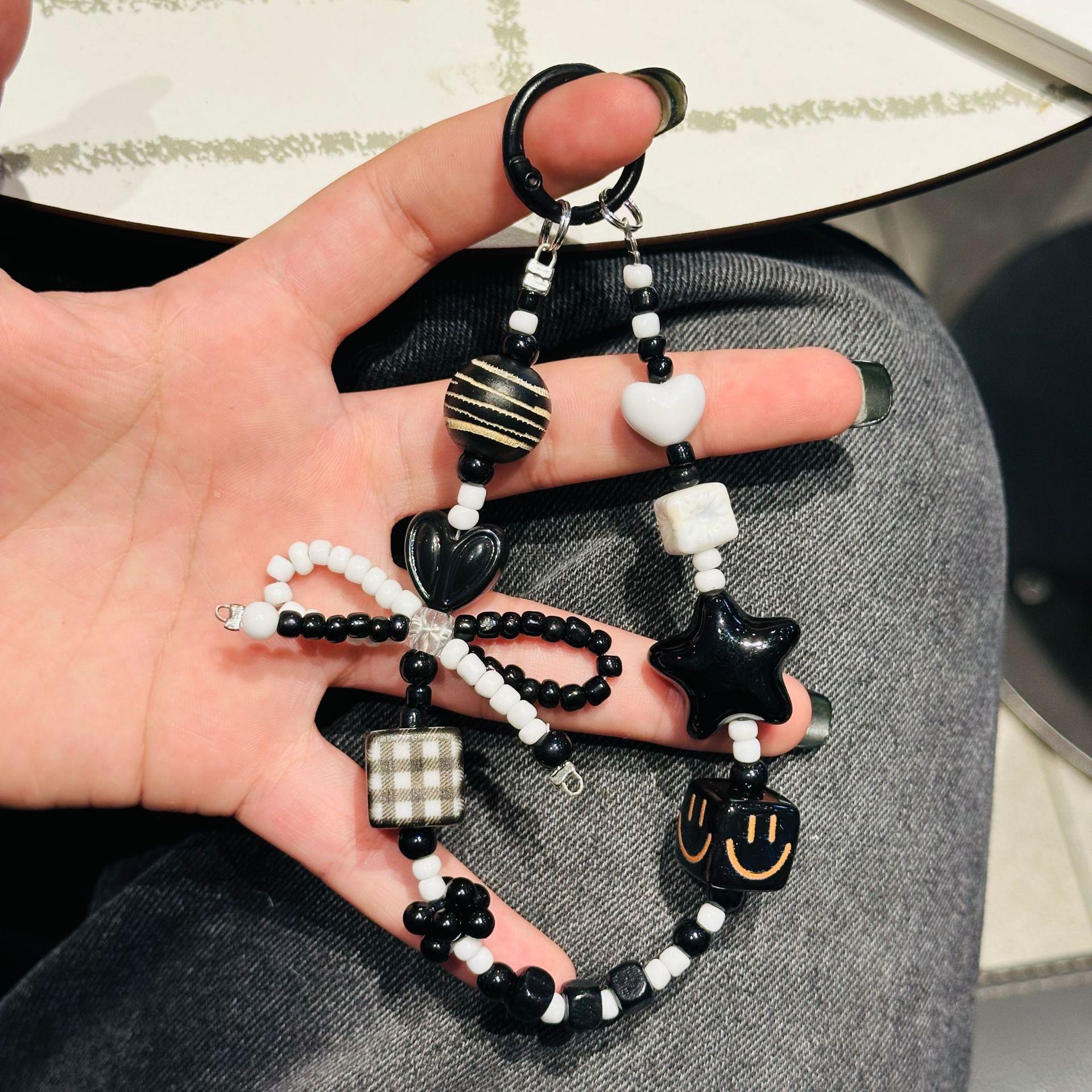 新款多巴胺笑脸手机链挂件蝴蝶结串珠小红书手腕挂链包包相机挂饰