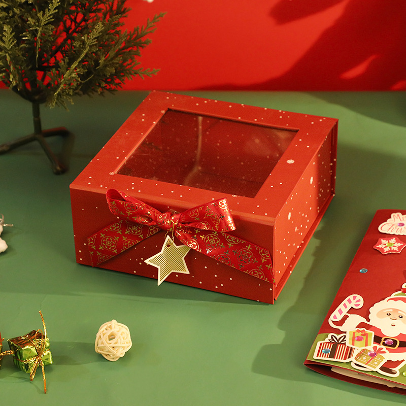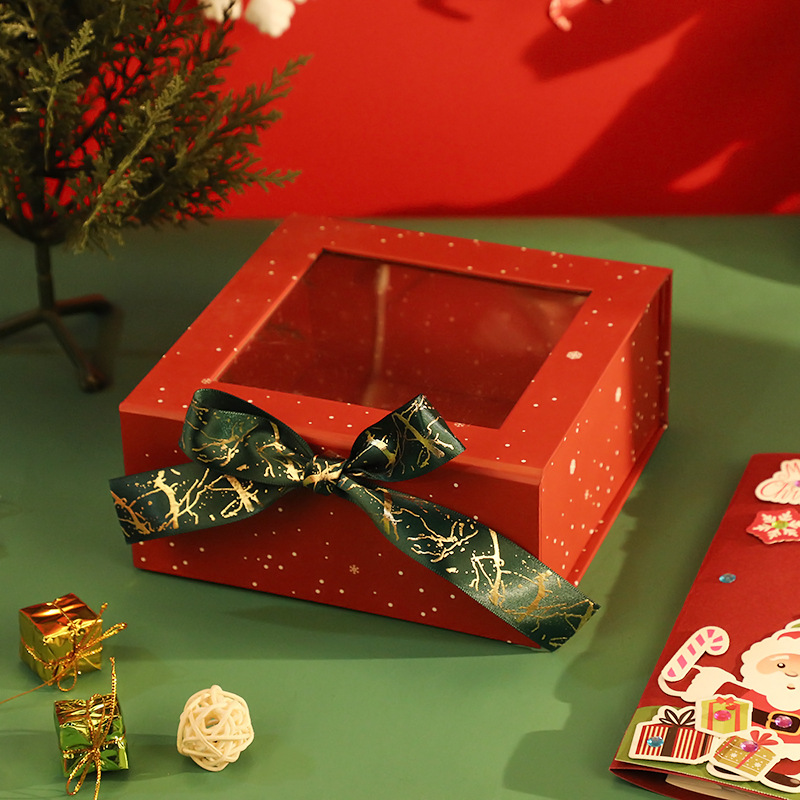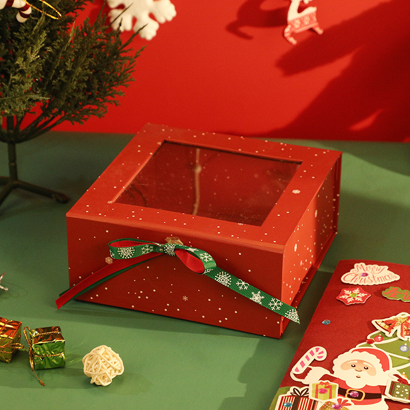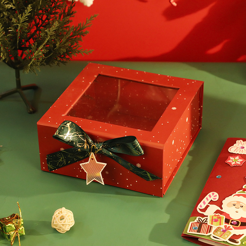 现货口红新年折叠翻盖礼品盒礼物盒翻盖盒开窗包装盒红色礼盒厂家