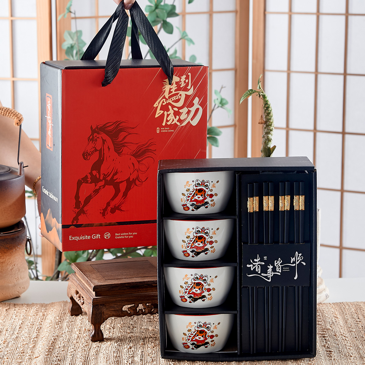 新年礼物活动马年礼品开业赠送伴手礼碗礼盒套装商务结婚回礼国潮