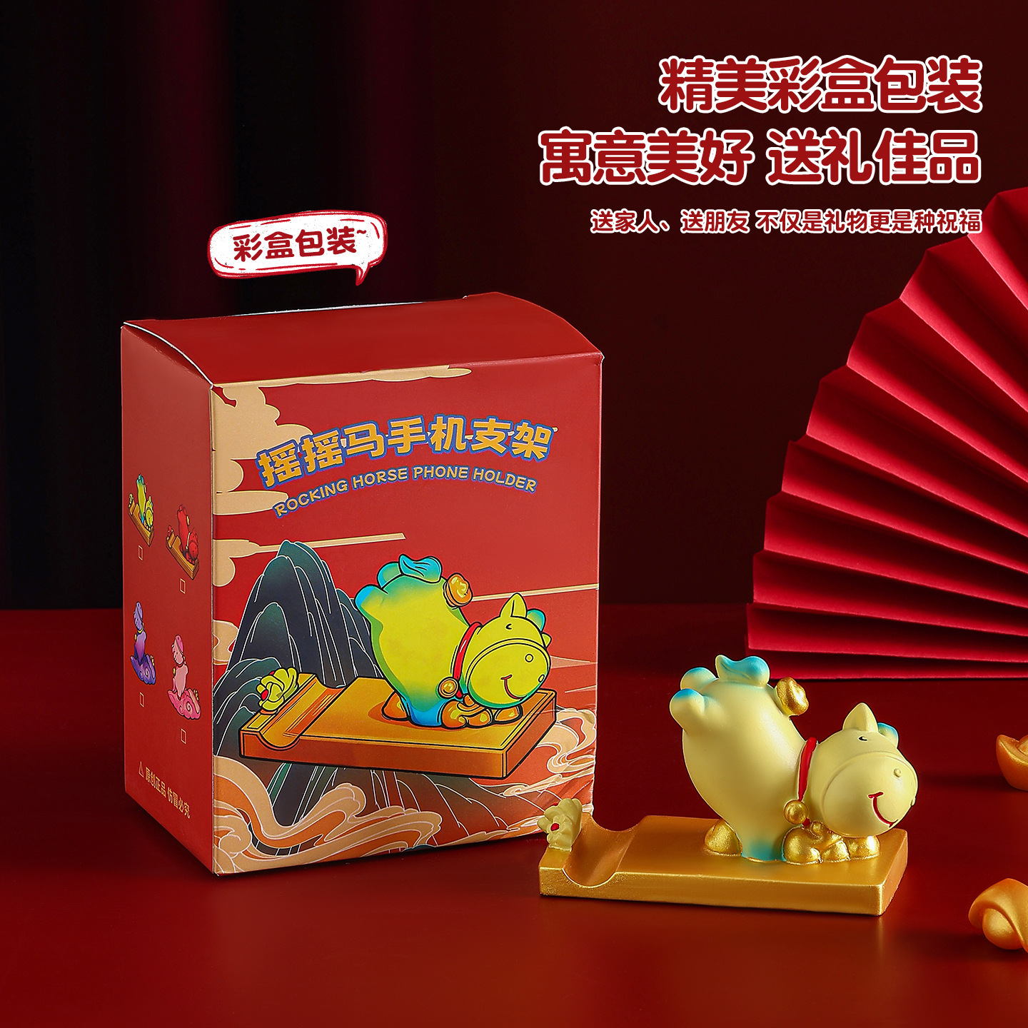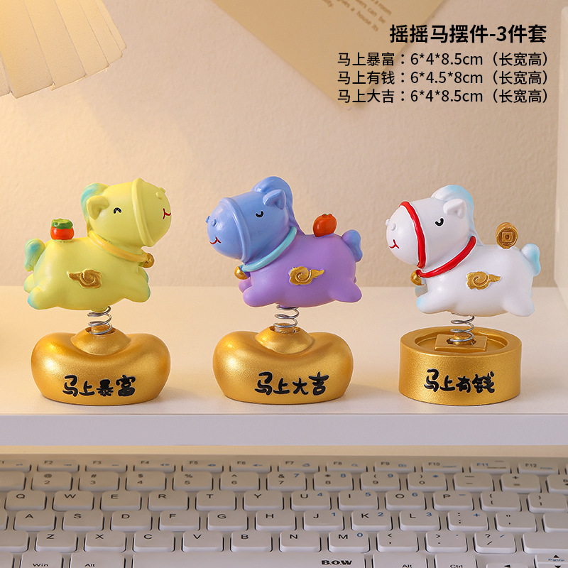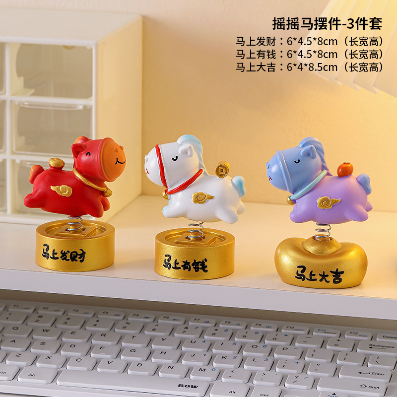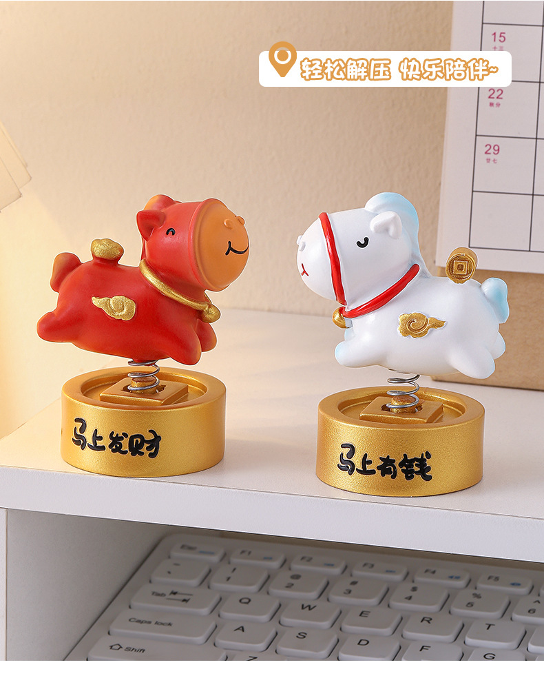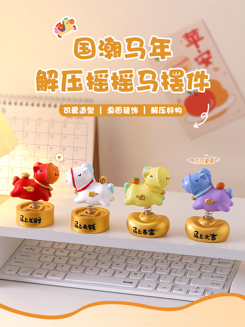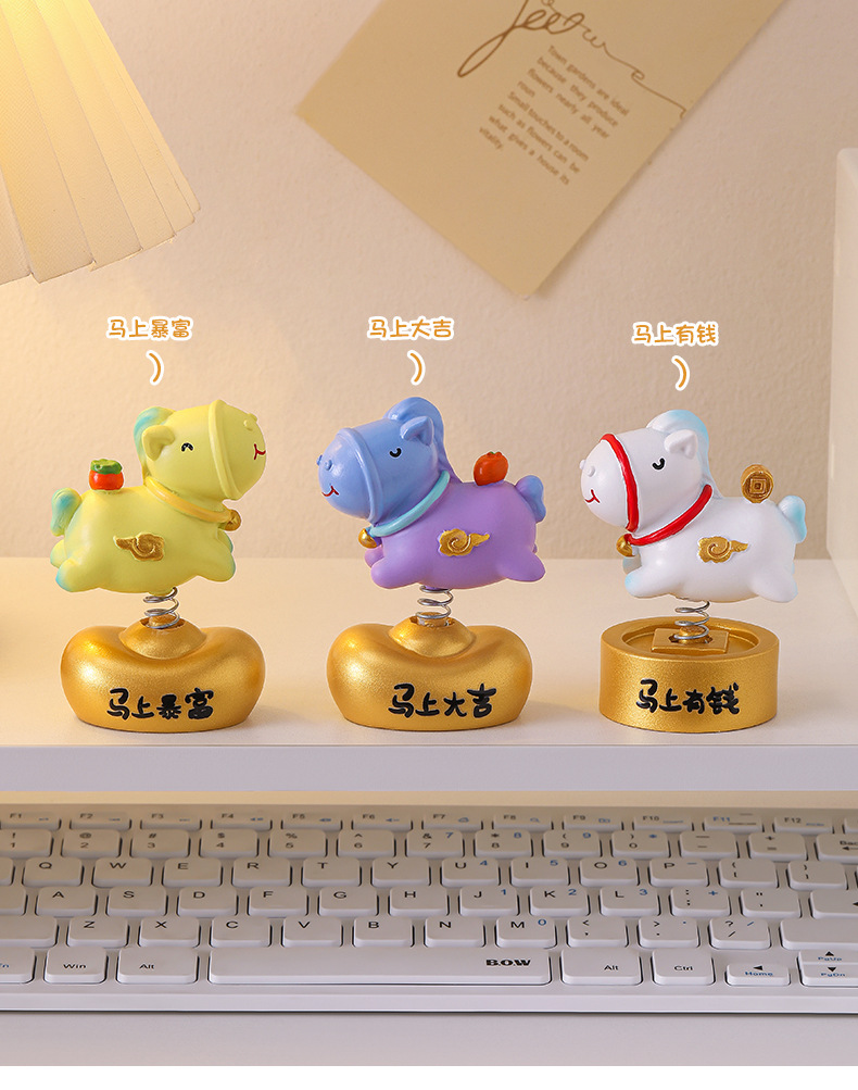摇摇马小摆件办公室工位桌面装饰品马年手机支架生肖礼品伴手礼