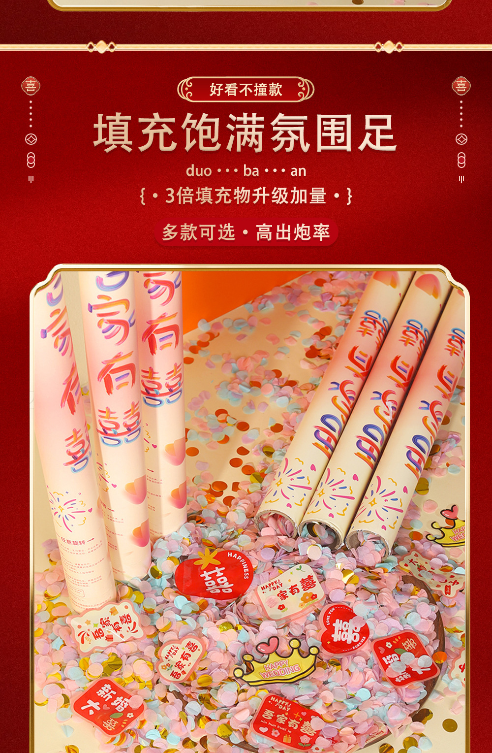 礼花筒多巴胺彩绘礼炮手持礼筒结婚求婚订婚手拧式婚礼氛围喷花筒
