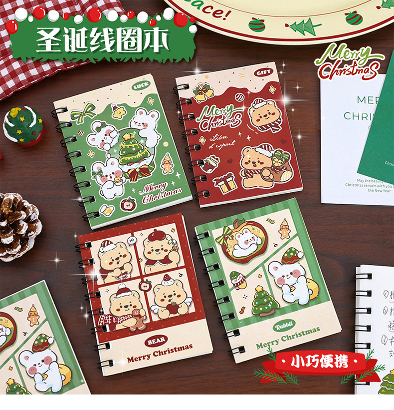 圣诞卡通线圈本可爱迷你小本子学生便携口袋本笔记本圣诞节小礼物