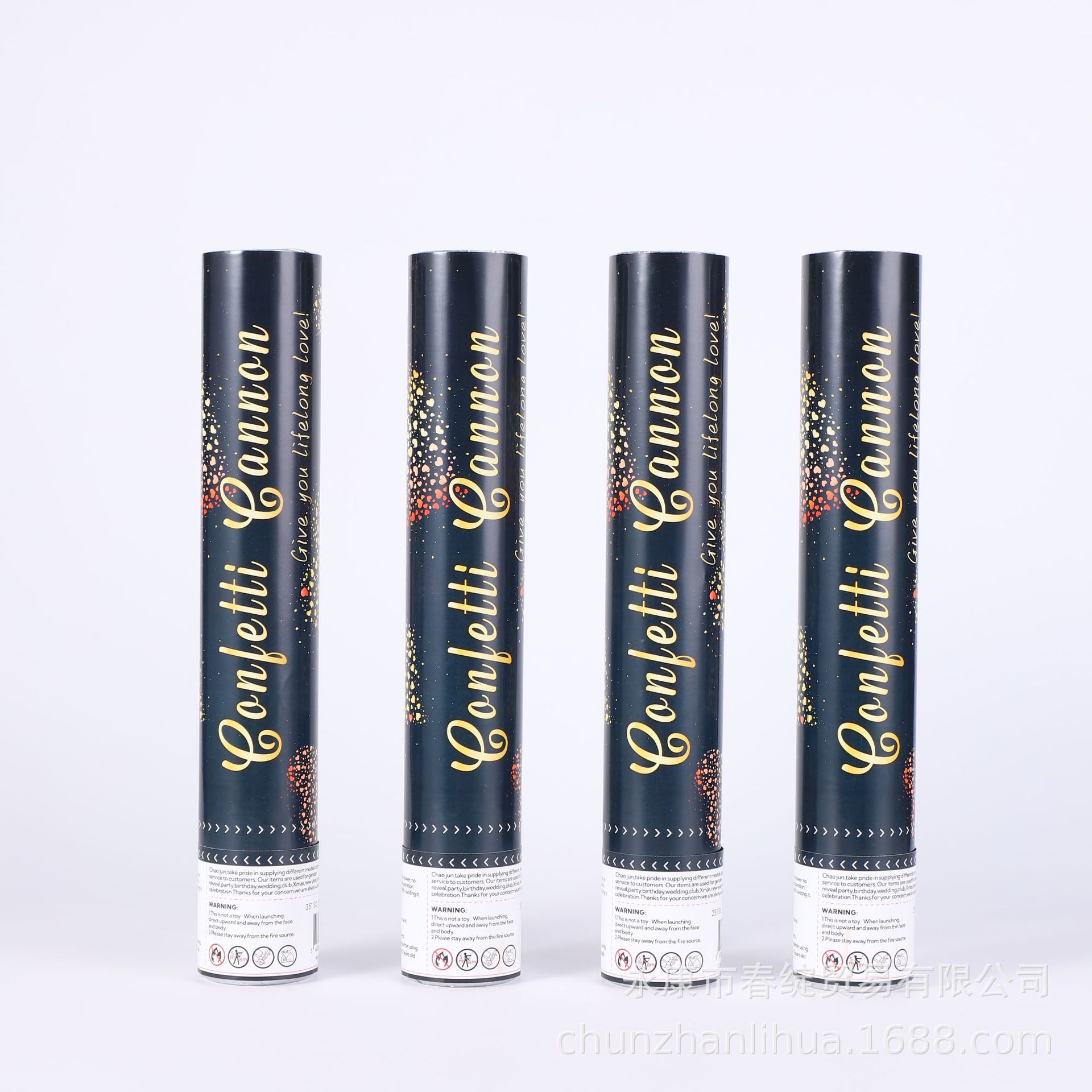 厂家直销黑金红色爱心派对手拧礼炮旋转礼花五彩纸屑礼花现货速发