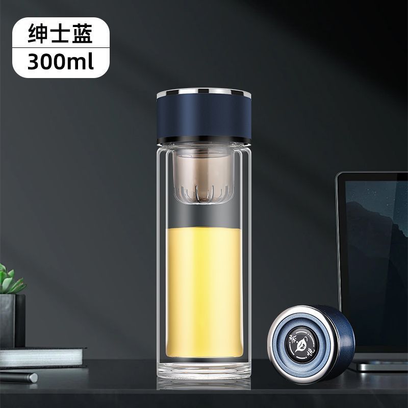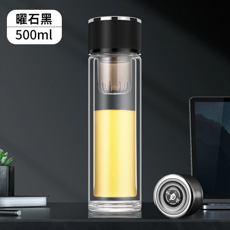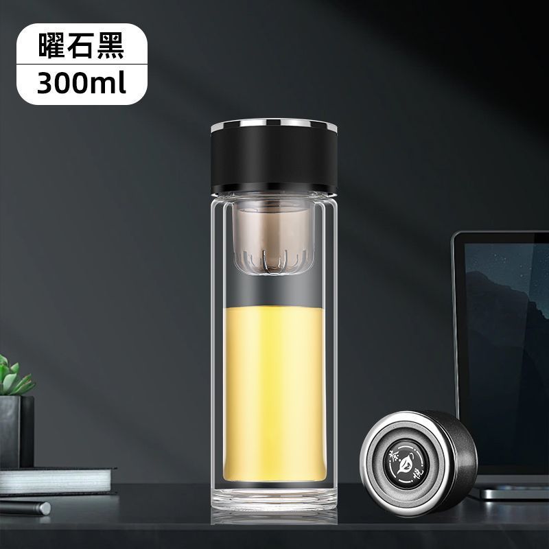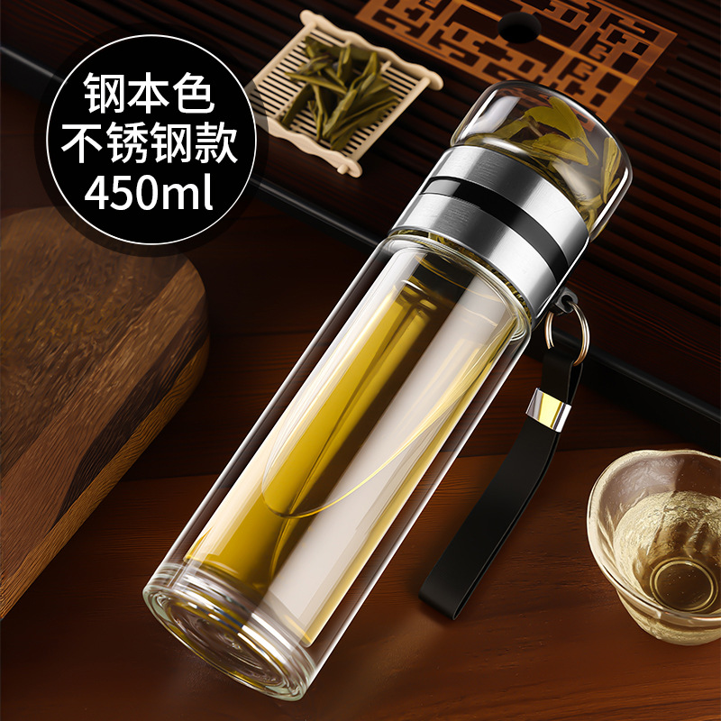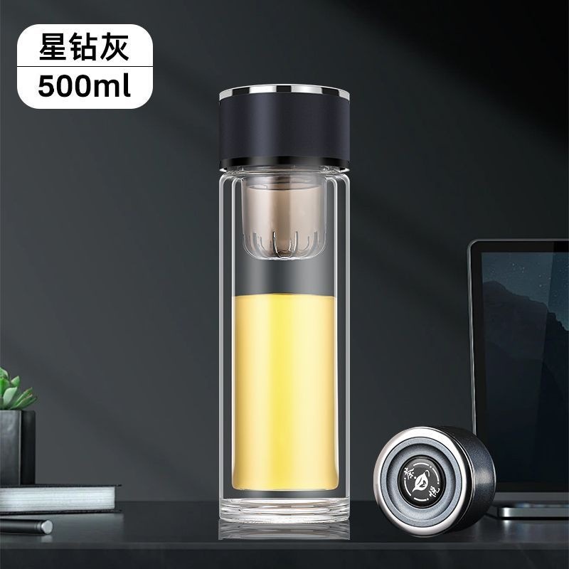 高硼硅双层加厚玻璃杯耐高温茶水分离杯高级感轻奢大容量水杯便携