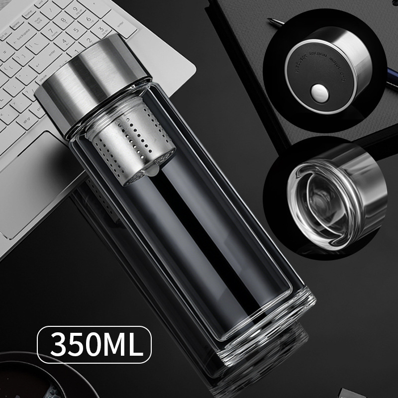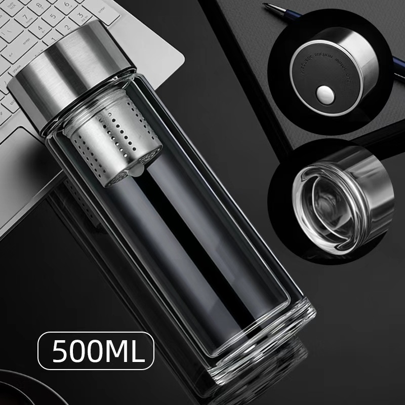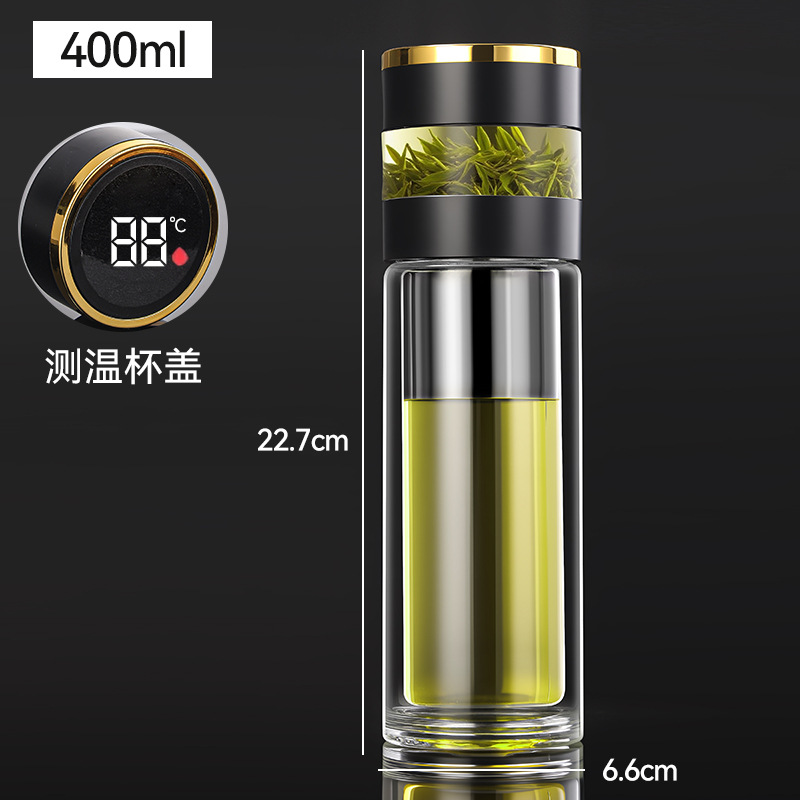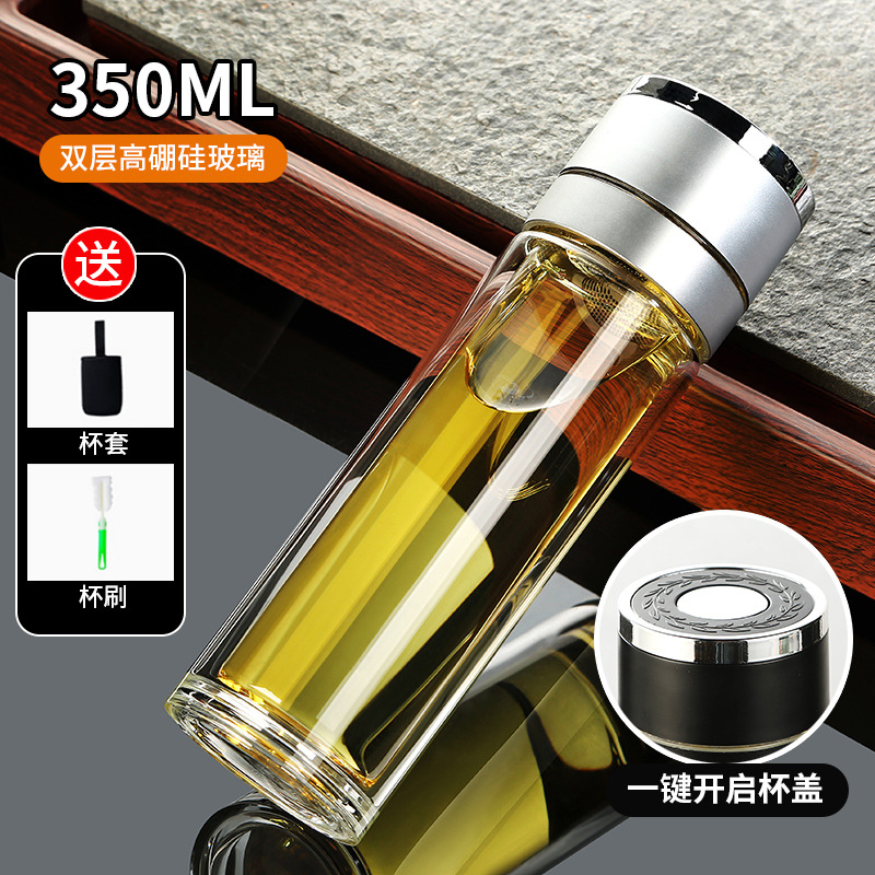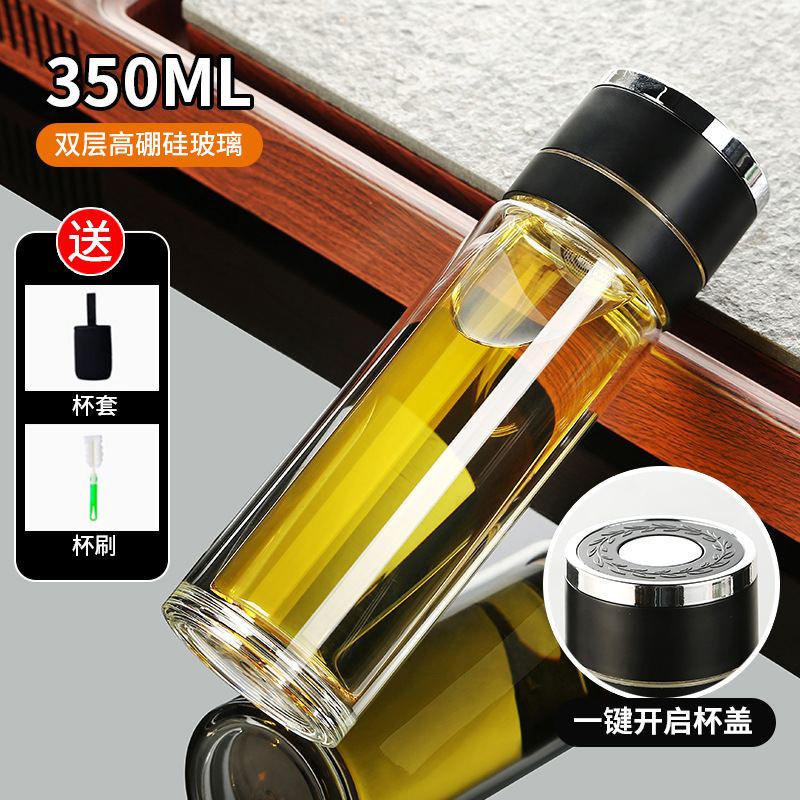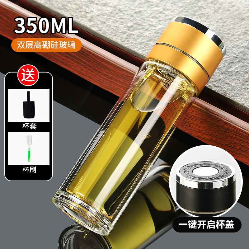 高硼硅双层加厚玻璃杯耐高温茶水分离杯高级感轻奢大容量水杯便携