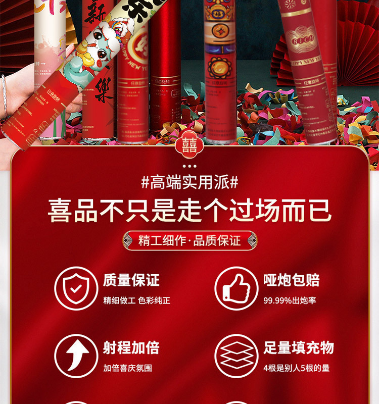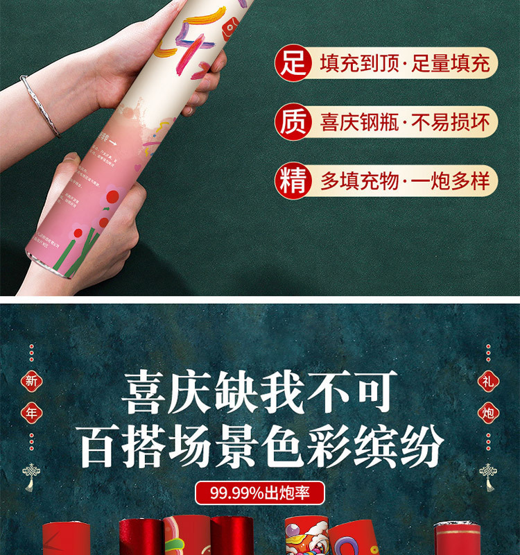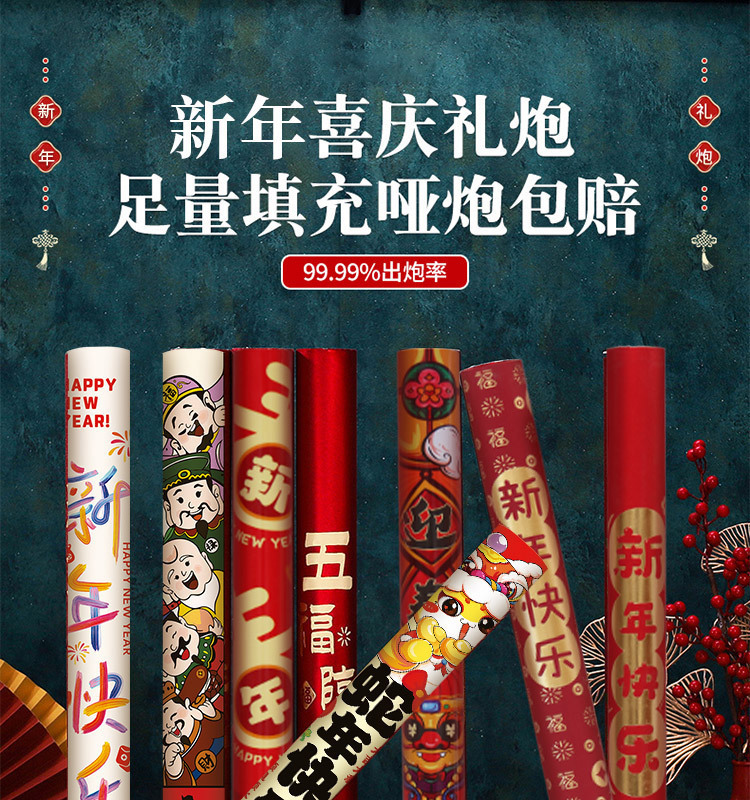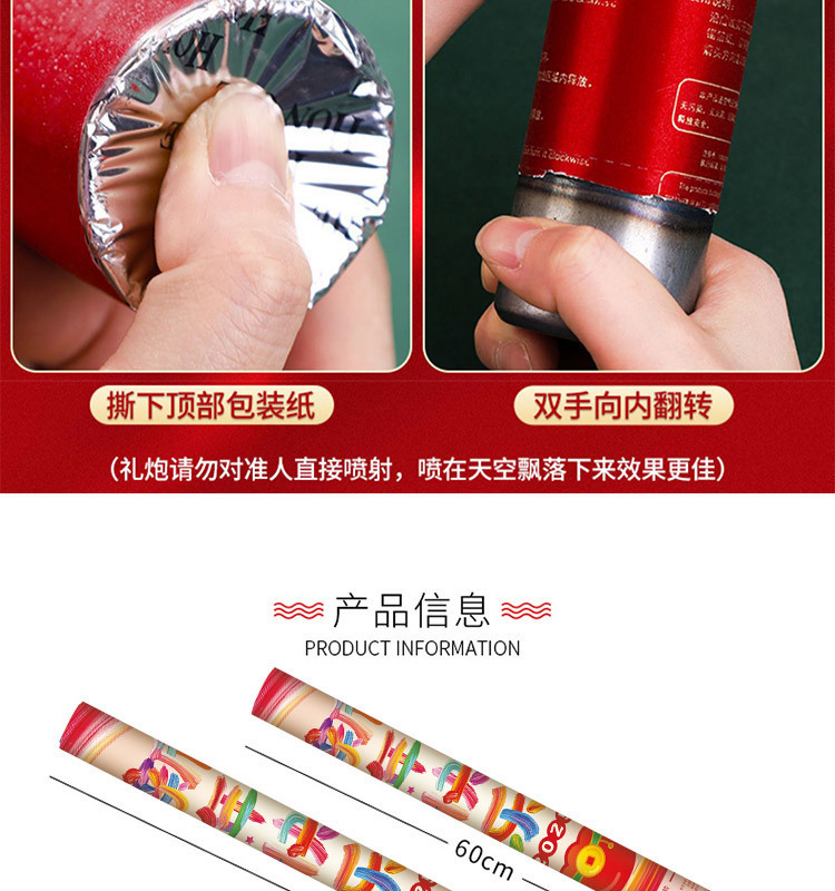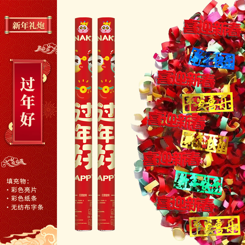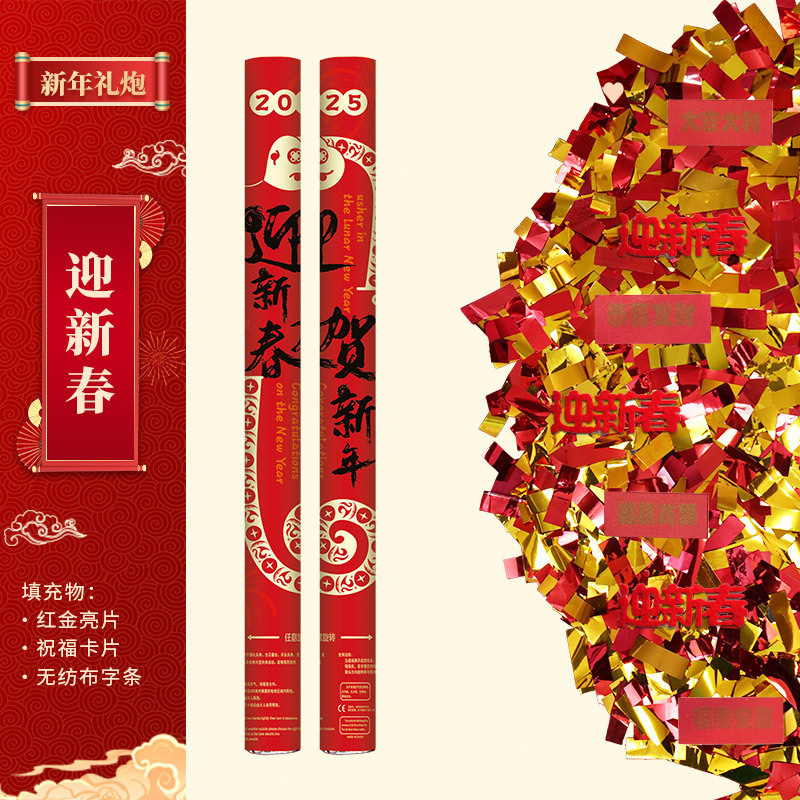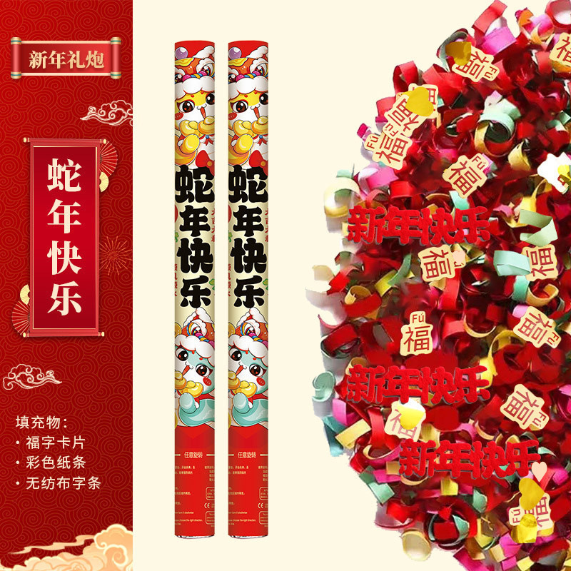 礼炮2025新年迎新春蛇年家用手持礼花开业礼筒炮手抛带仪式用品
