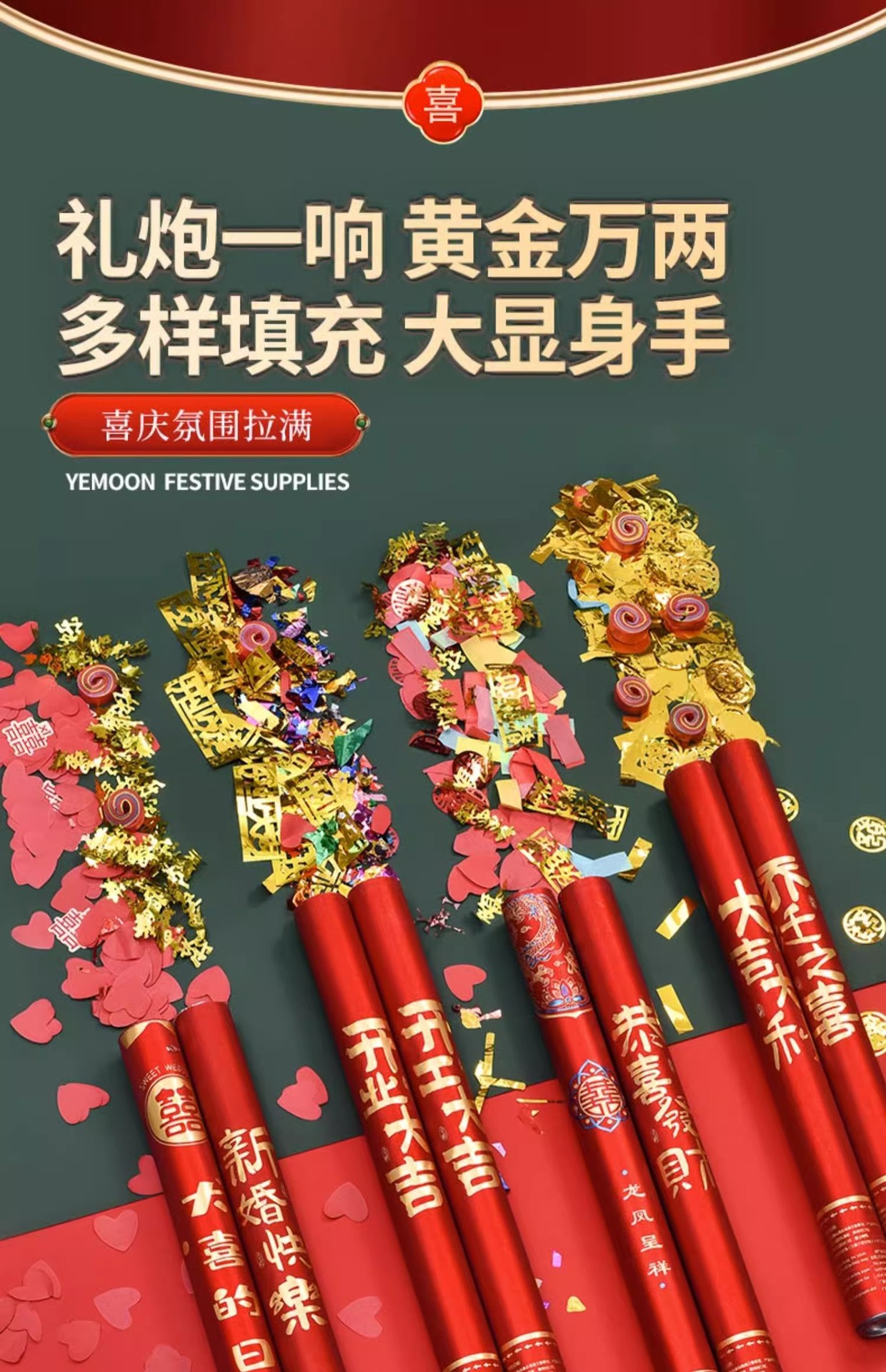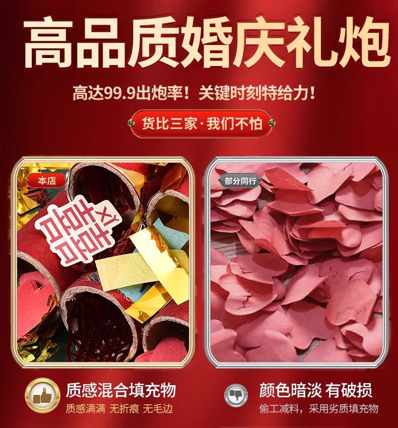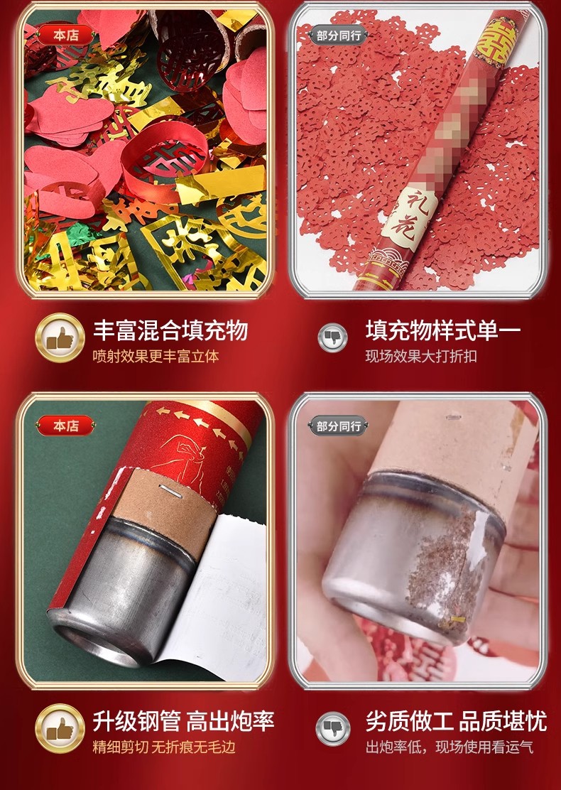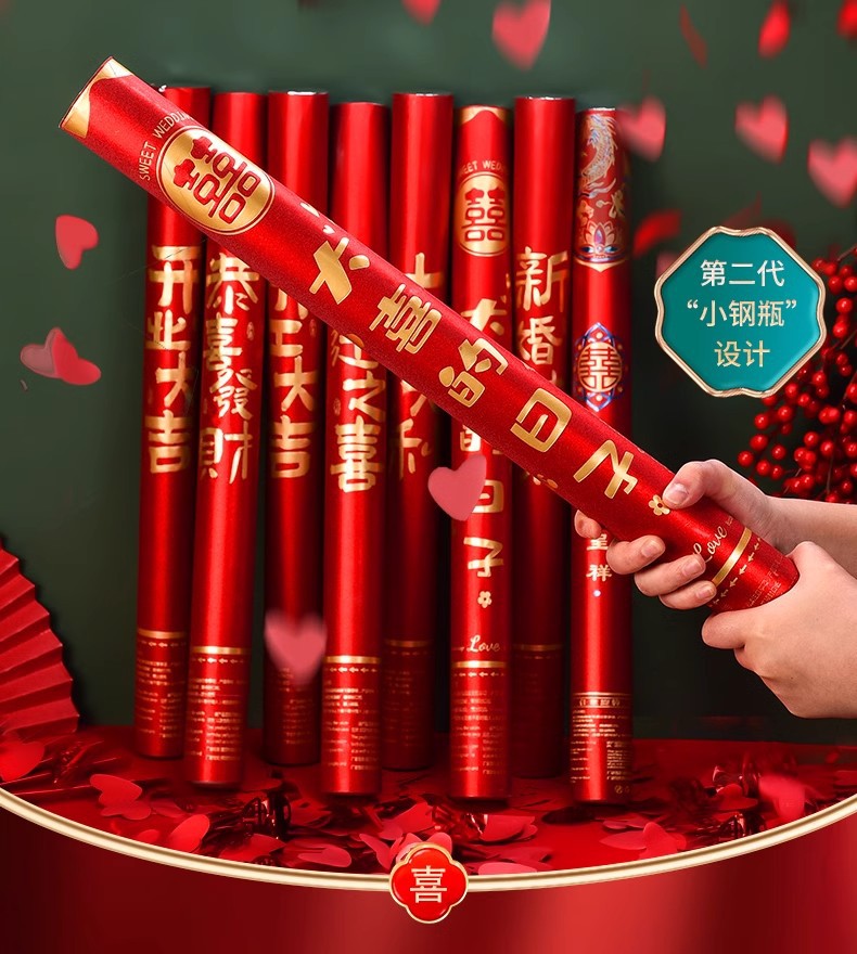结婚订婚礼炮婚庆用品乔迁开业彩带喷花筒手持彩炮礼花筒金葱款