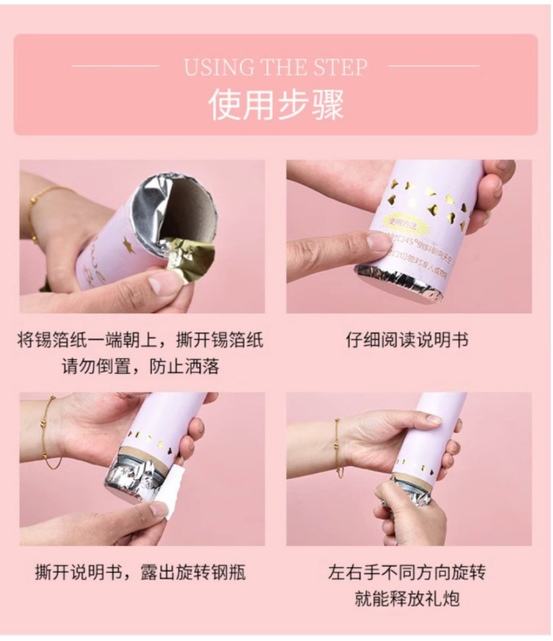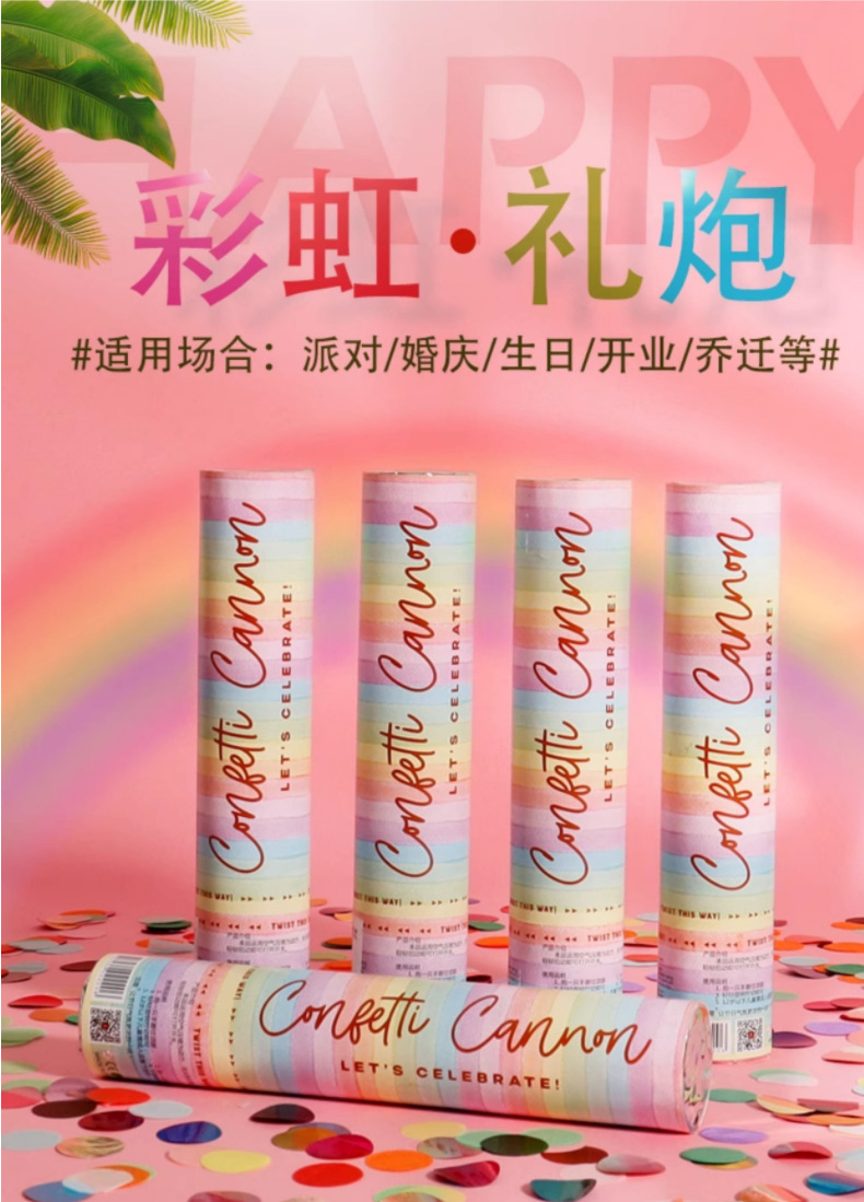 爆款20厘米气瓶彩虹礼花手持礼花礼炮宝宝儿童派对生日喷花筒