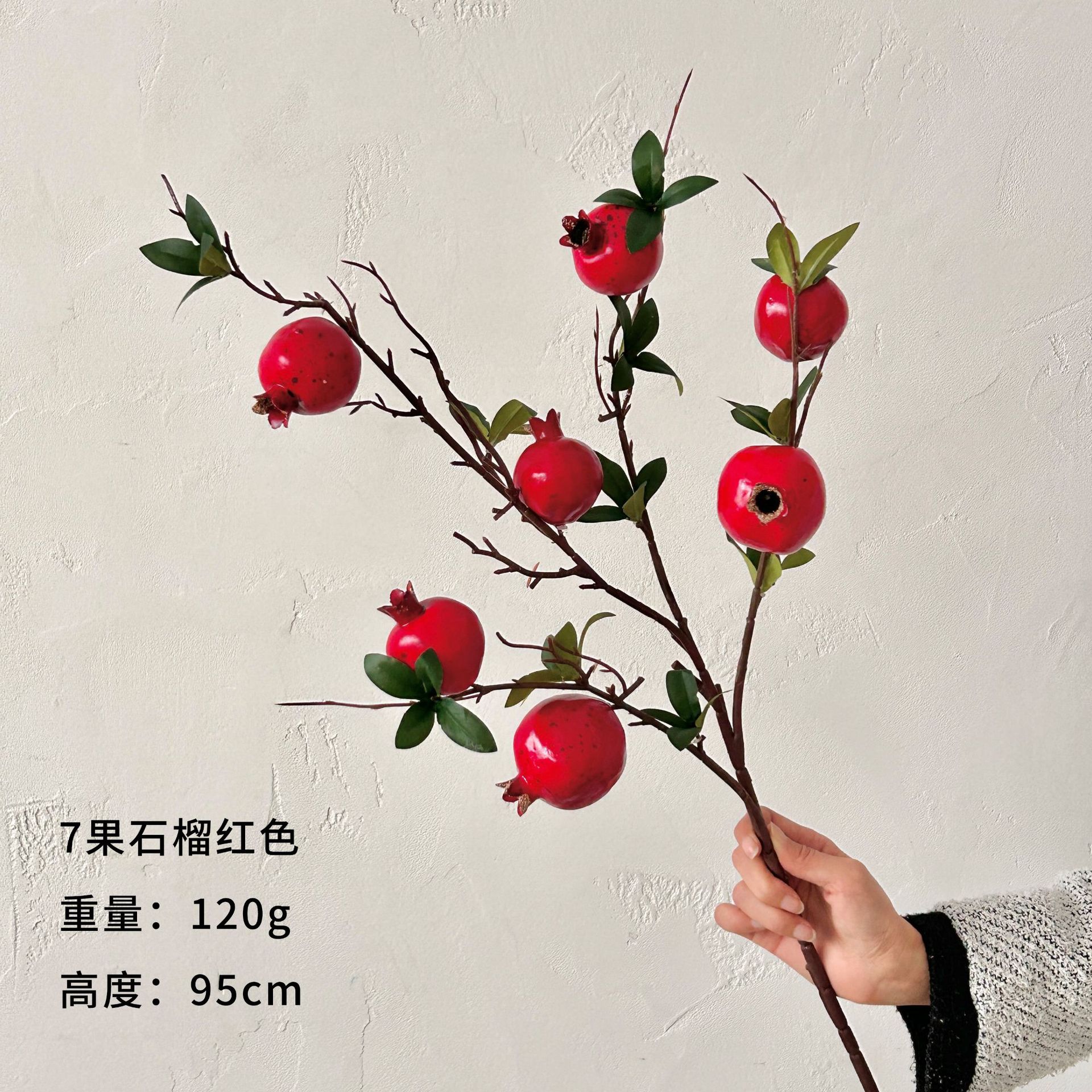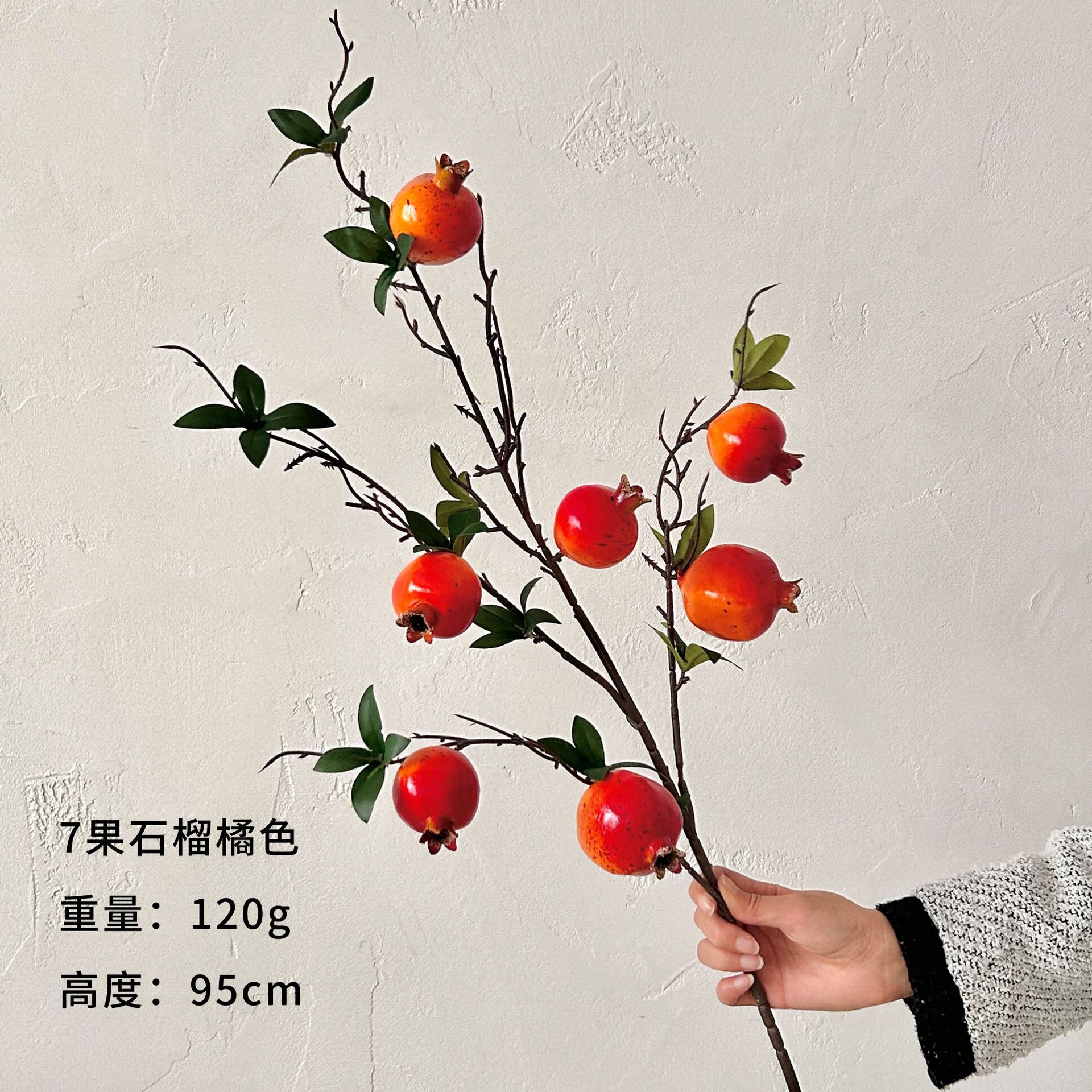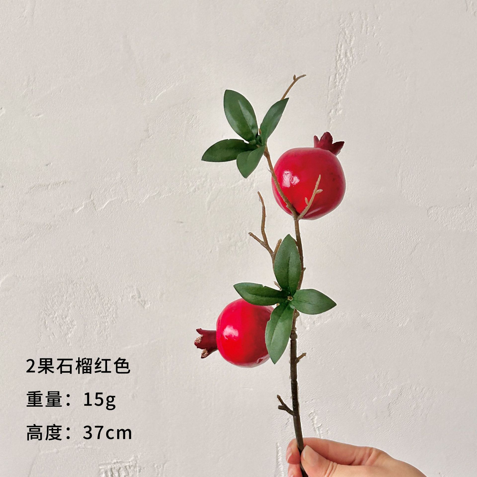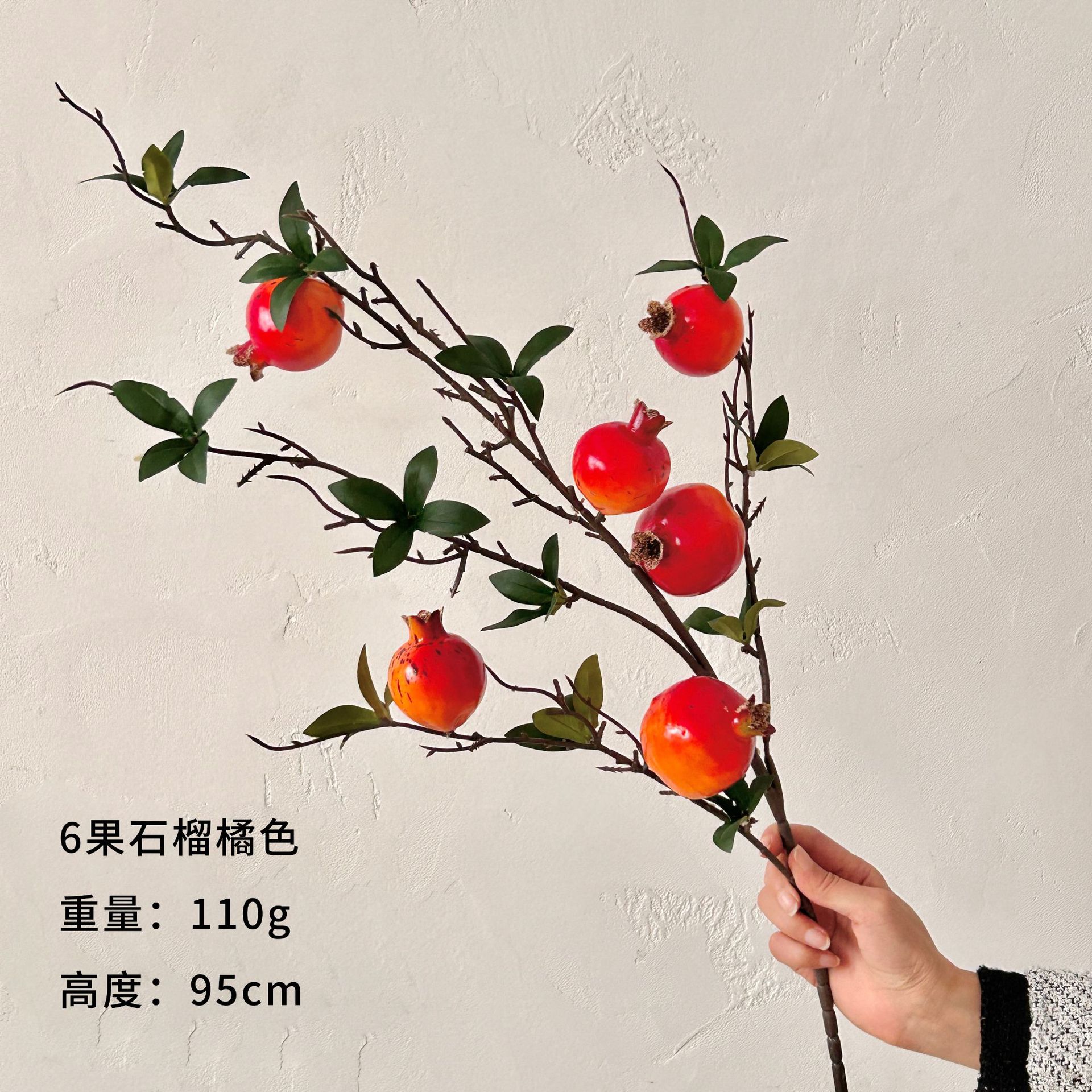 仿真花石榴带叶石榴果树枝中式家居装饰摆件酒店商场软装摄影道具