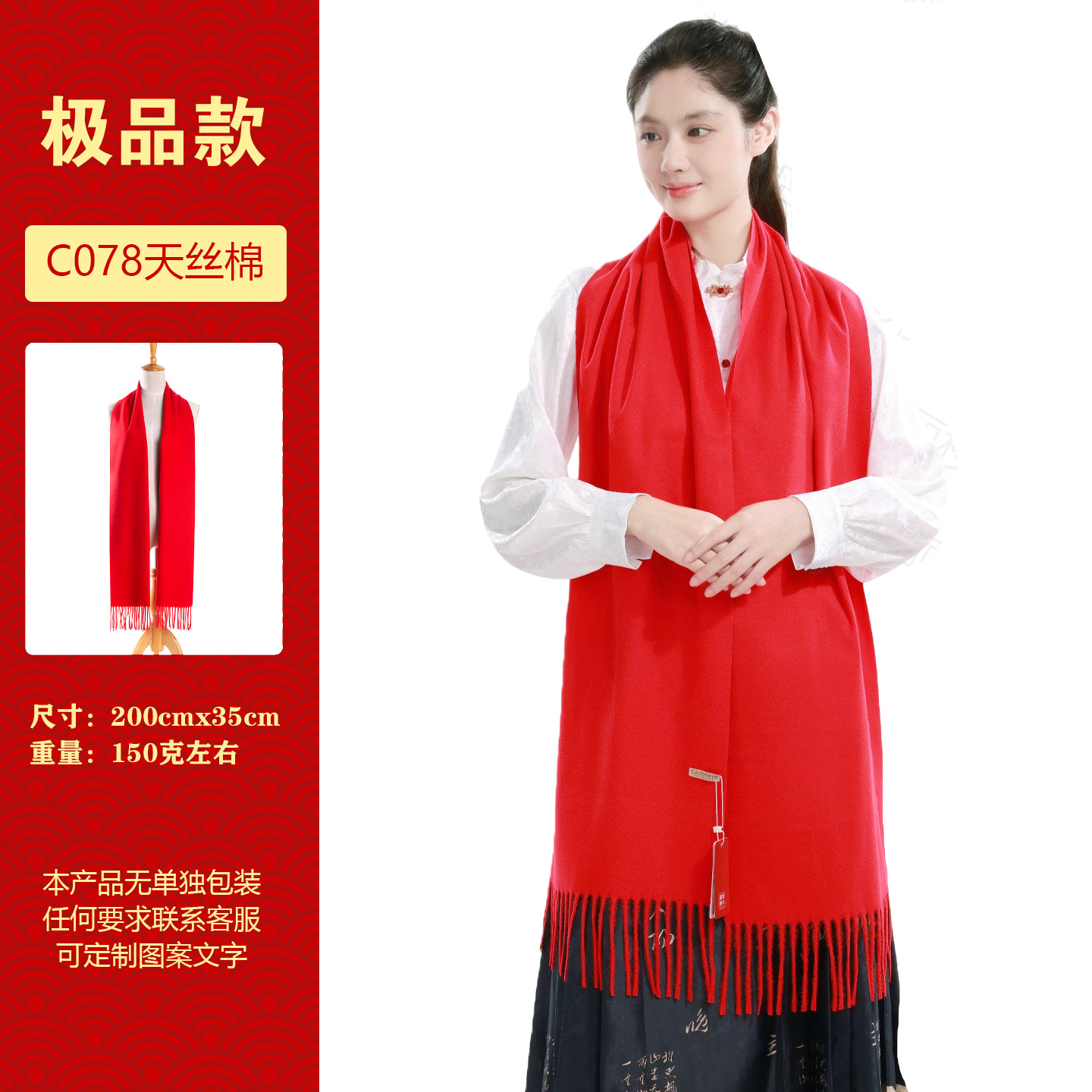 红围巾年会庆典开业聚会中国红大红色围巾定制印字logo工厂批发