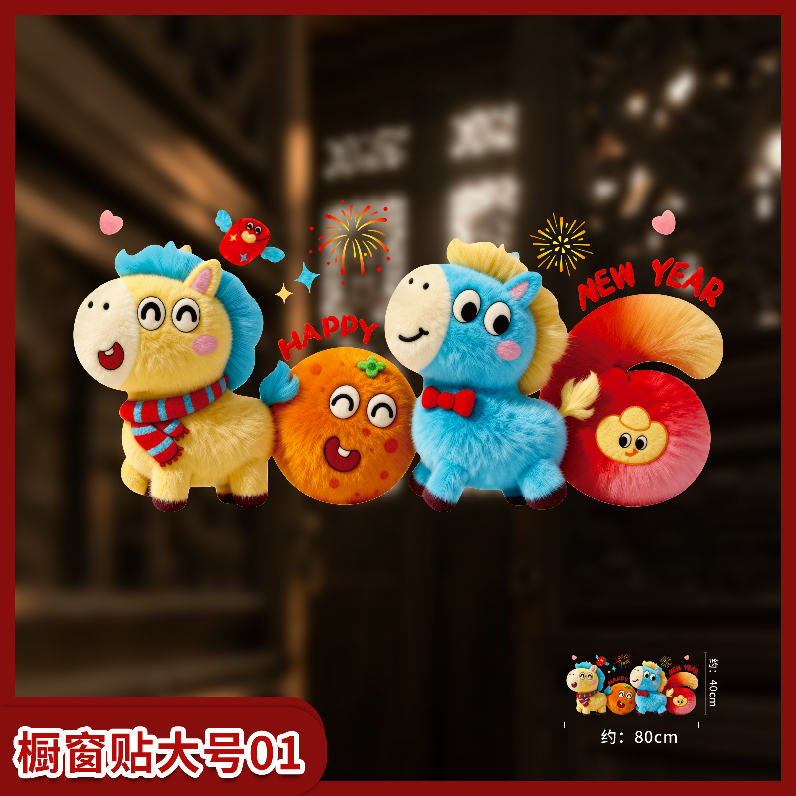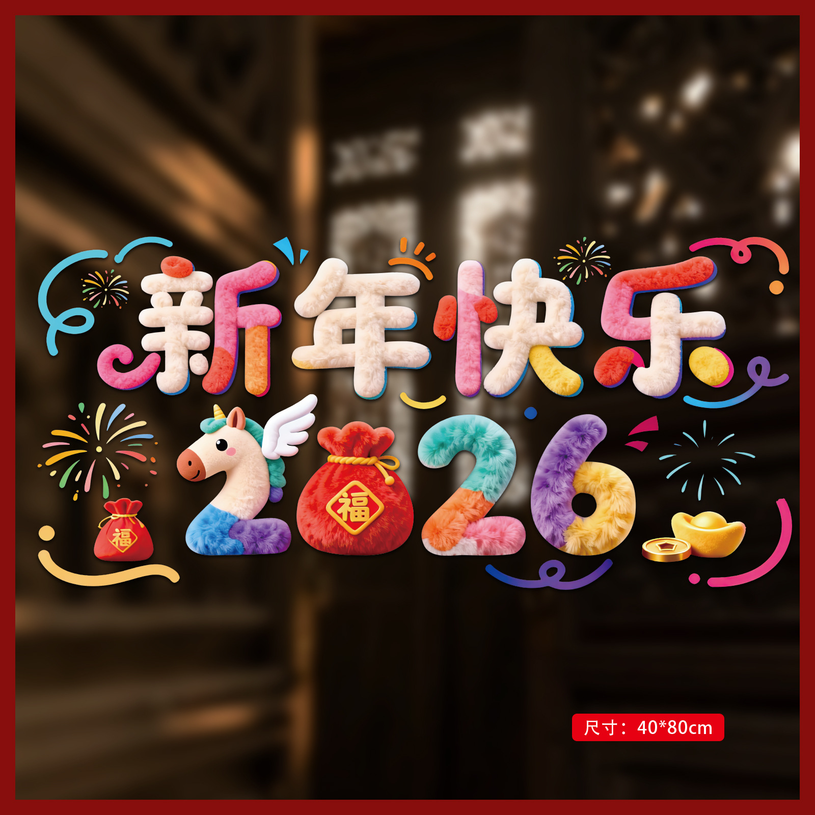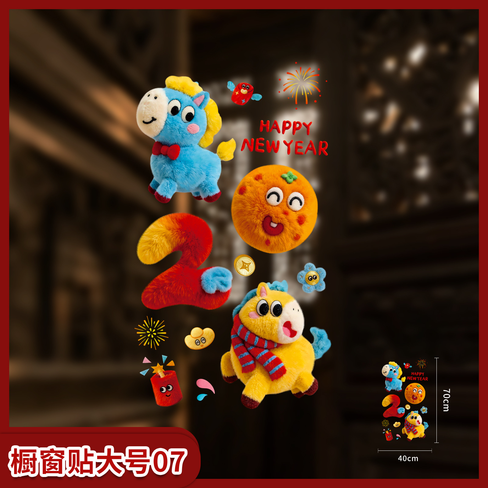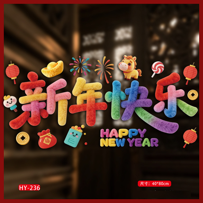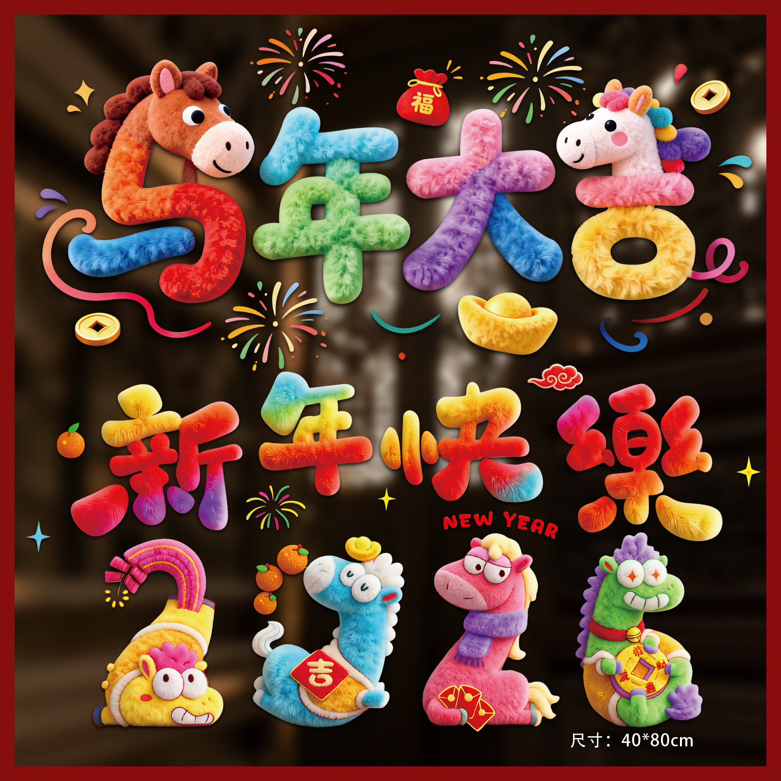 2026新年5D毛绒效果静电贴毛绒效果玻璃贴春节橱窗玻璃贴纸窗花