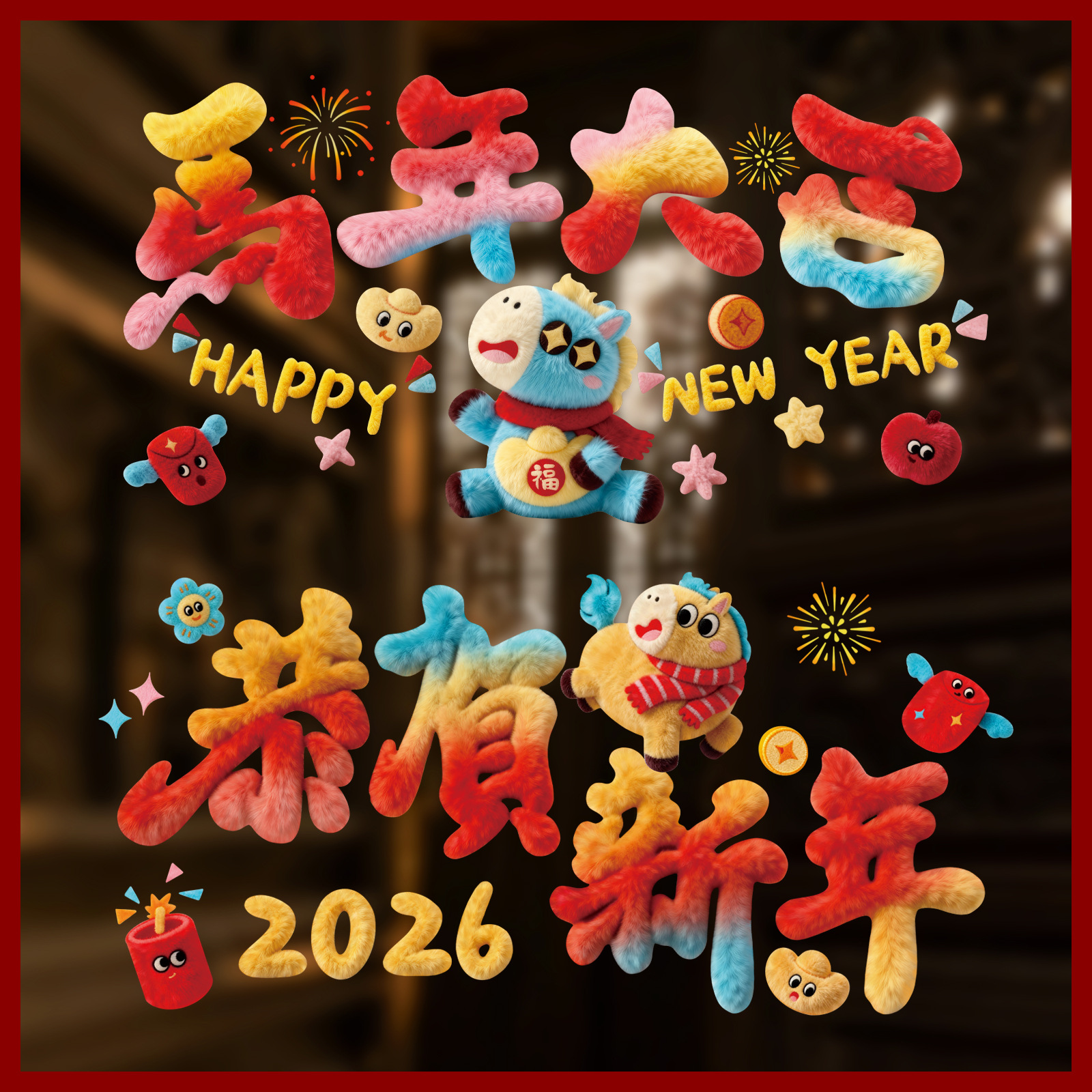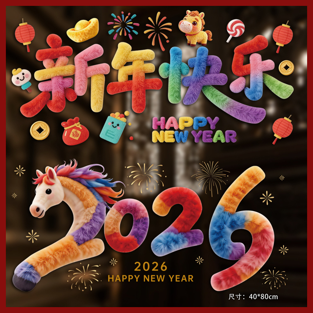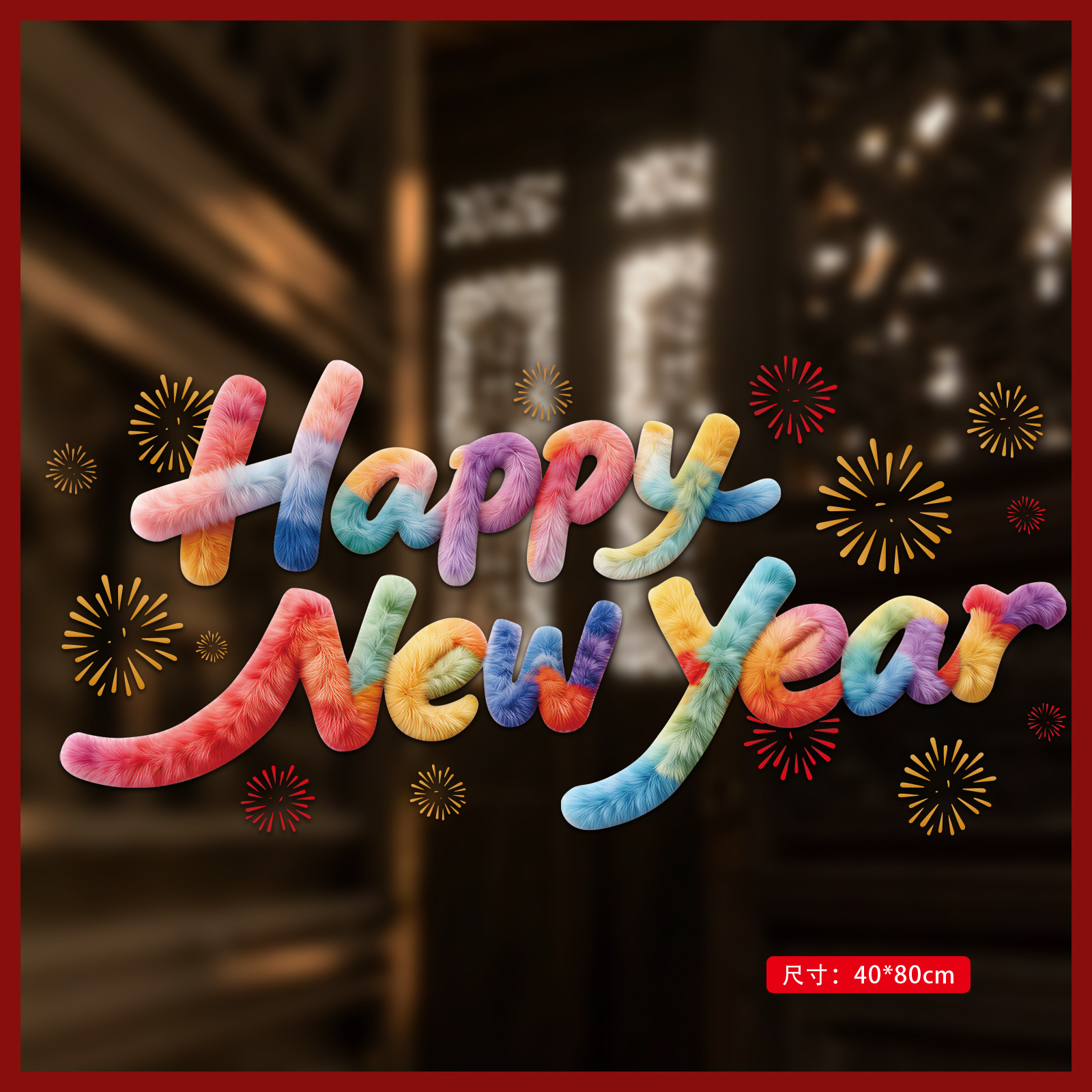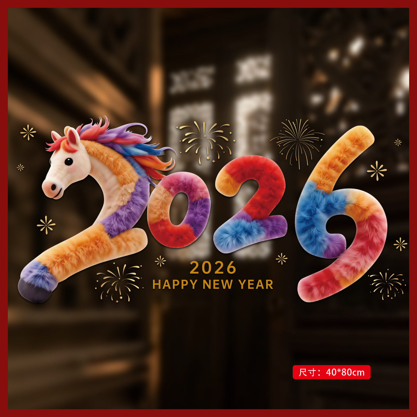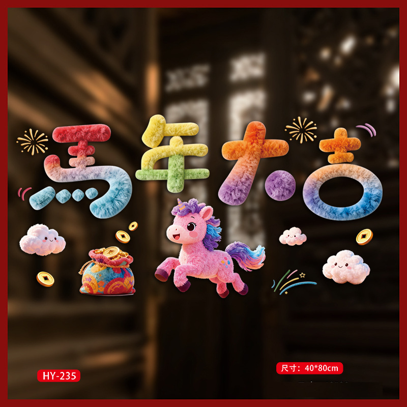 2026新年5D毛绒效果静电贴毛绒效果玻璃贴春节橱窗玻璃贴纸窗花