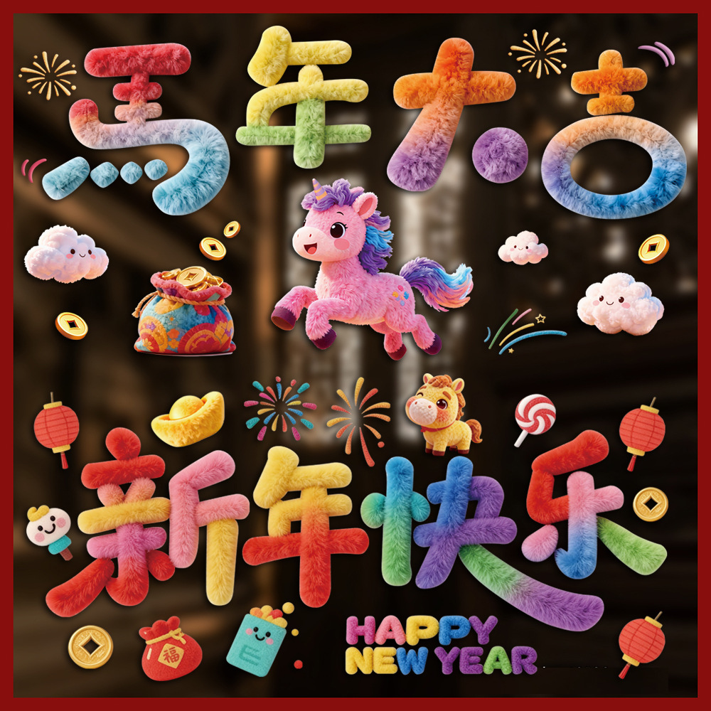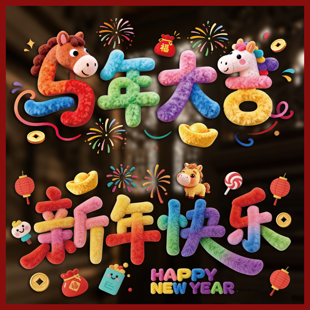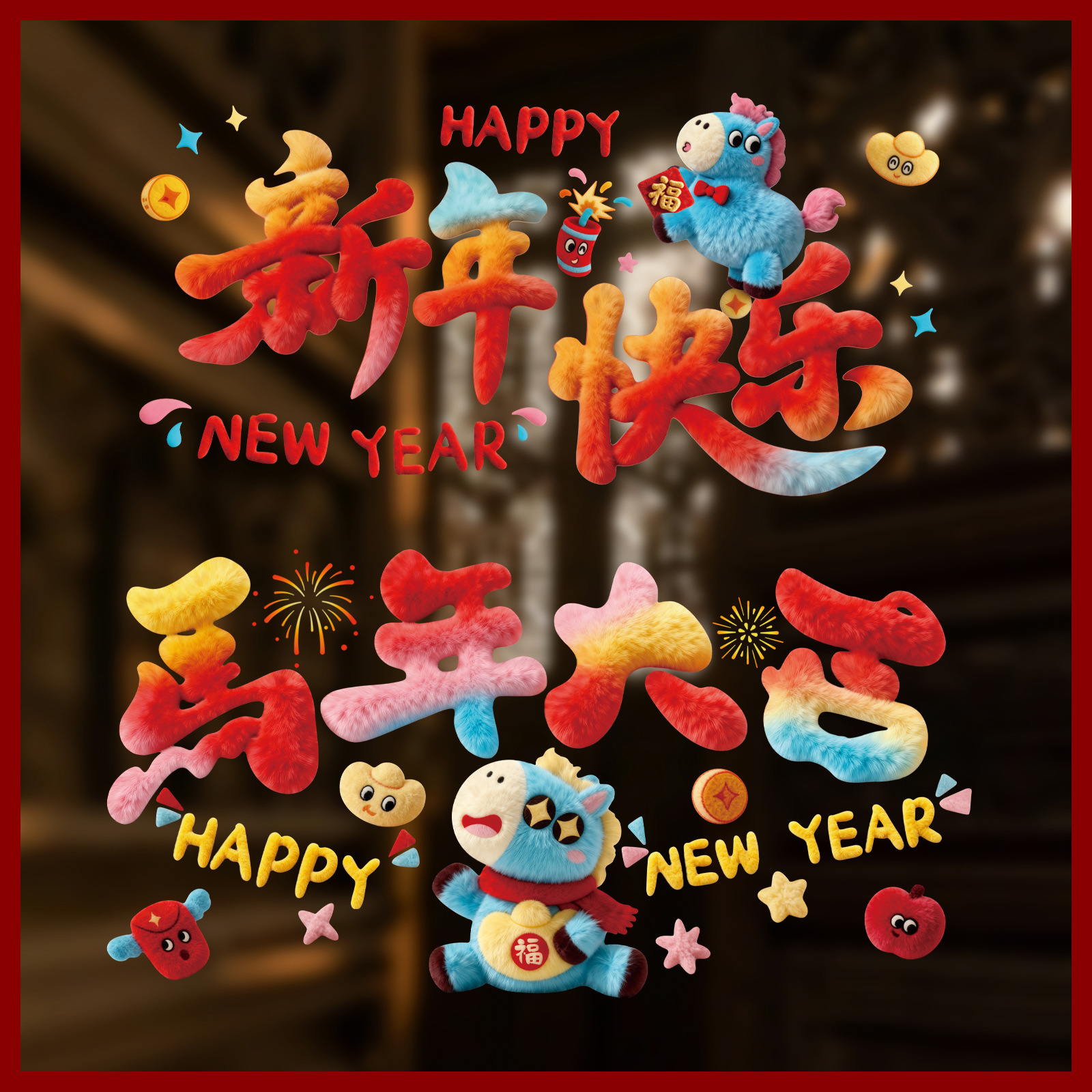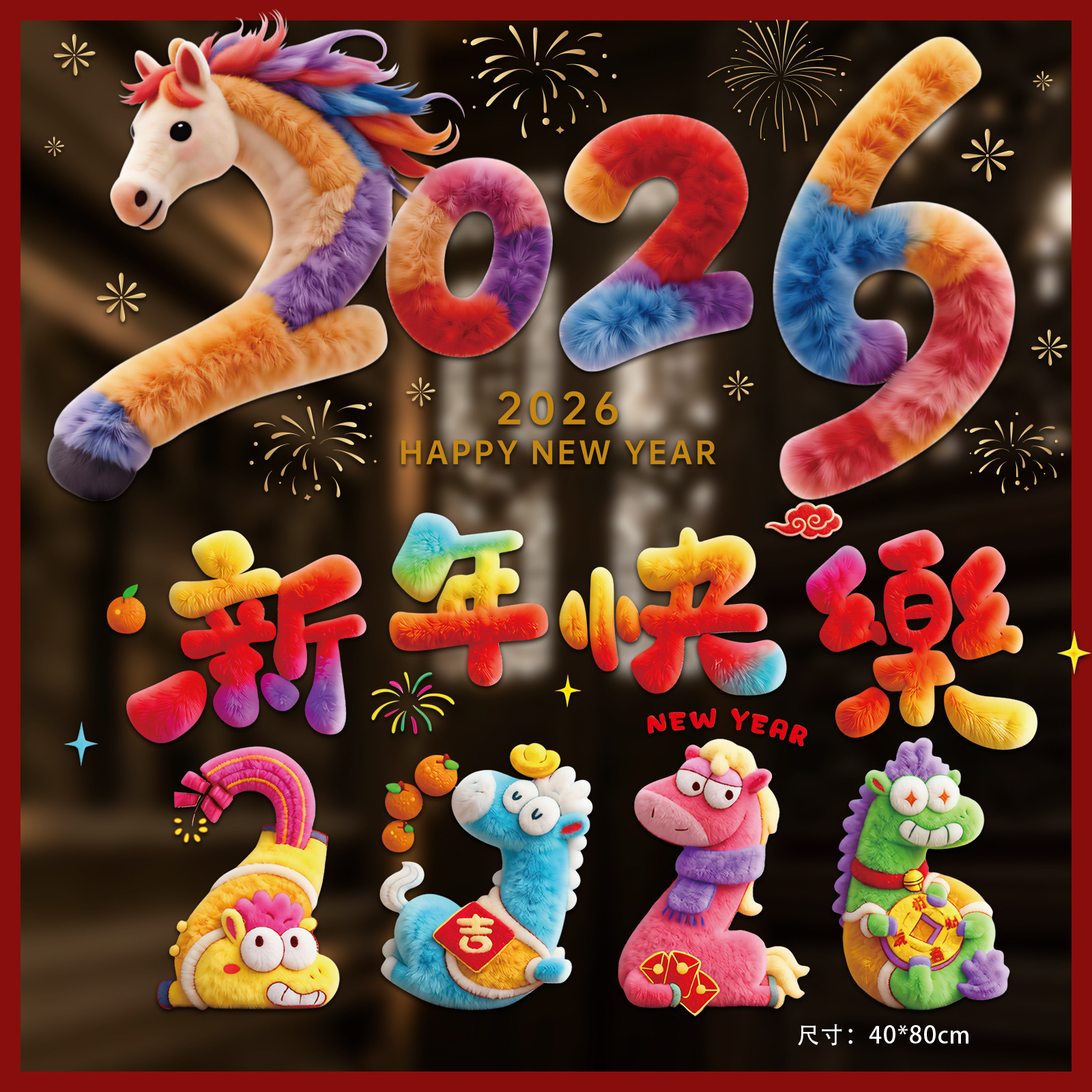 2026新年5D毛绒效果静电贴毛绒效果玻璃贴春节橱窗玻璃贴纸窗花