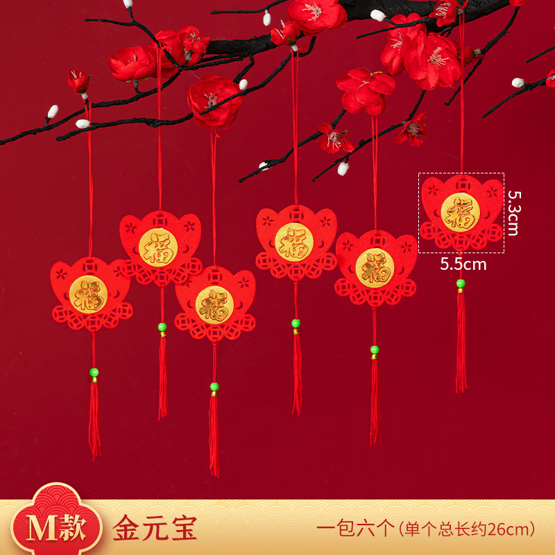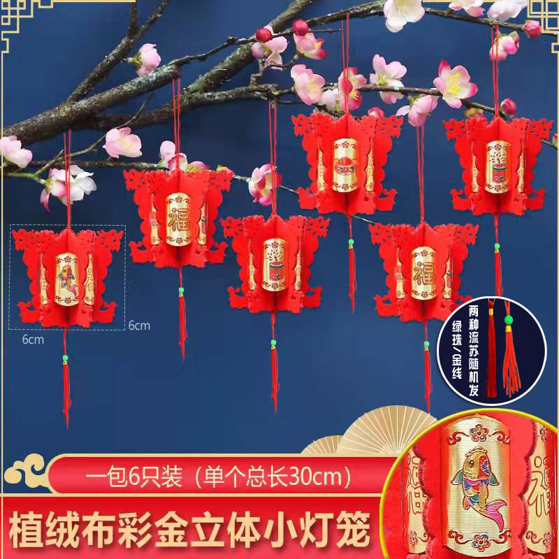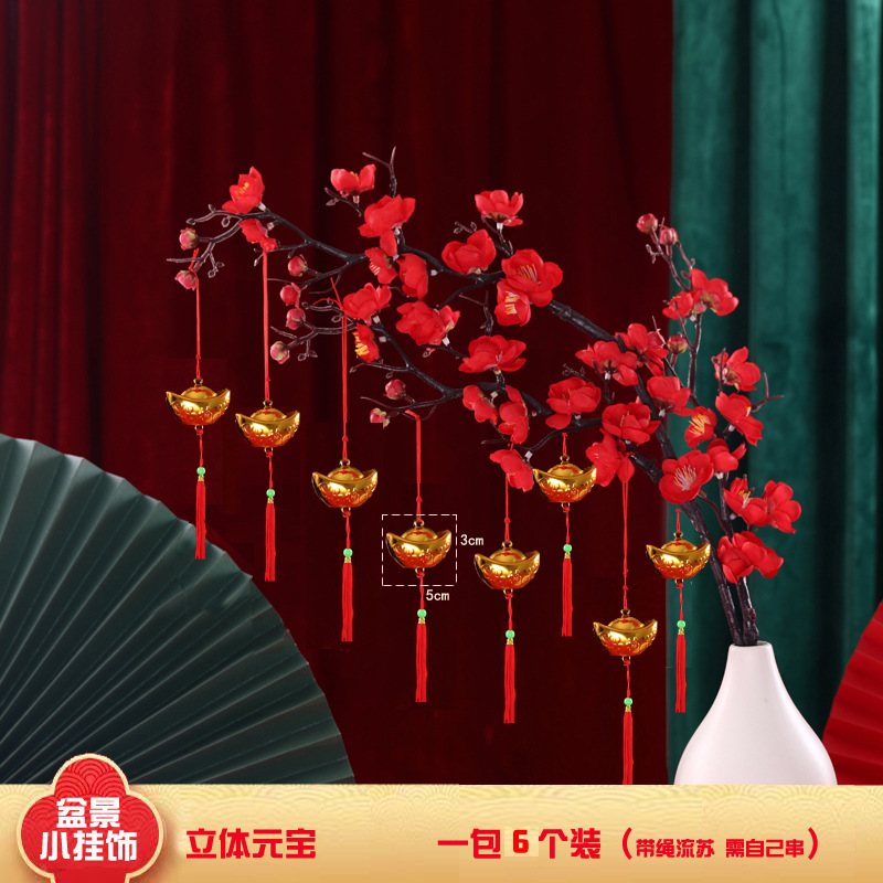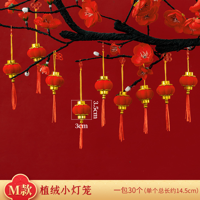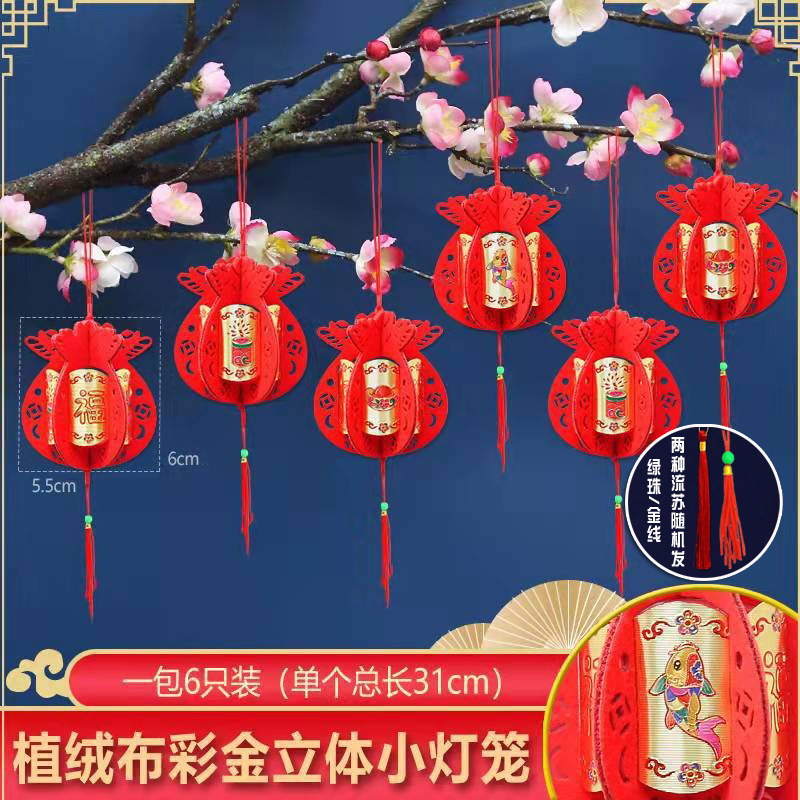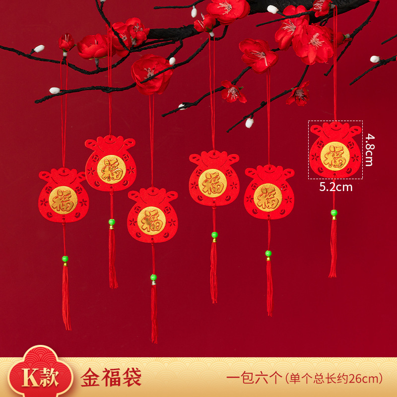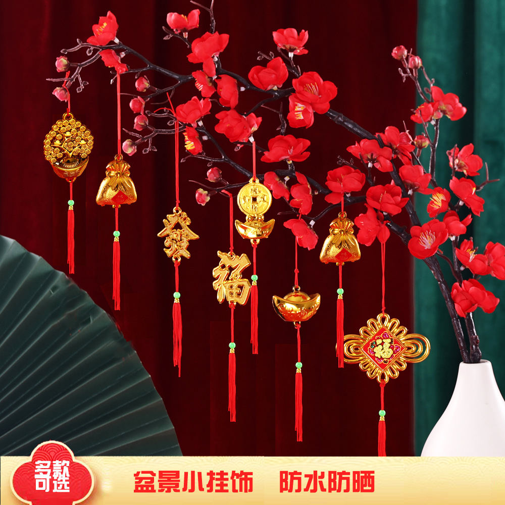 新年春节绿植盆栽小挂饰绒布立体挂件家用室内盆景小灯笼铜钱挂饰