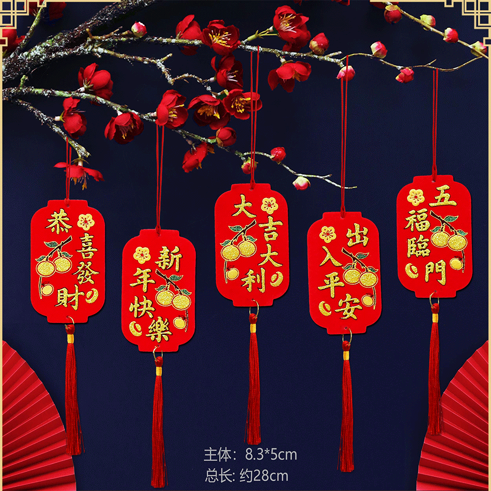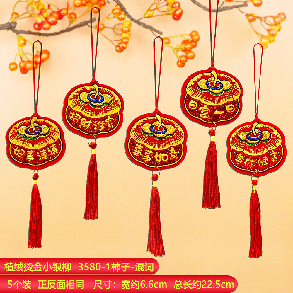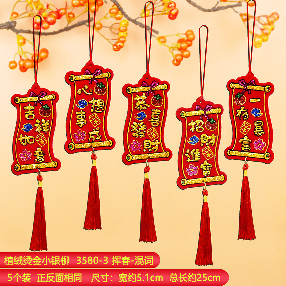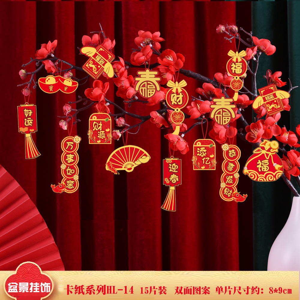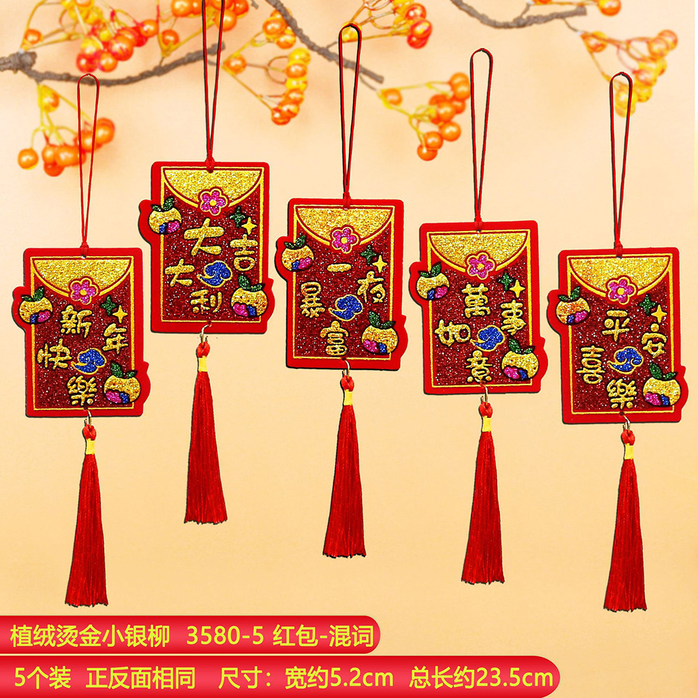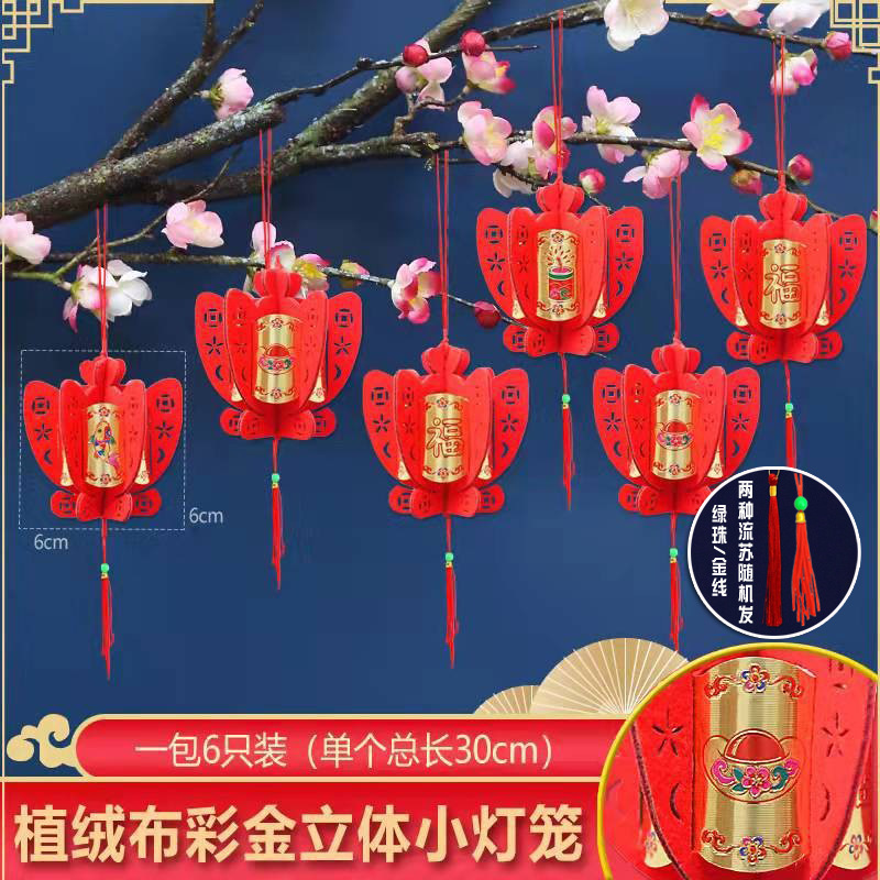 新年春节绿植盆栽小挂饰绒布立体挂件家用室内盆景小灯笼铜钱挂饰