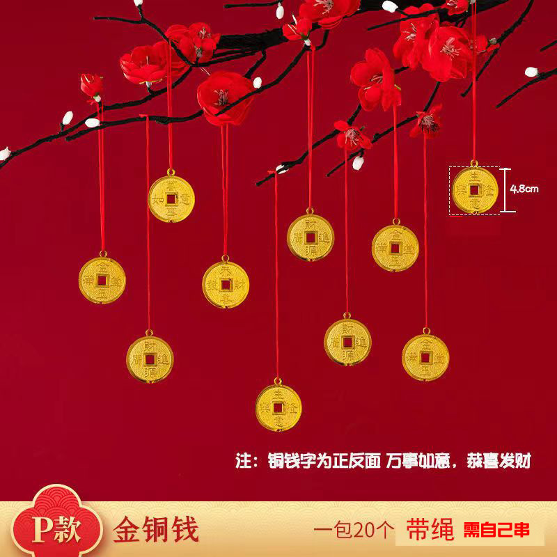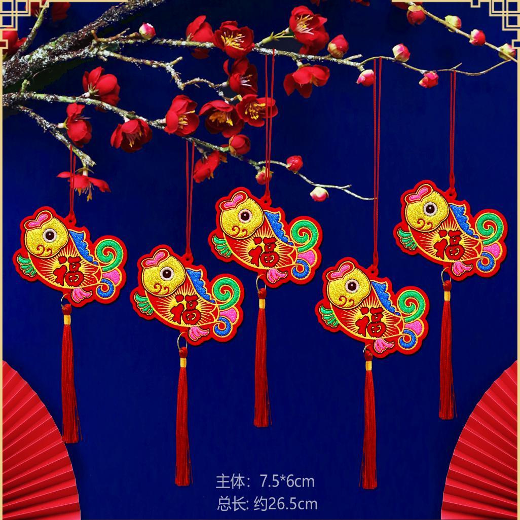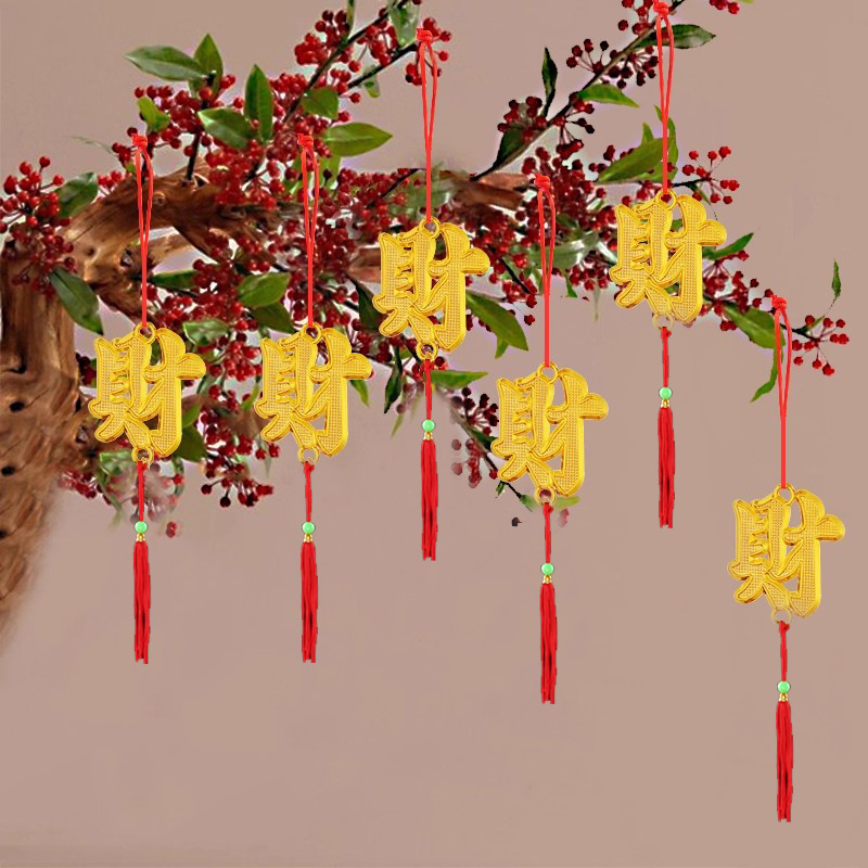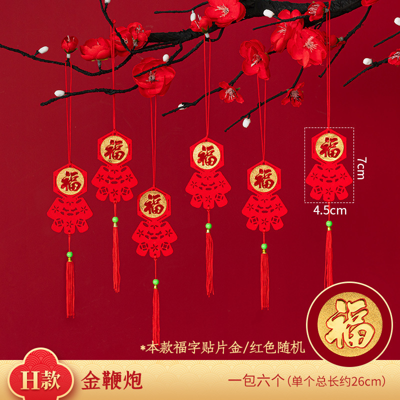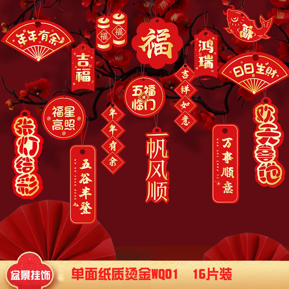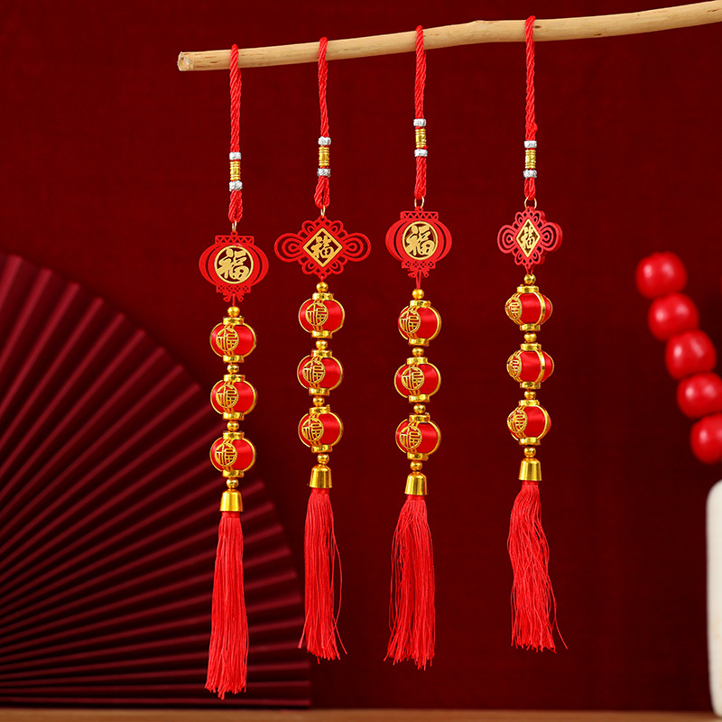 新年春节绿植盆栽小挂饰绒布立体挂件家用室内盆景小灯笼铜钱挂饰