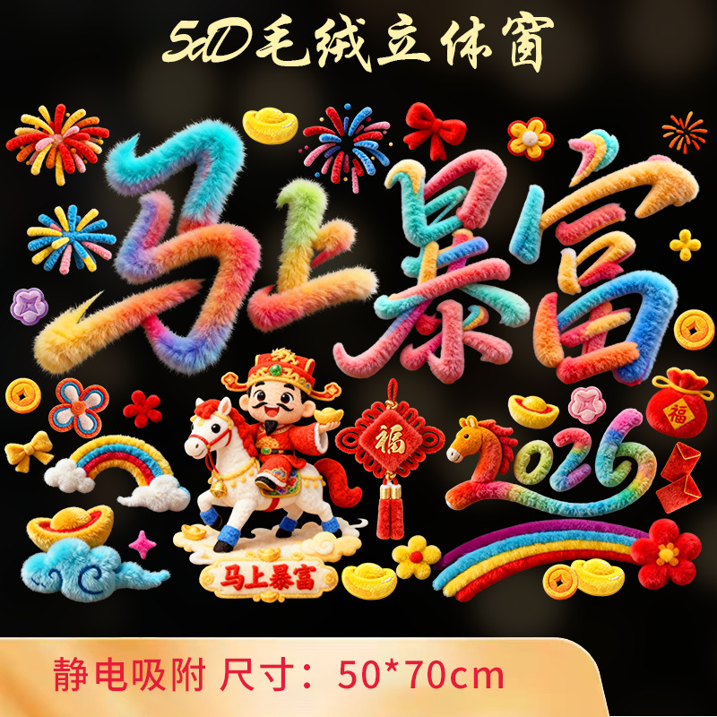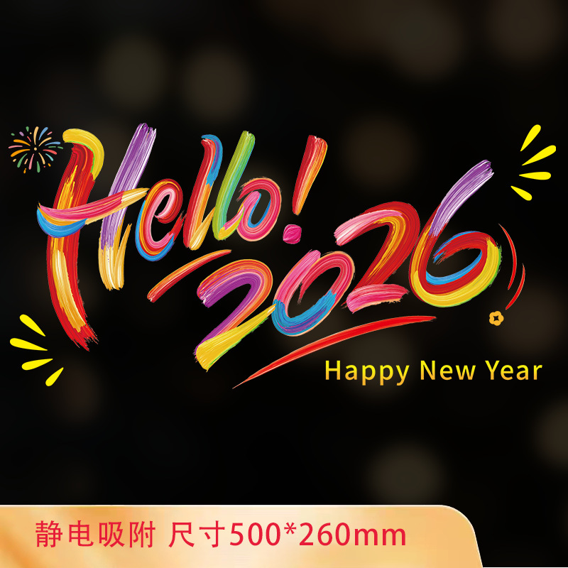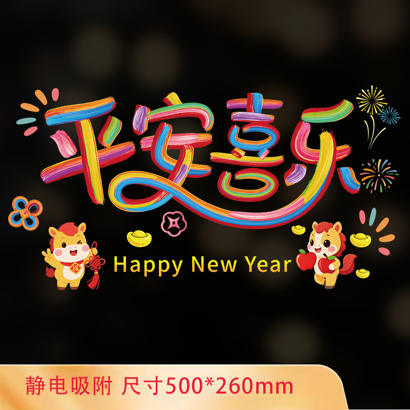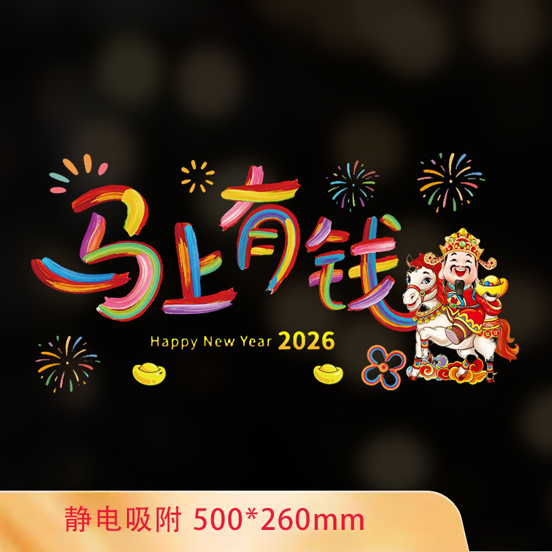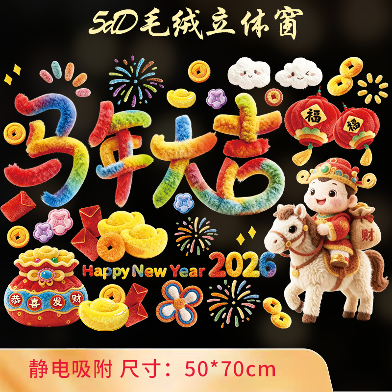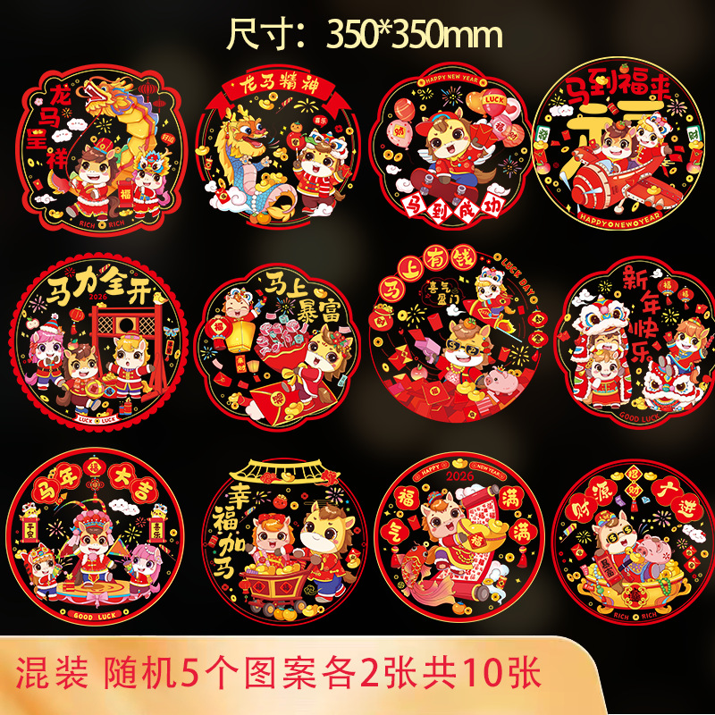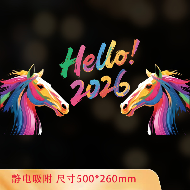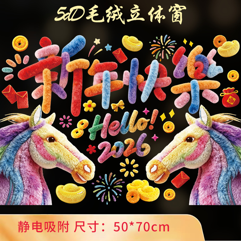 2026马年新年快乐玻璃装饰贴纸春节元旦商铺橱窗布置窗花静电贴