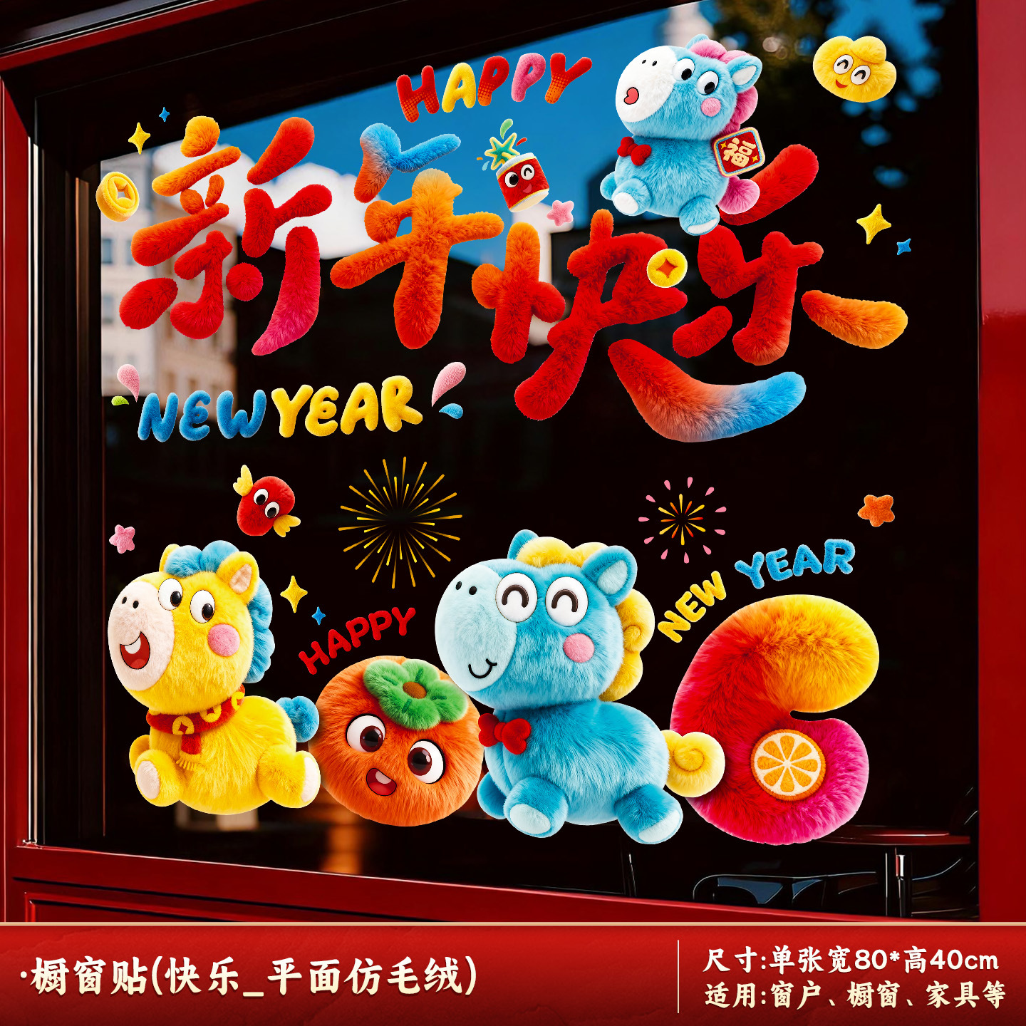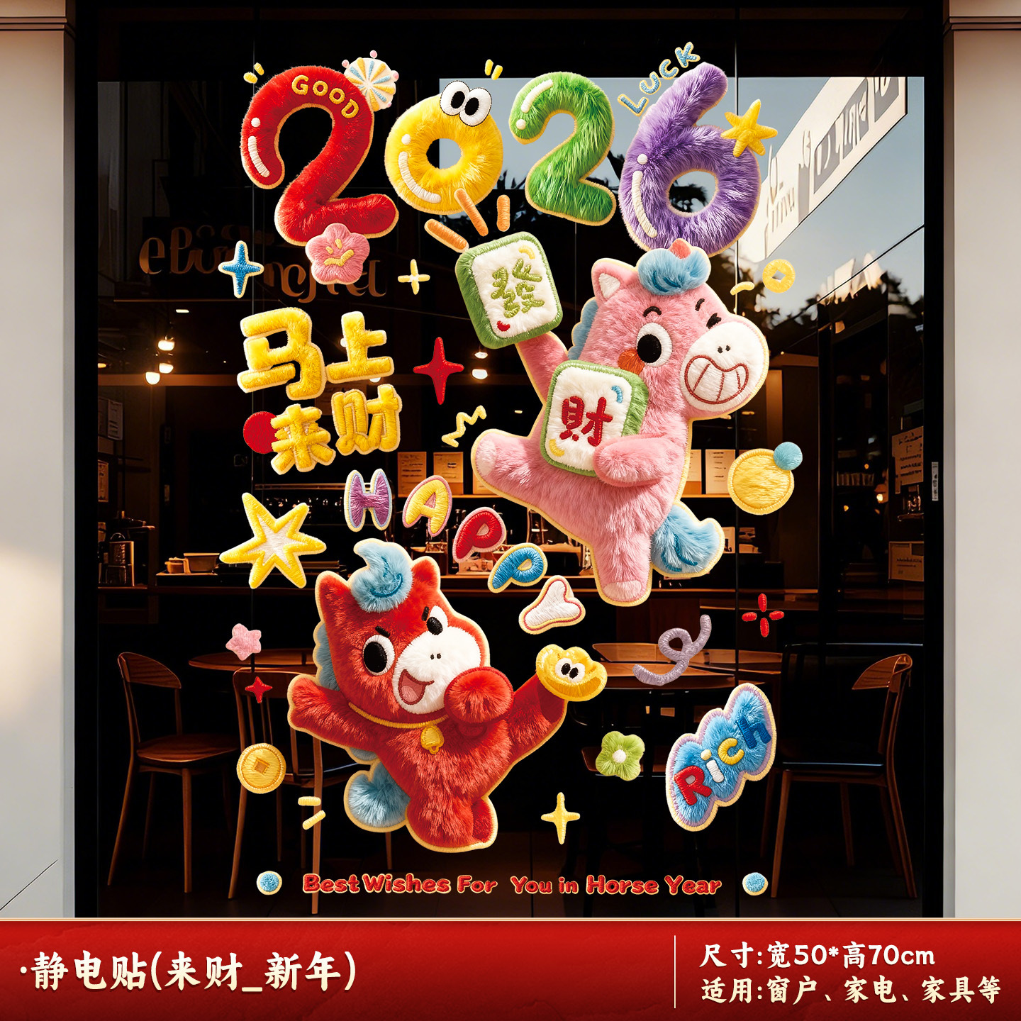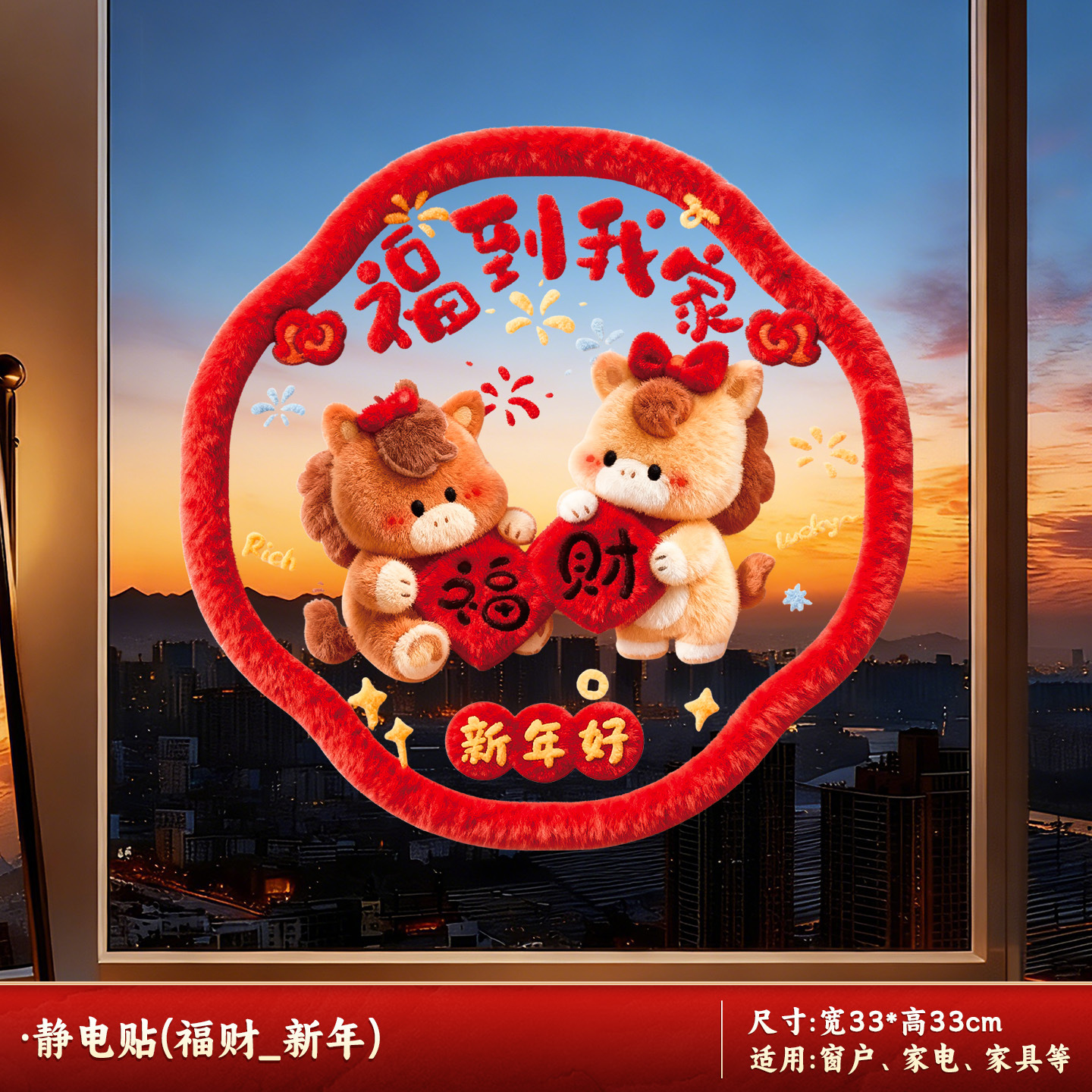 2026新款马年卡通窗花静电贴春节过年创意剪纸玻璃贴纸新年装饰品