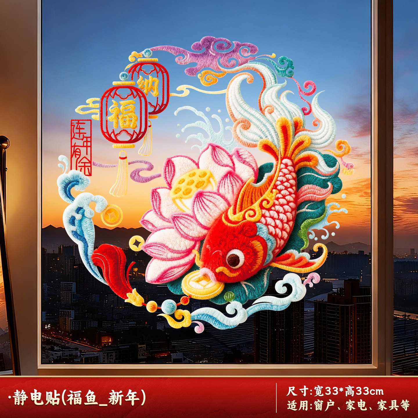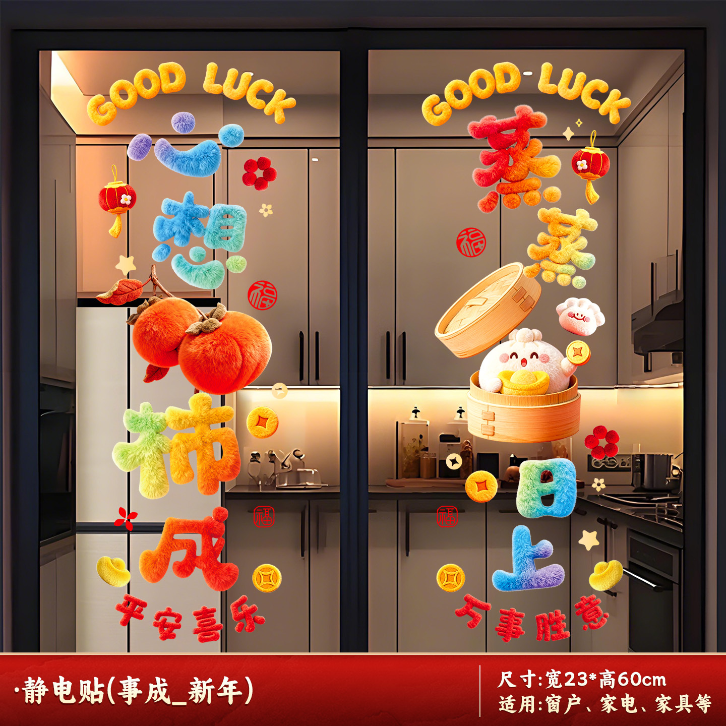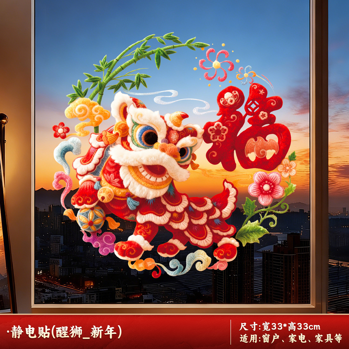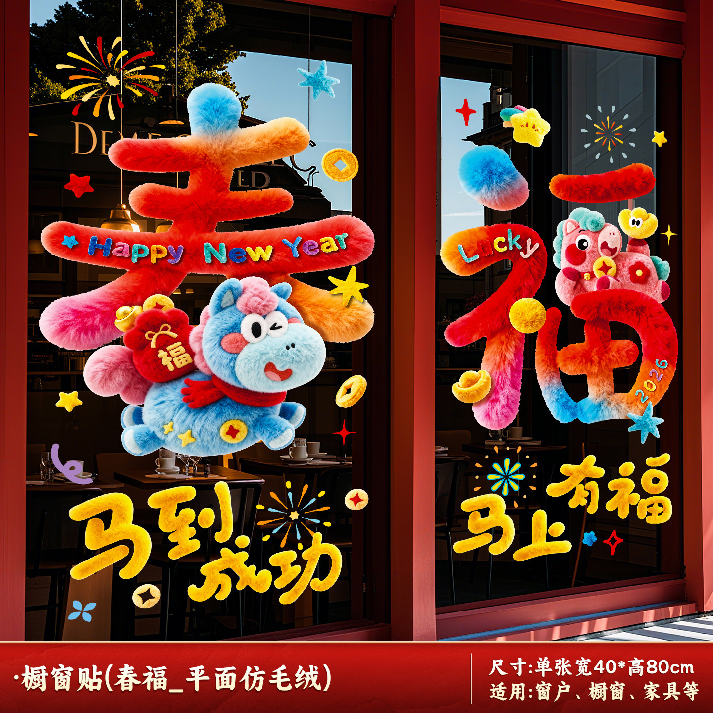 2026新款马年卡通窗花静电贴春节过年创意剪纸玻璃贴纸新年装饰品