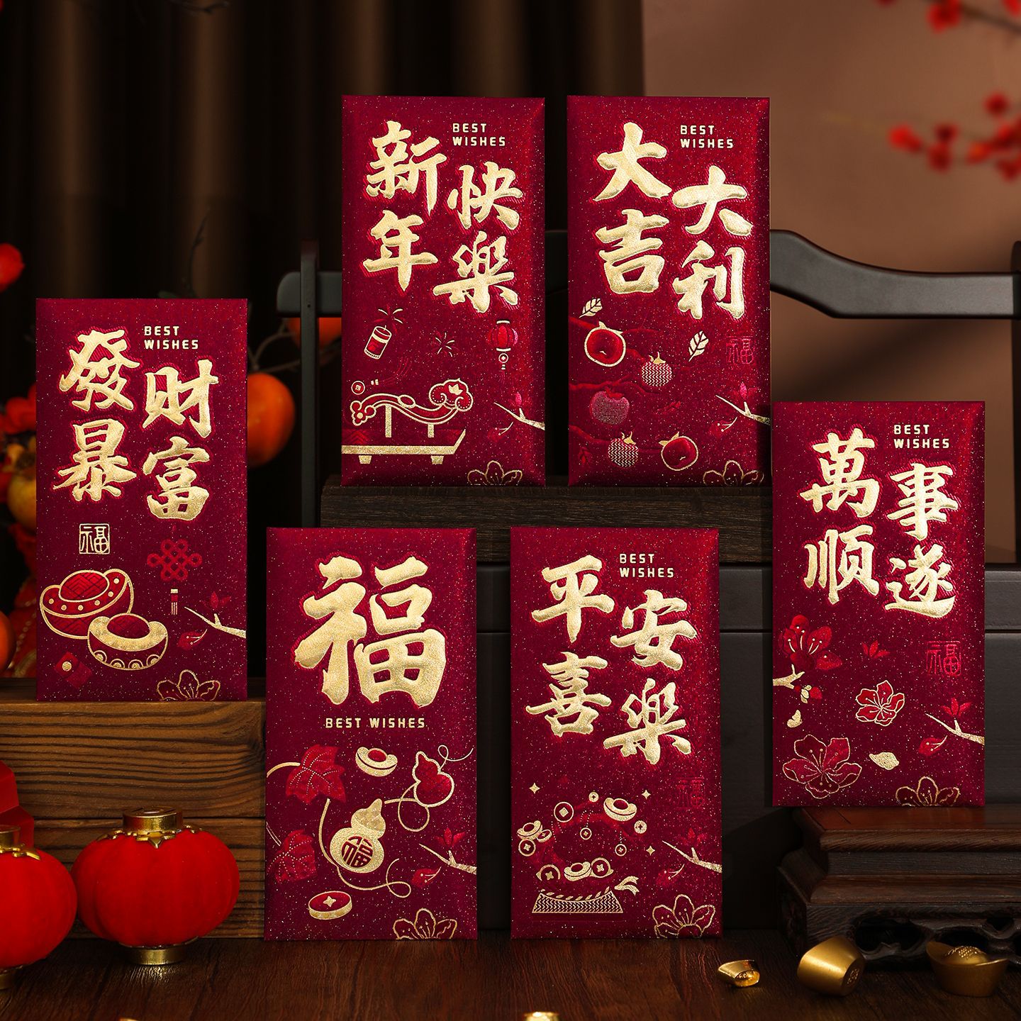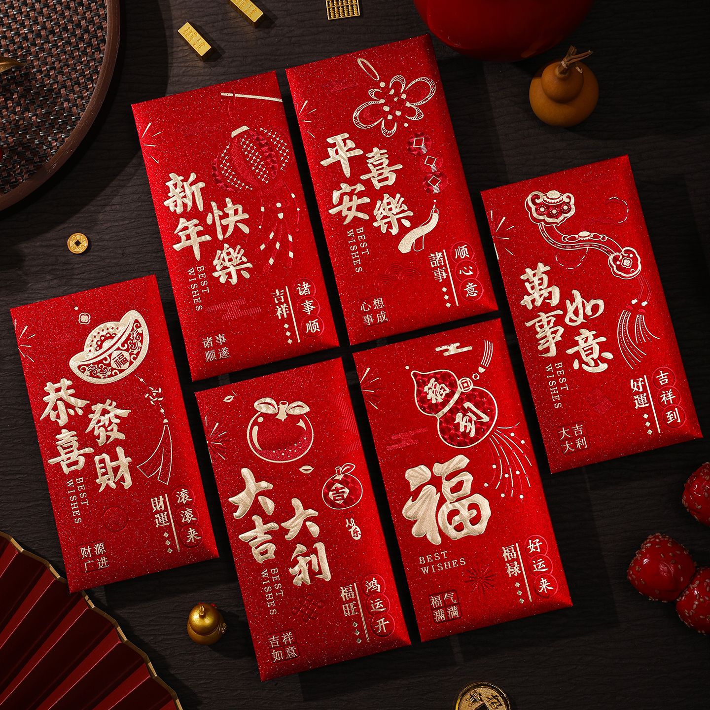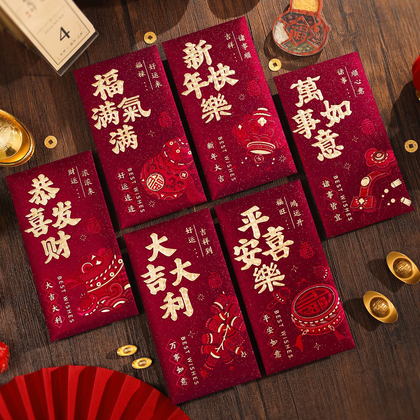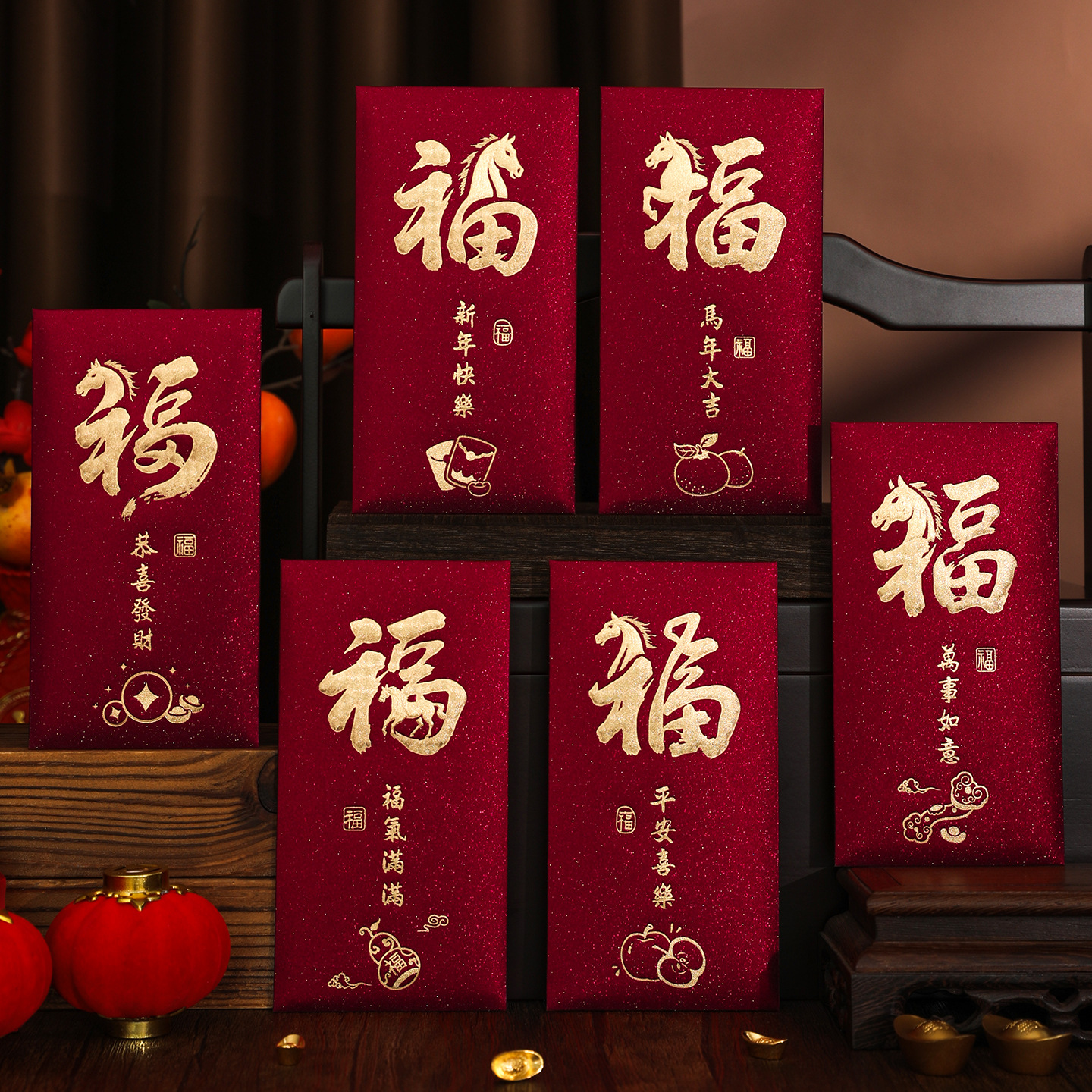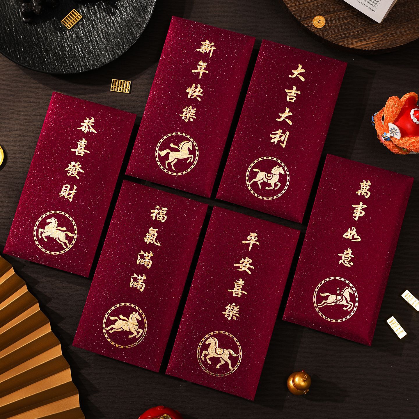 新款红包袋创意马年生肖通用红包高档酒红色新年压岁利是封春节用