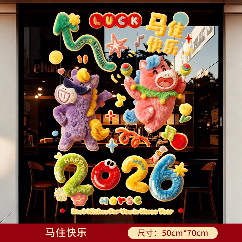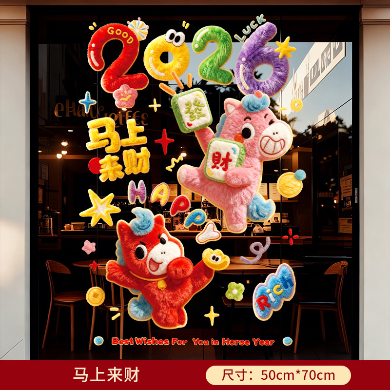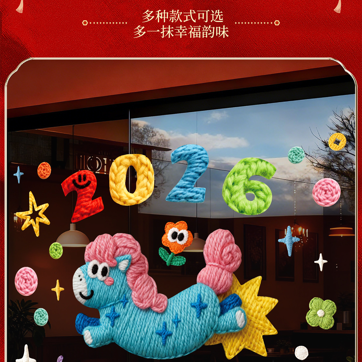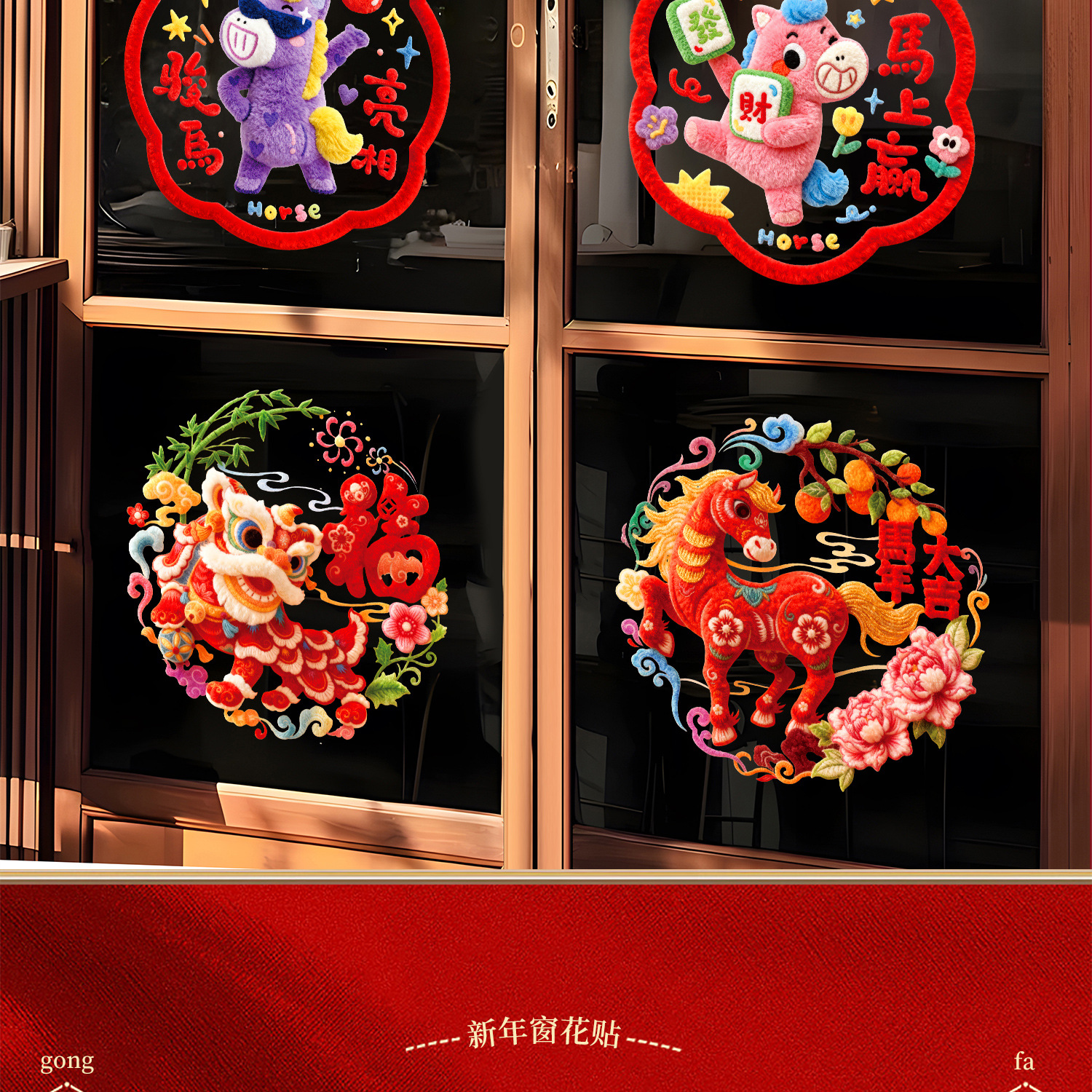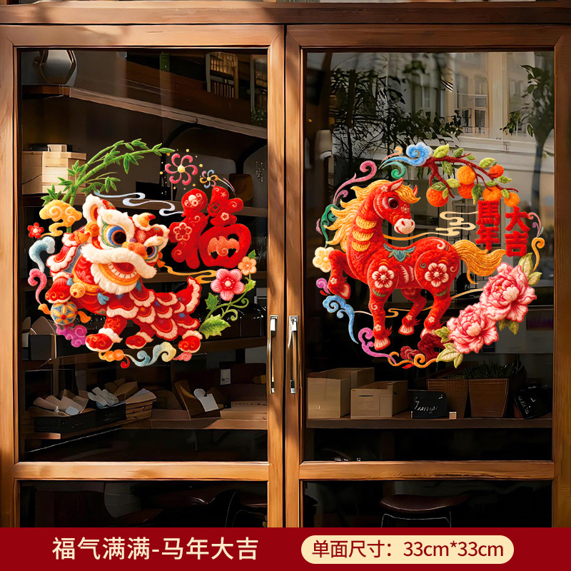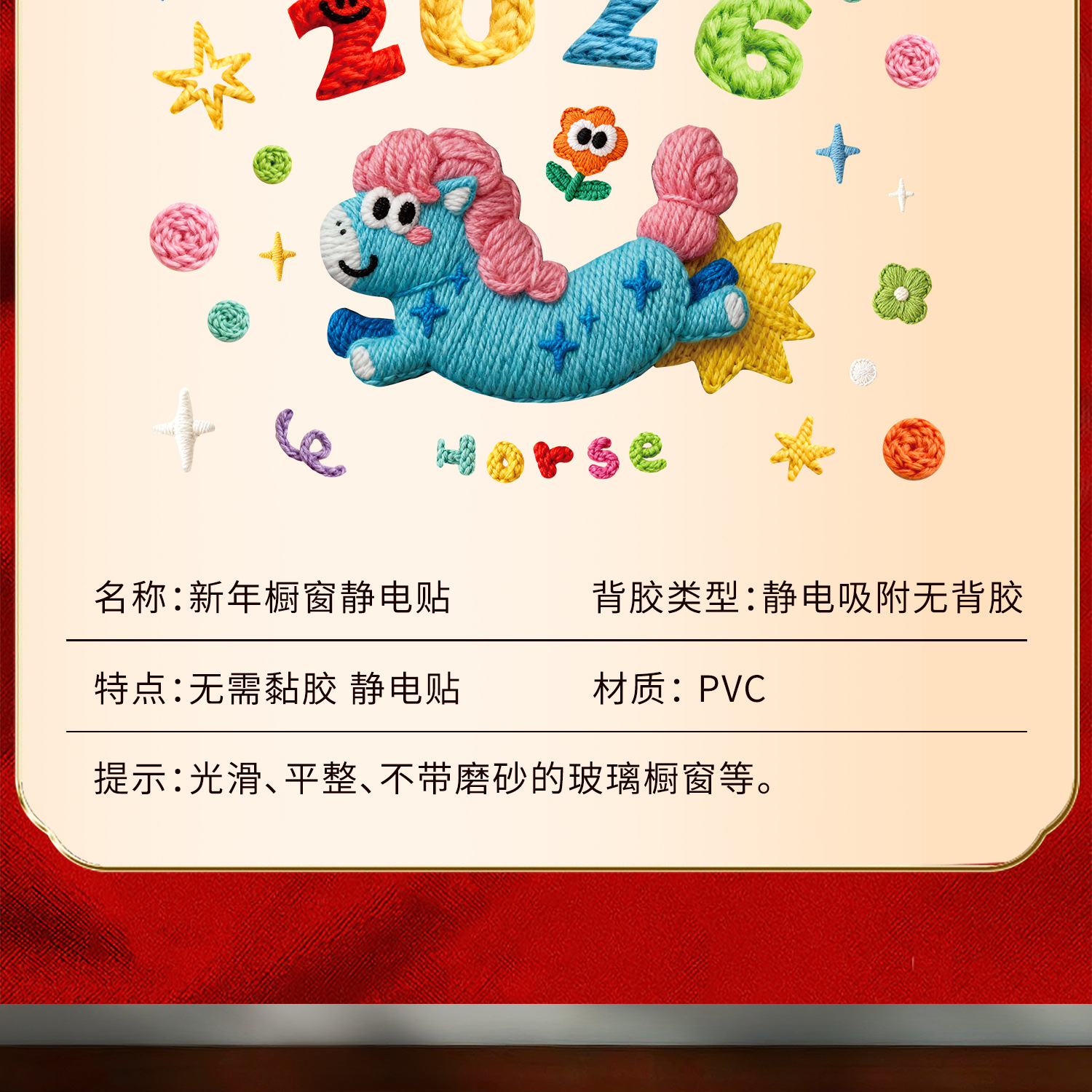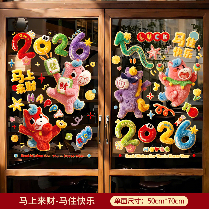 马年窗花2026新款新年静电贴过年生肖福字春节彩色玻璃窗贴纸装饰