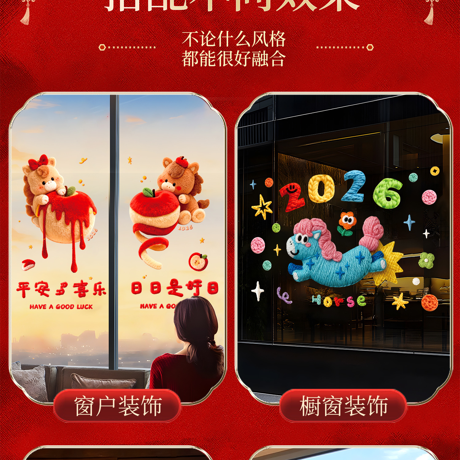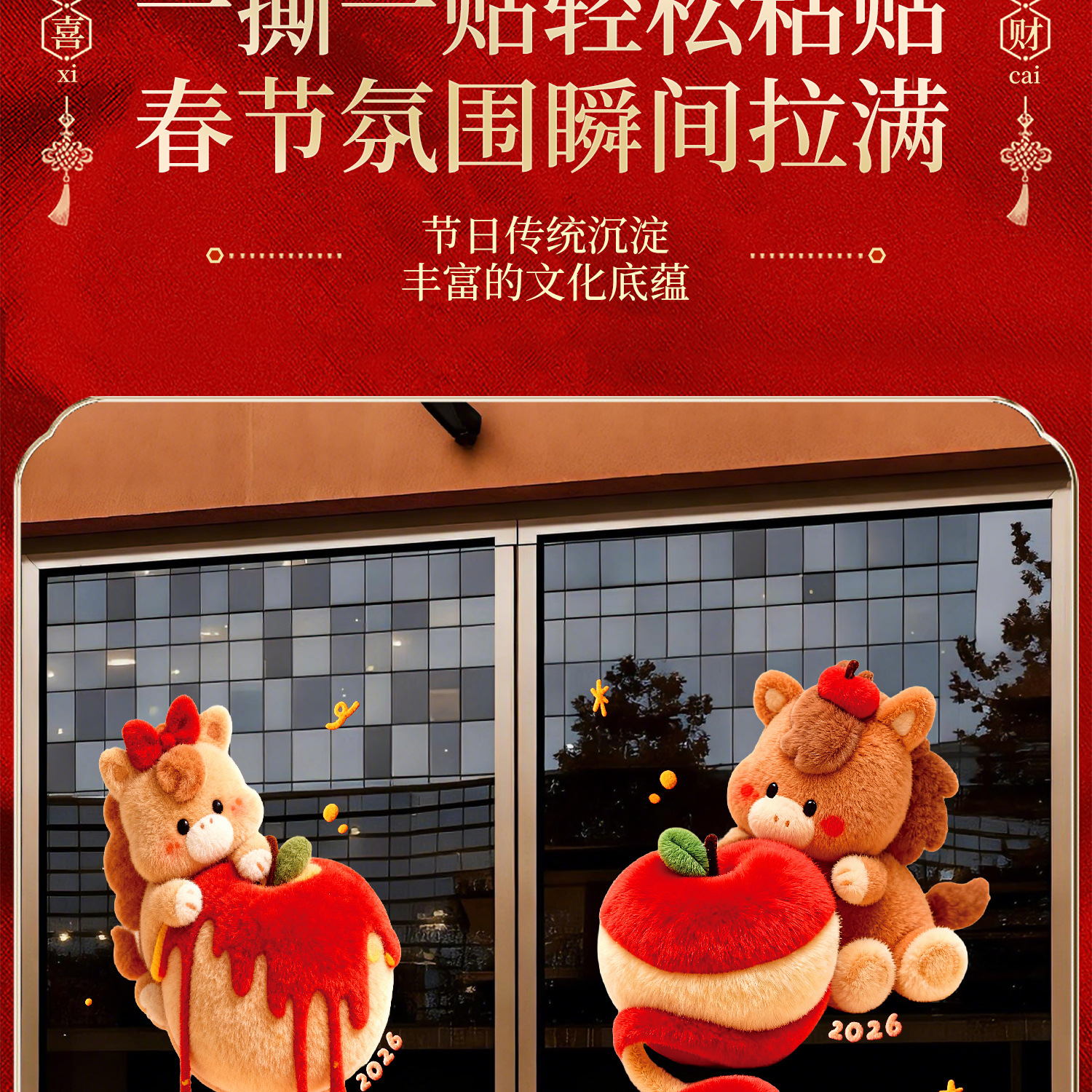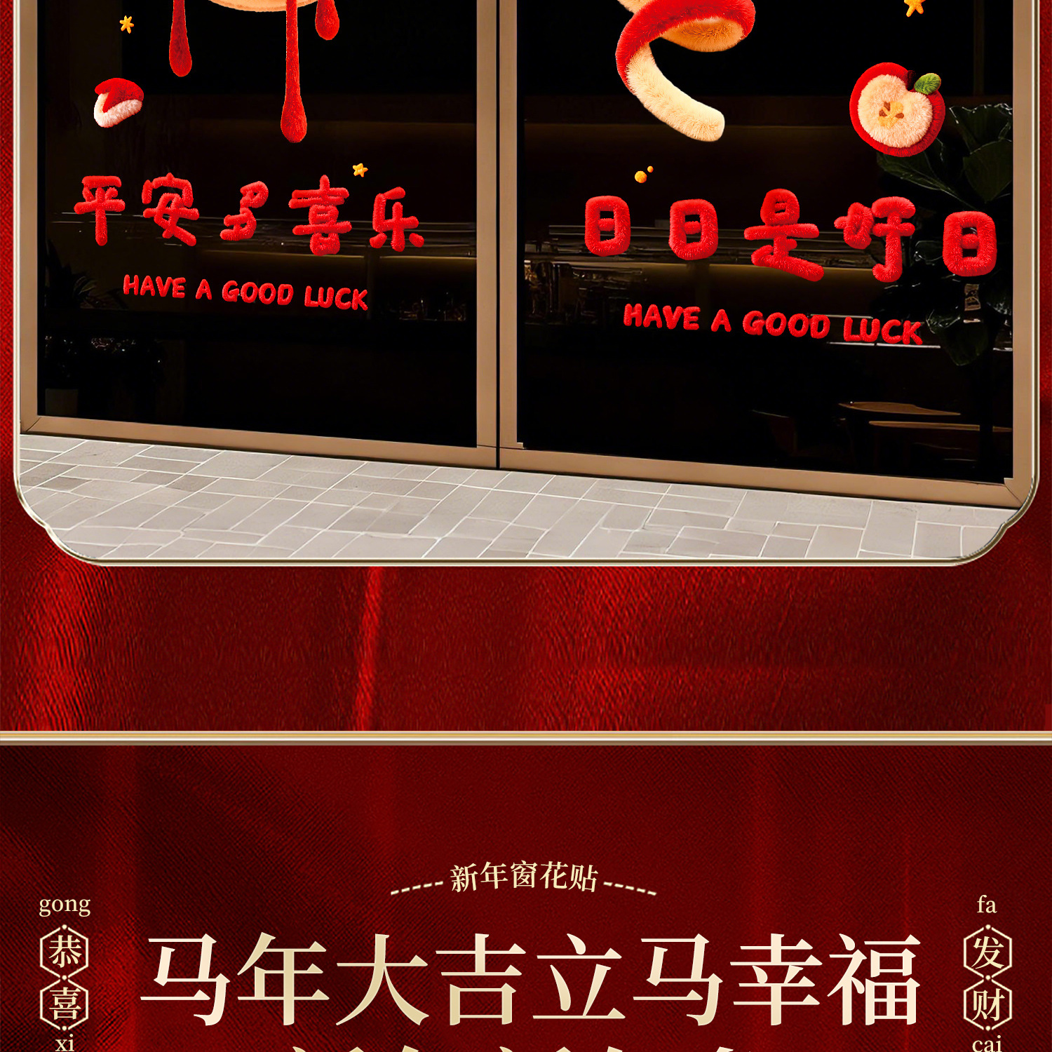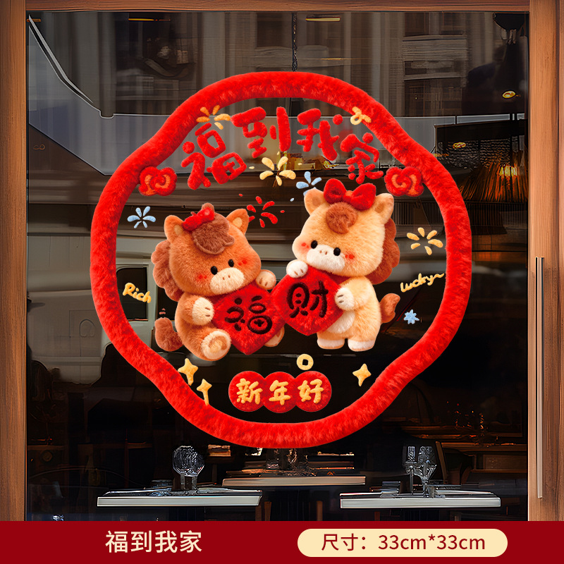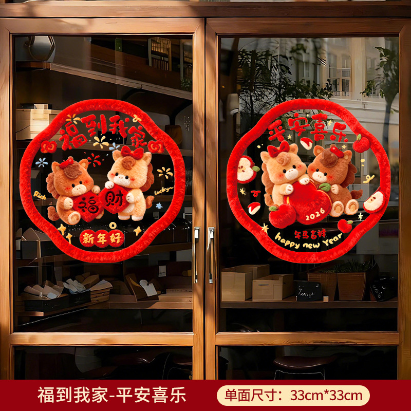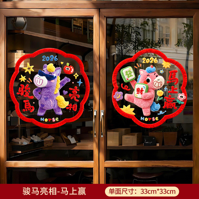 马年窗花2026新款新年静电贴过年生肖福字春节彩色玻璃窗贴纸装饰