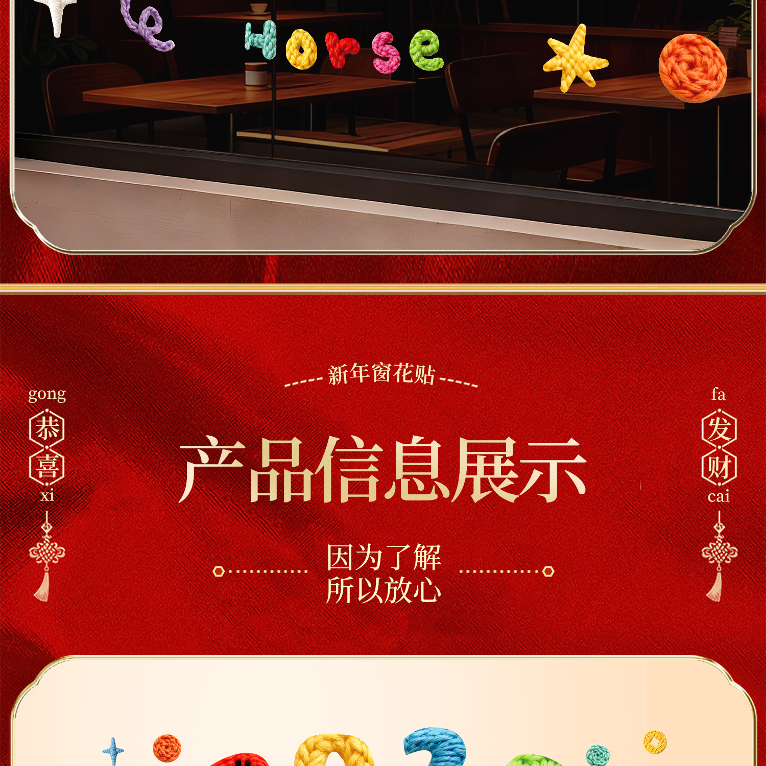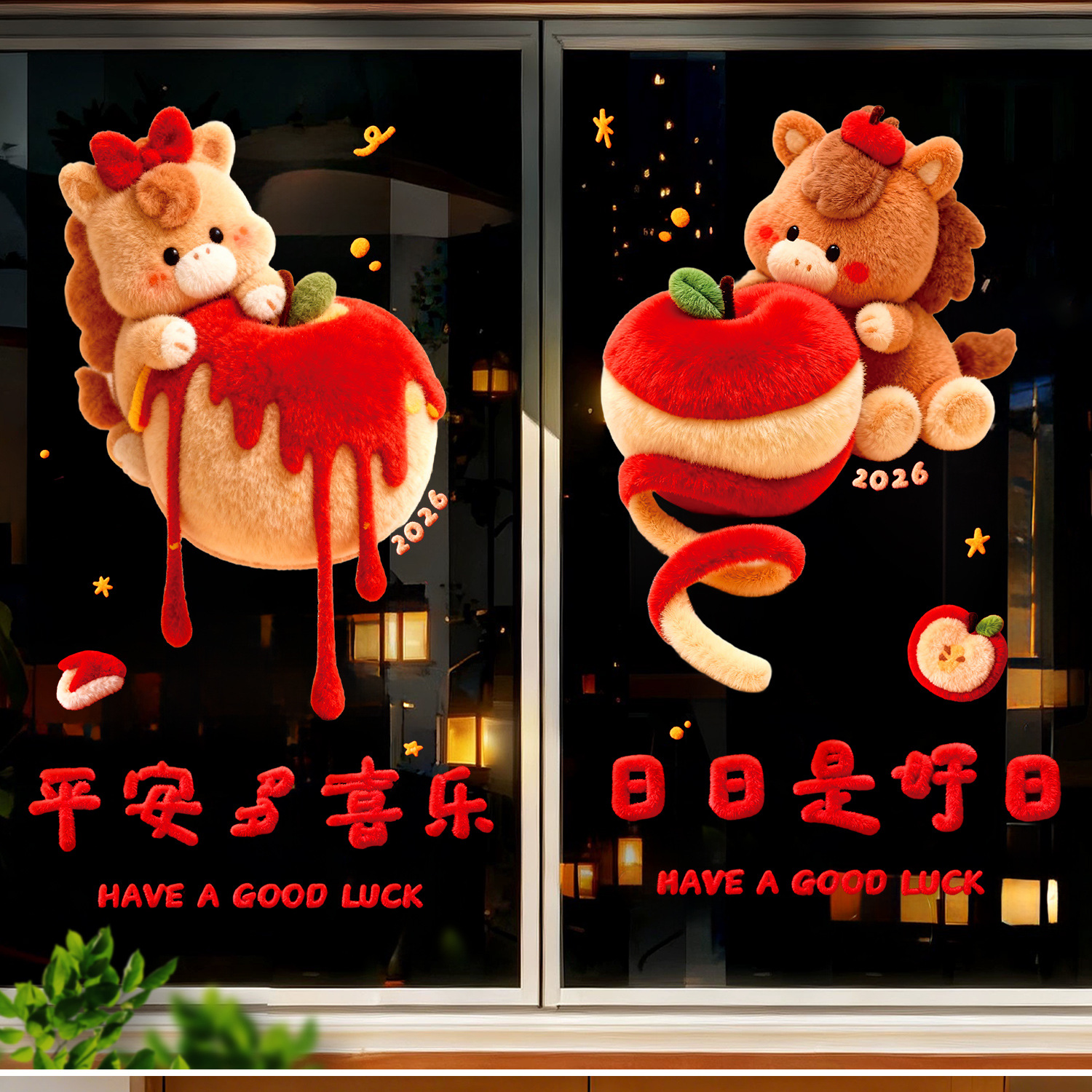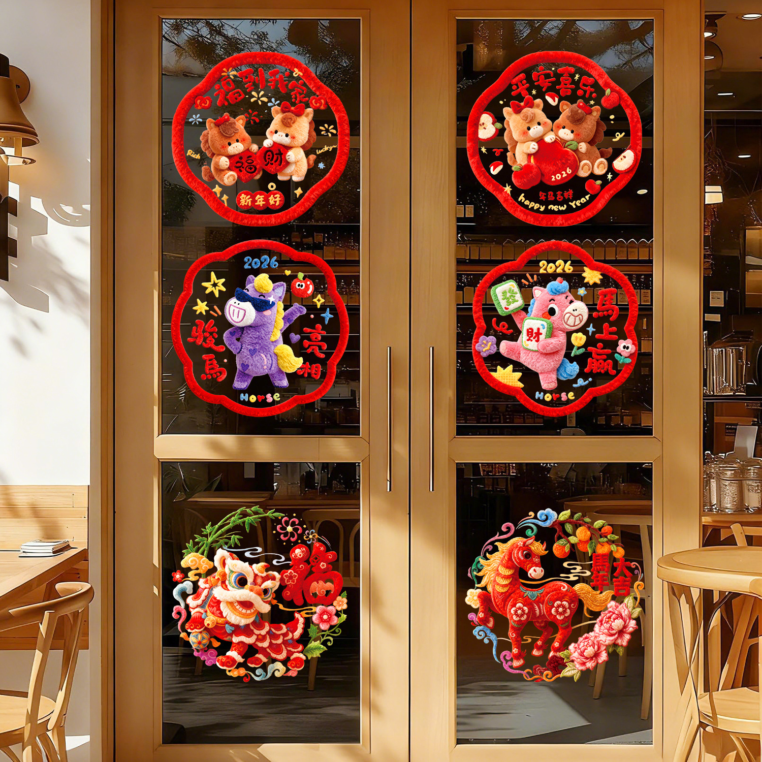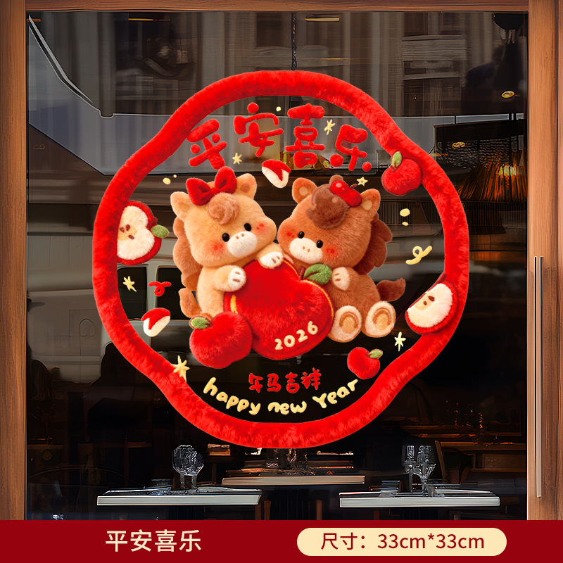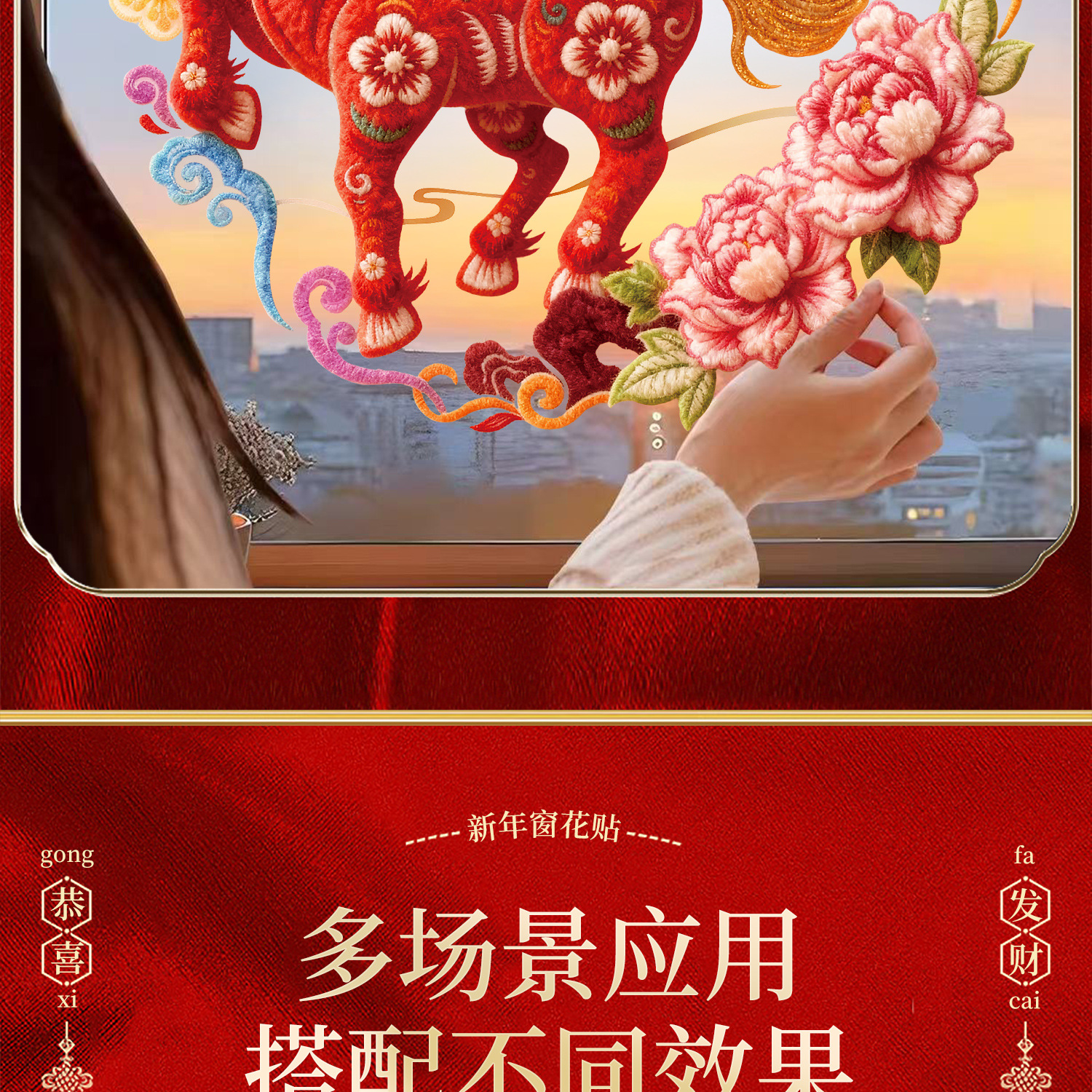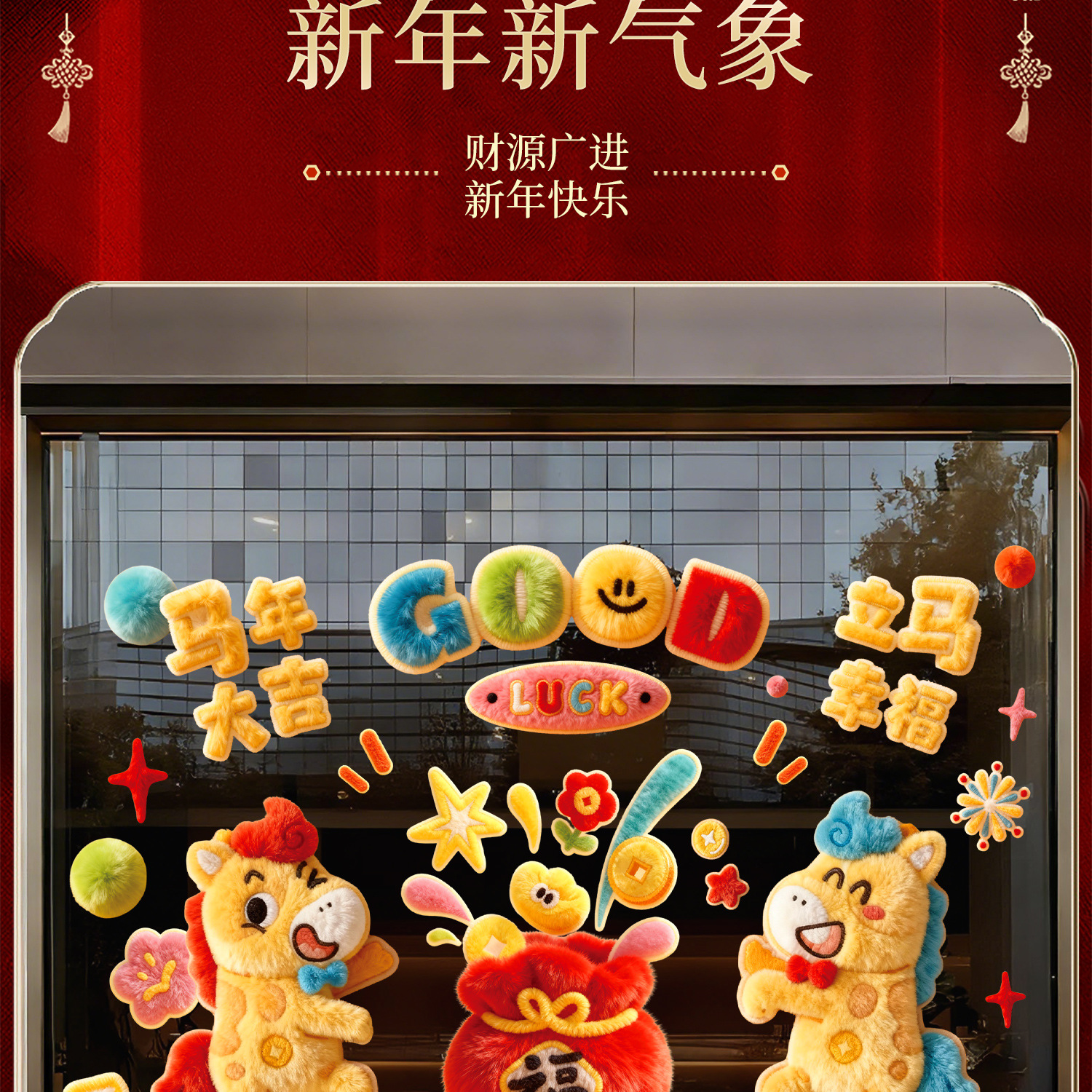 马年窗花2026新款新年静电贴过年生肖福字春节彩色玻璃窗贴纸装饰