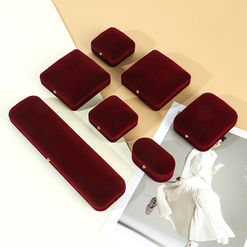 植绒金扣首饰盒戒指耳钉收纳盒吊坠项链珠宝盒手镯翡翠饰品包装盒
