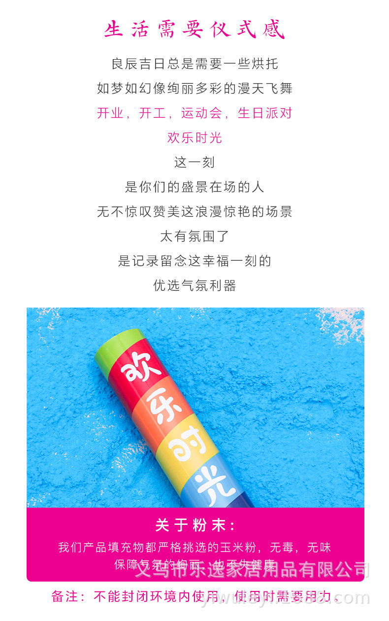 五彩粉末礼炮学校运动会开幕式喷花筒街拍道具彩跑粉彩色玉米粉