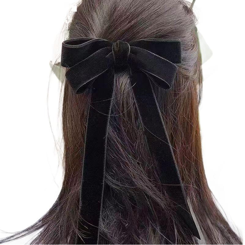 亚马逊爆款冬款绒带双蝴蝶结发夹发饰时尚简约百搭公主鸭嘴夹发夹