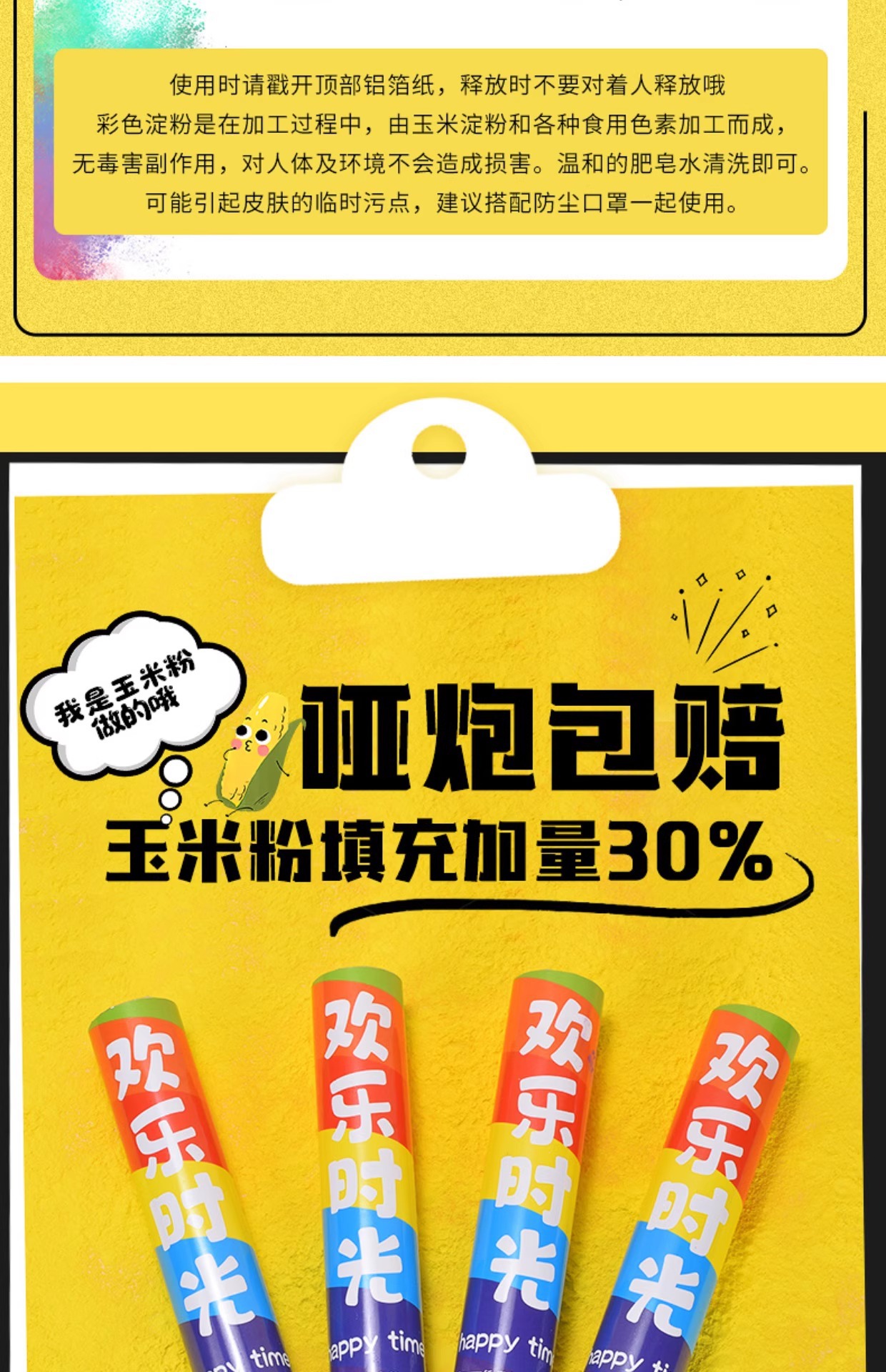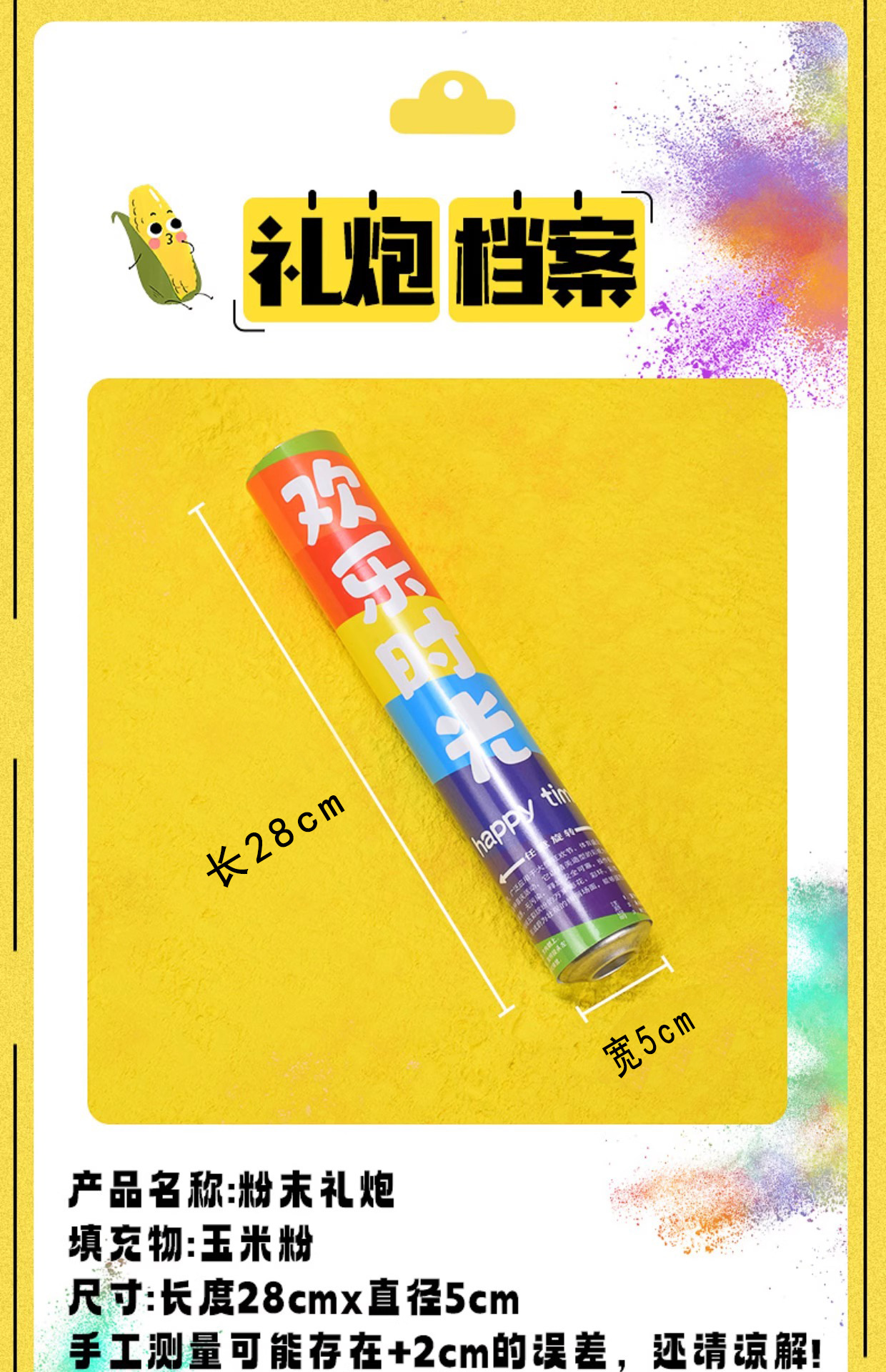 五彩粉末礼炮 学校运动会开幕式喷花筒 街拍道具彩跑粉彩色玉米粉