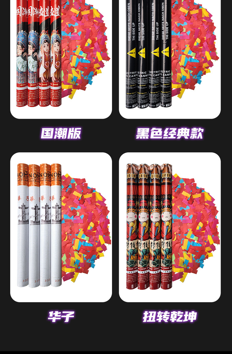酒吧礼花礼炮夜店专用国潮华子手拧礼炮阻燃纸气氛道具礼花筒批发