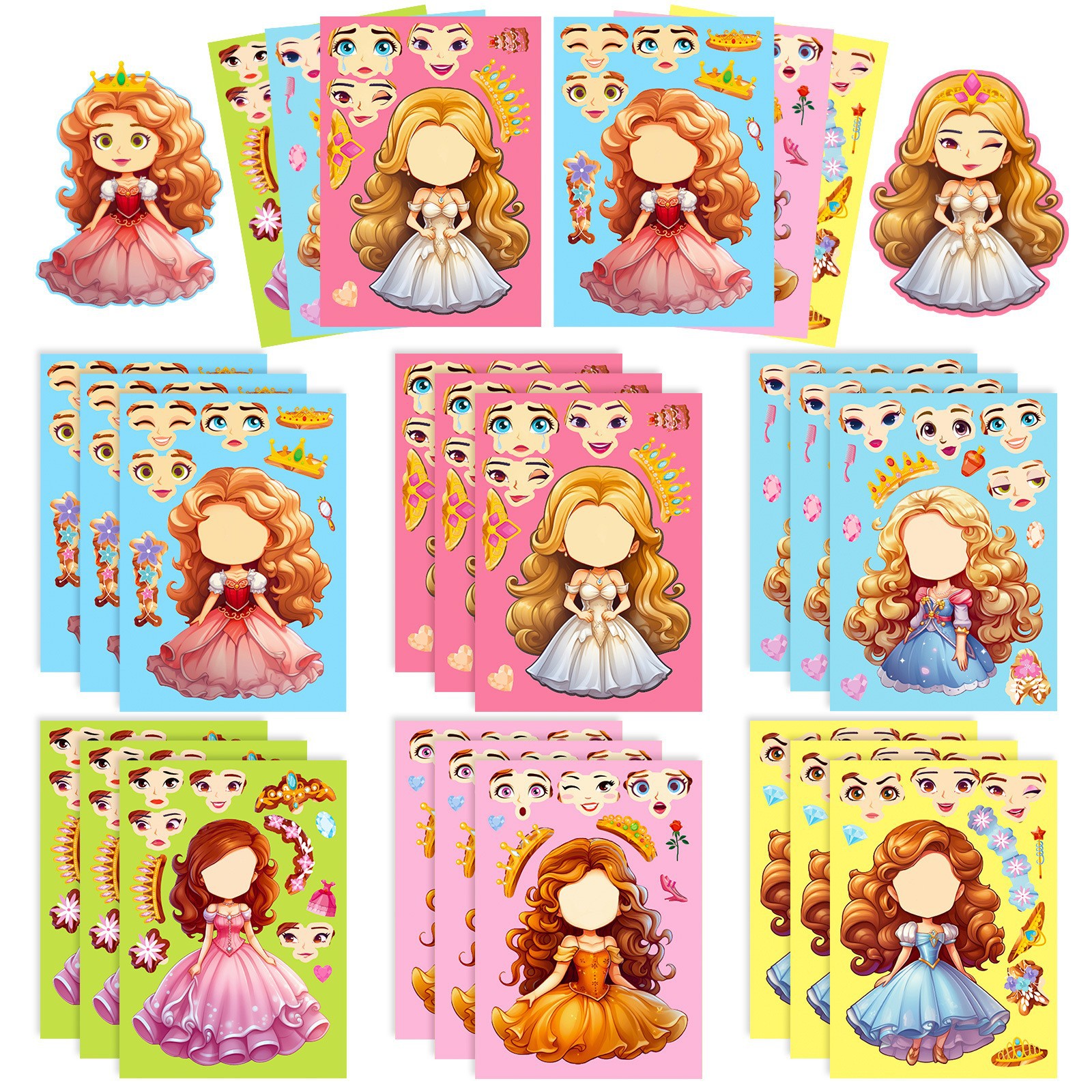 6张/包公主换脸贴拼图贴纸卡通公主换脸Make a face玩具拼图贴