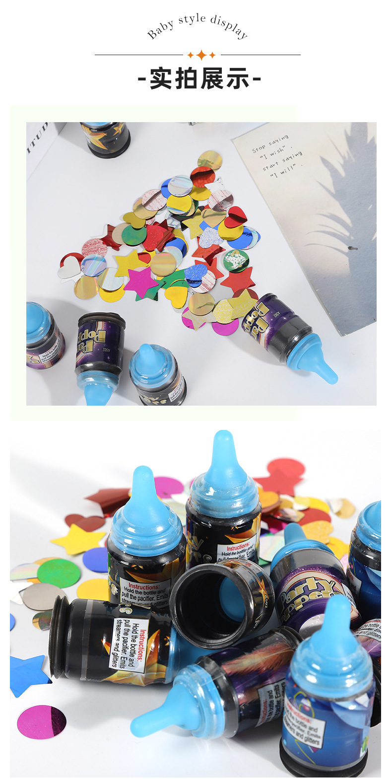 奶瓶新年小拉炮小礼花装饰布置儿童生日小玩具派对氛围感气氛道具