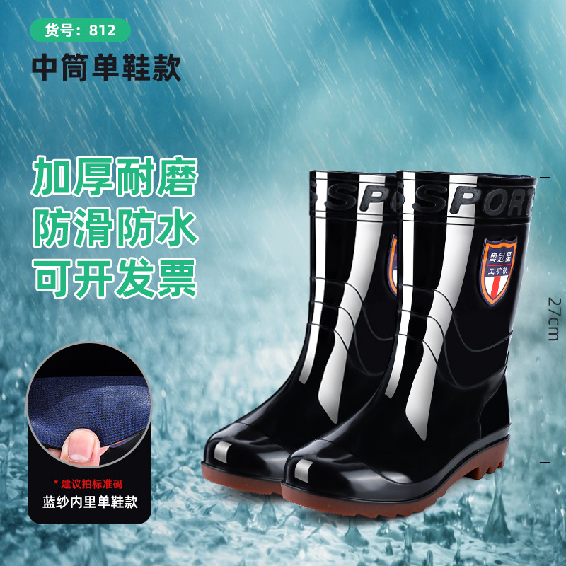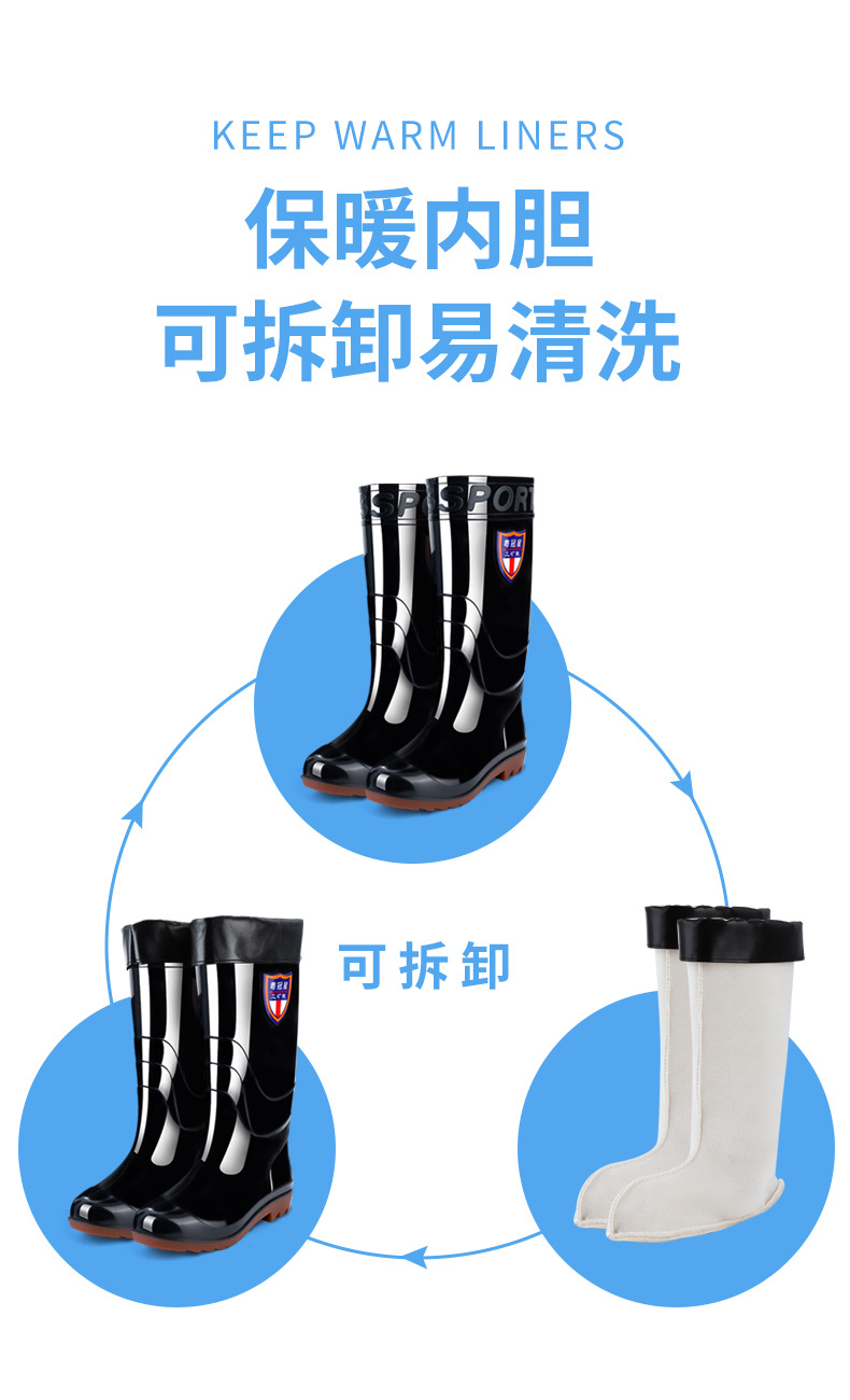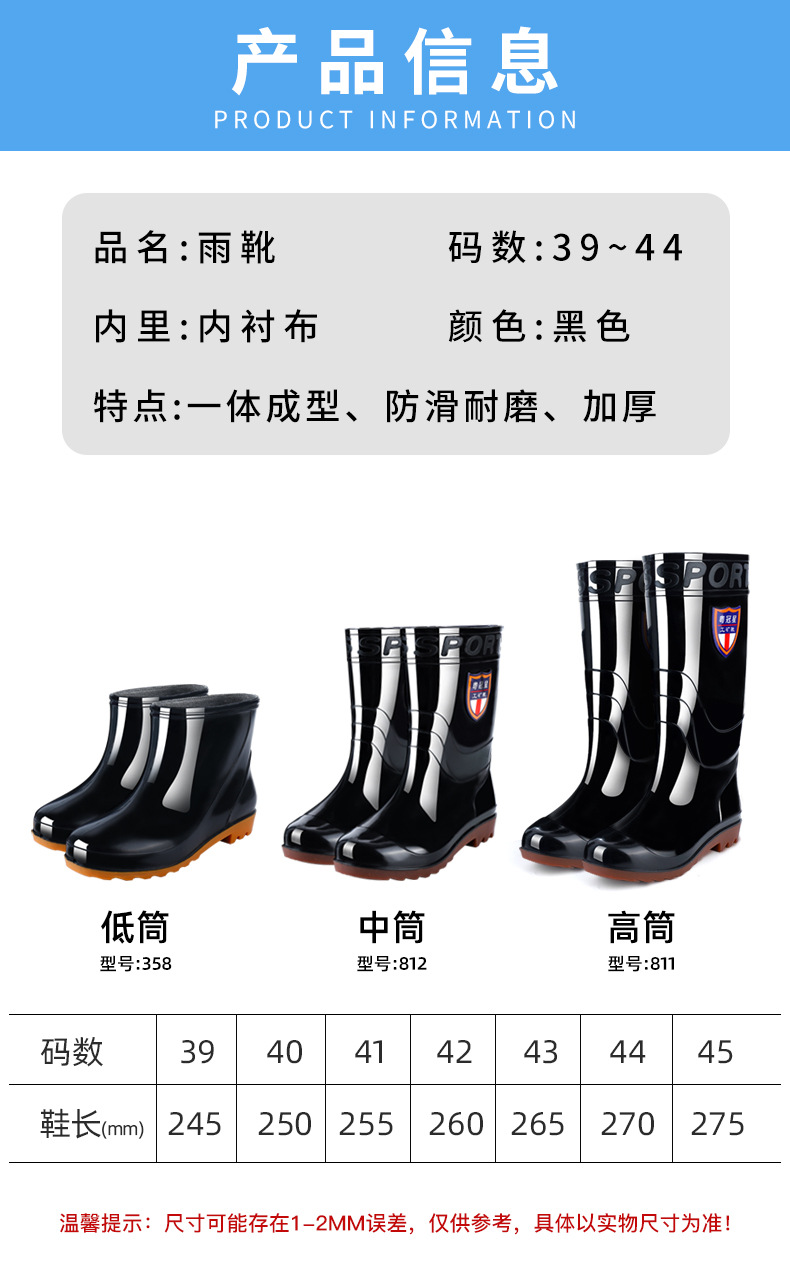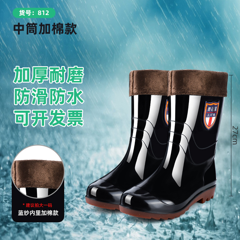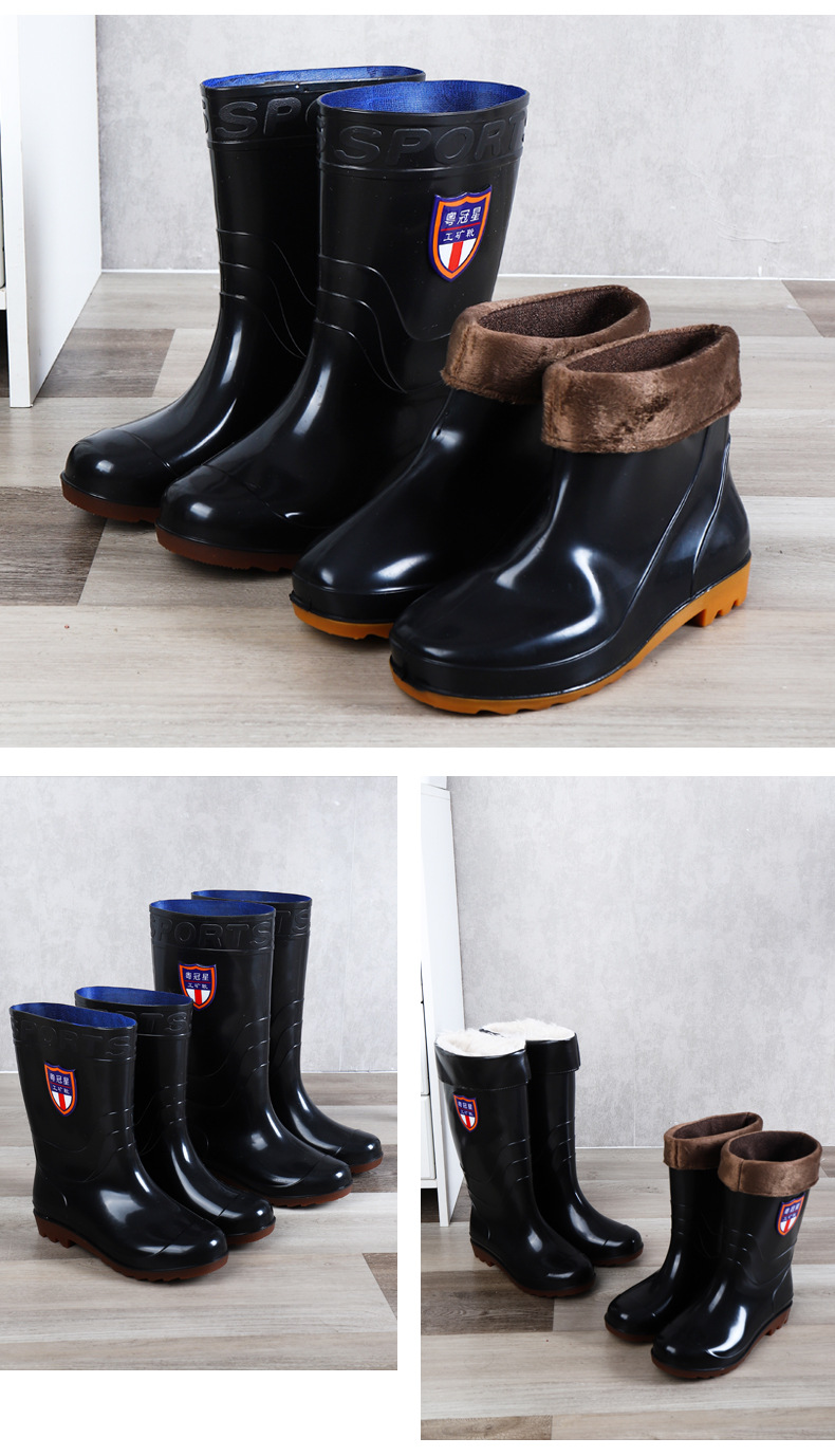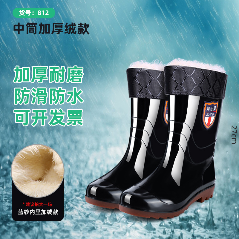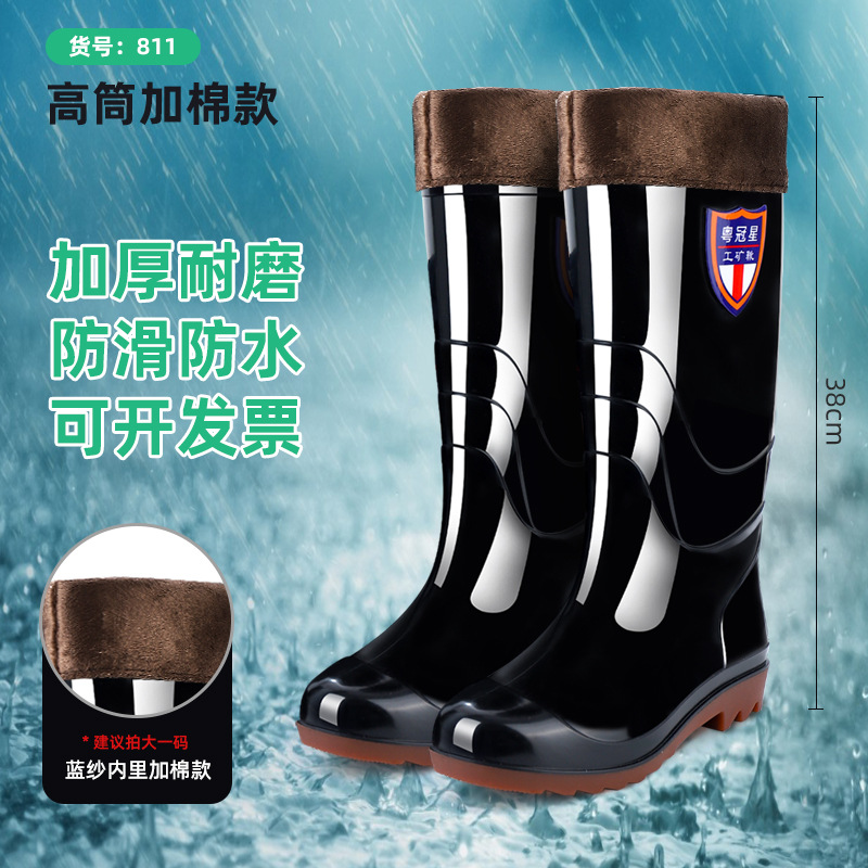 包邮防滑耐磨牛筋底水鞋男款 劳保高筒加绒雨靴男洗车工地防水鞋