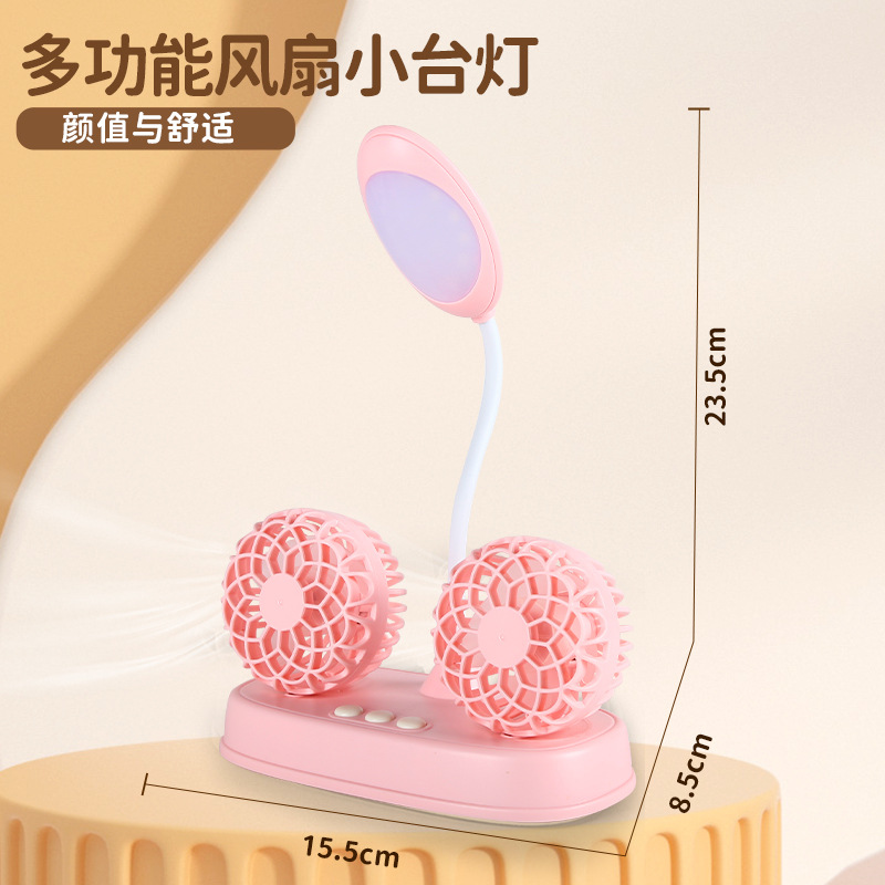 新款多功能1200毫安长续航双头风扇台灯USB充电三档调速桌面风扇