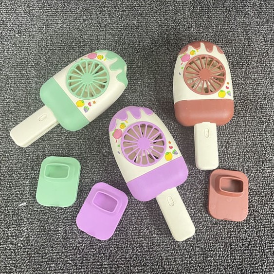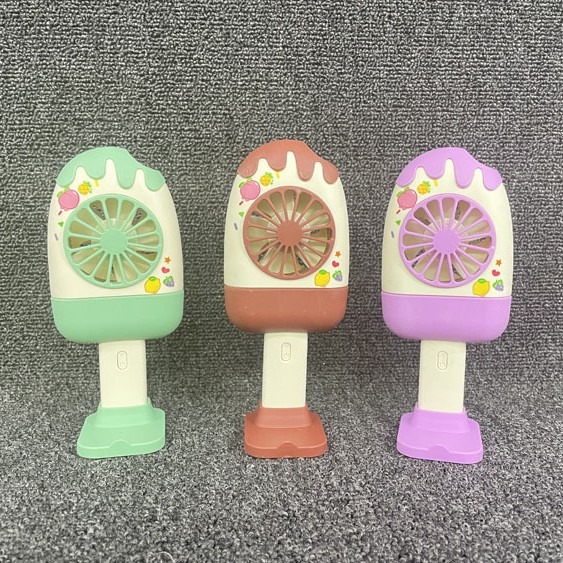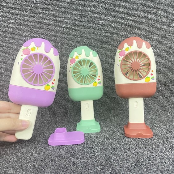 跨境新款冰淇淋风扇带底座手持USB充电迷你桌面小风扇三档大风力