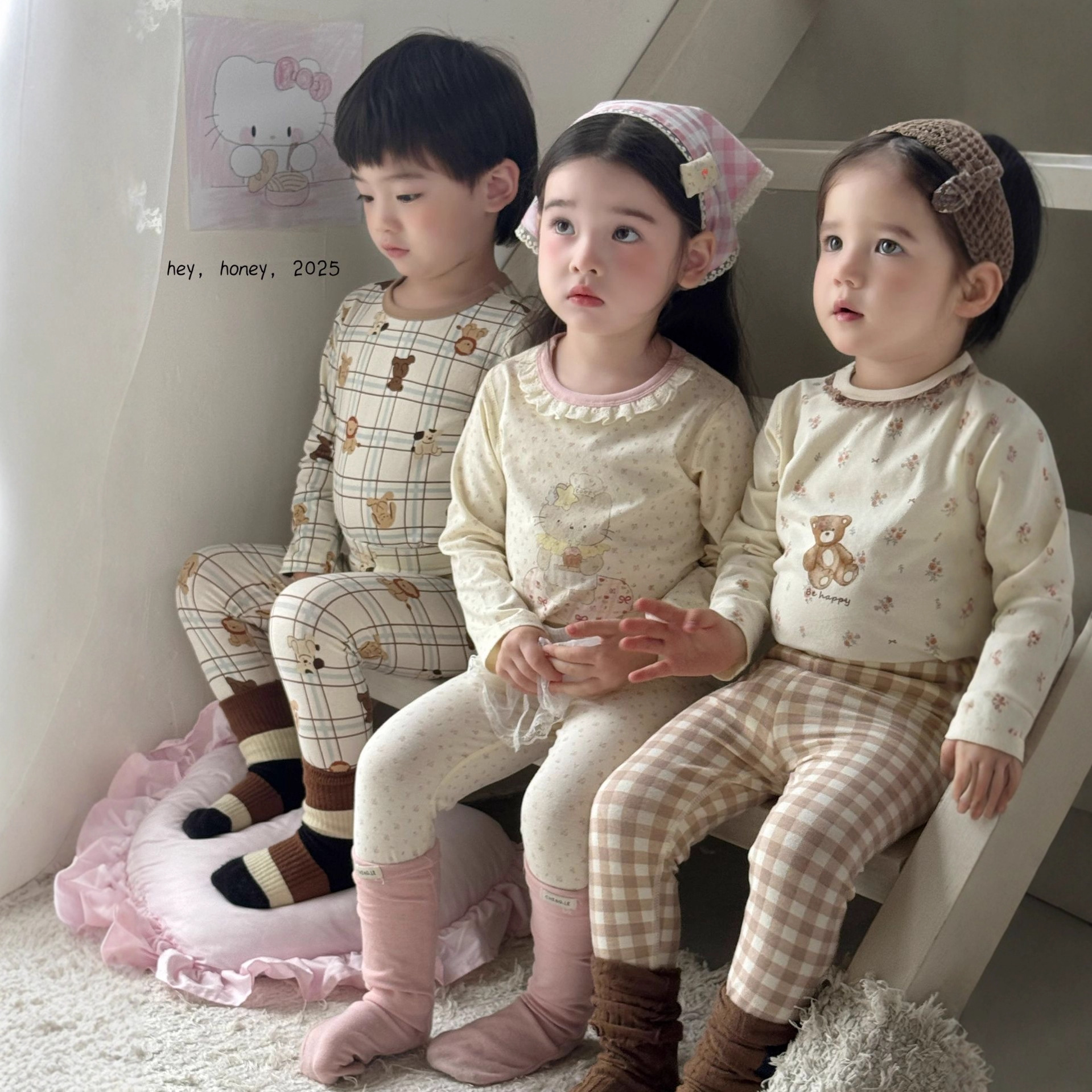 大小卷 Hey honey男女童200克莱卡秋衣秋裤无骨内衣套装纯棉睡衣