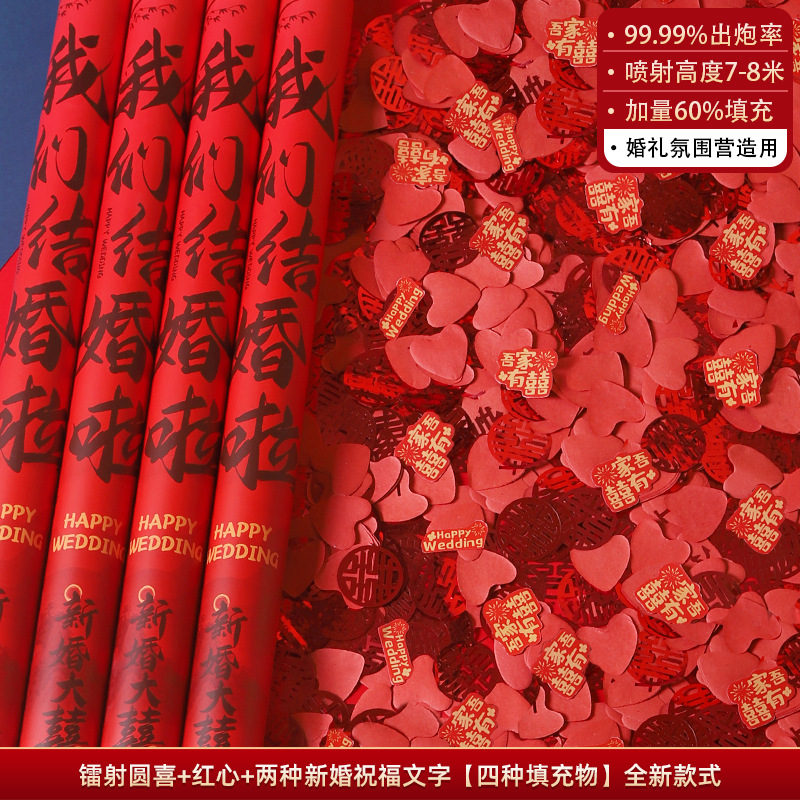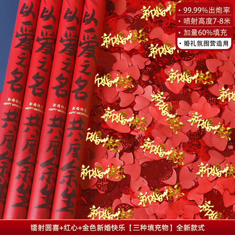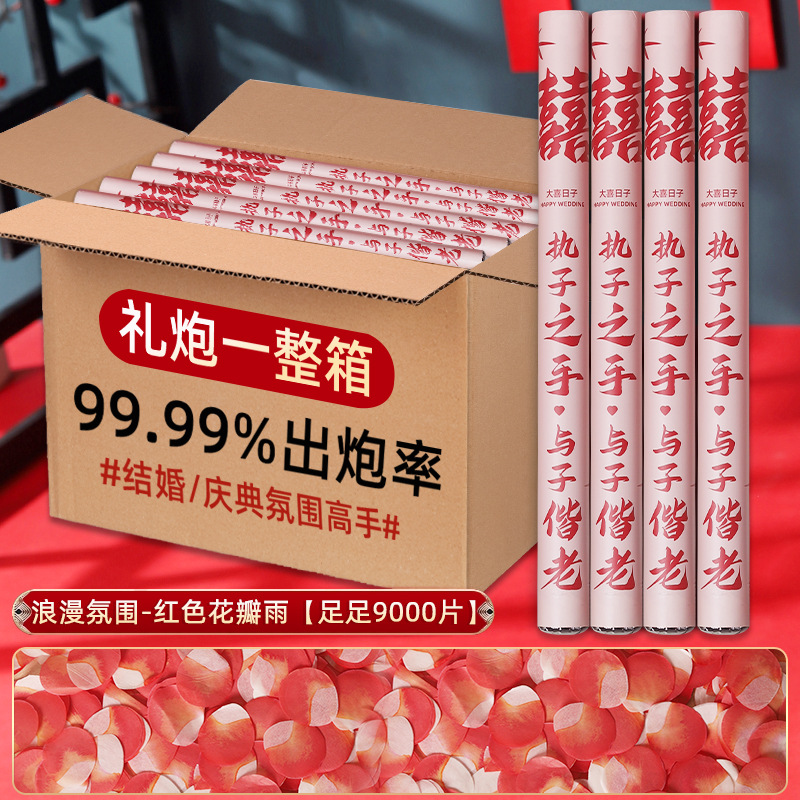 新中式国潮结婚喜庆礼花筒手持花瓣雨婚庆用品大全手拧礼花炮彩带
