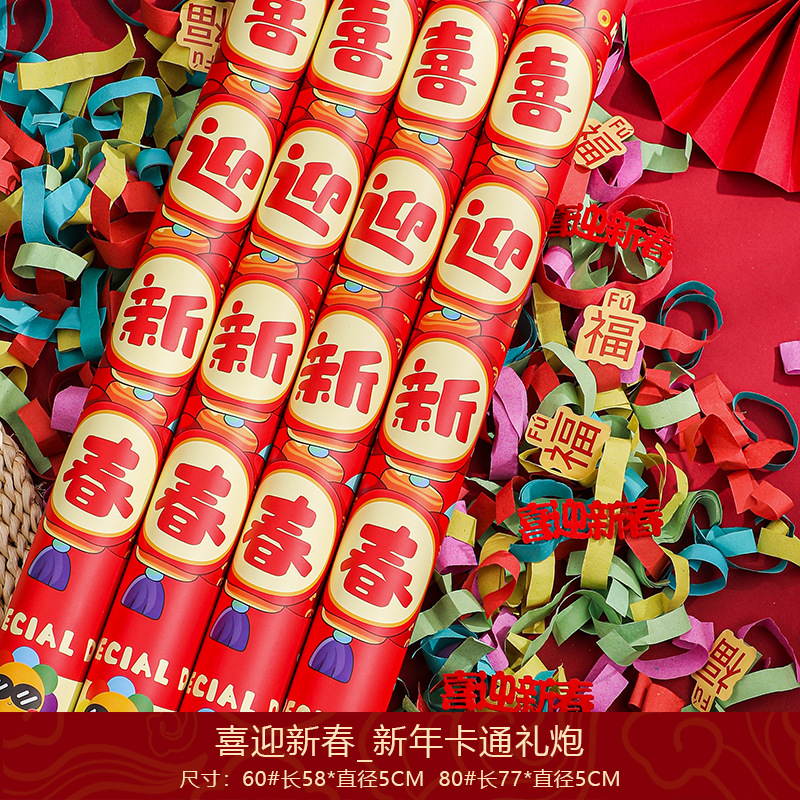 新年装饰2025新款礼炮礼花春节彩带喷花蛇年过年氛围手持礼花筒烟