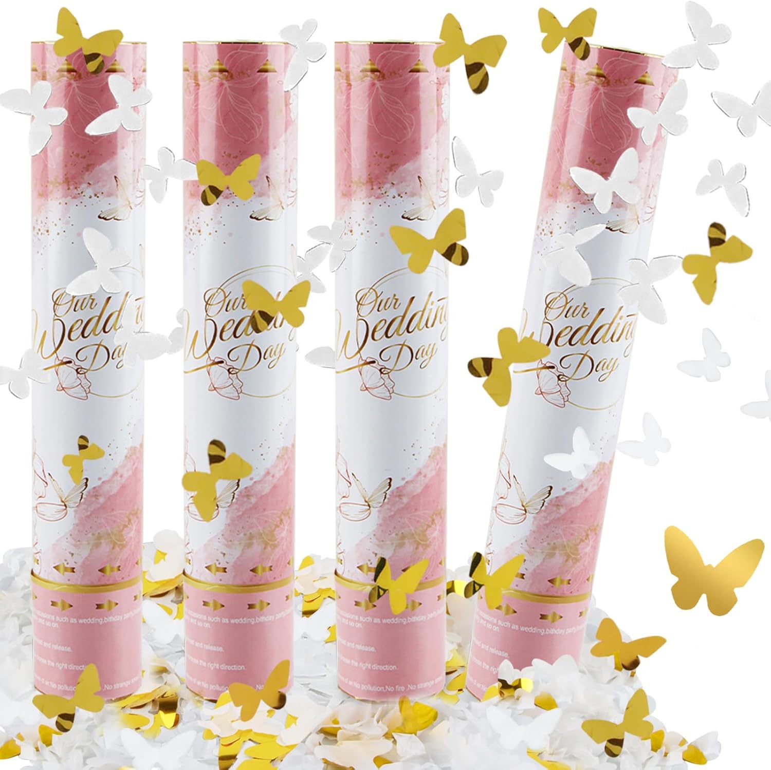 跨境新品白色蝴蝶礼花礼炮结婚wedding主题手拧礼花筒阻燃纸屑