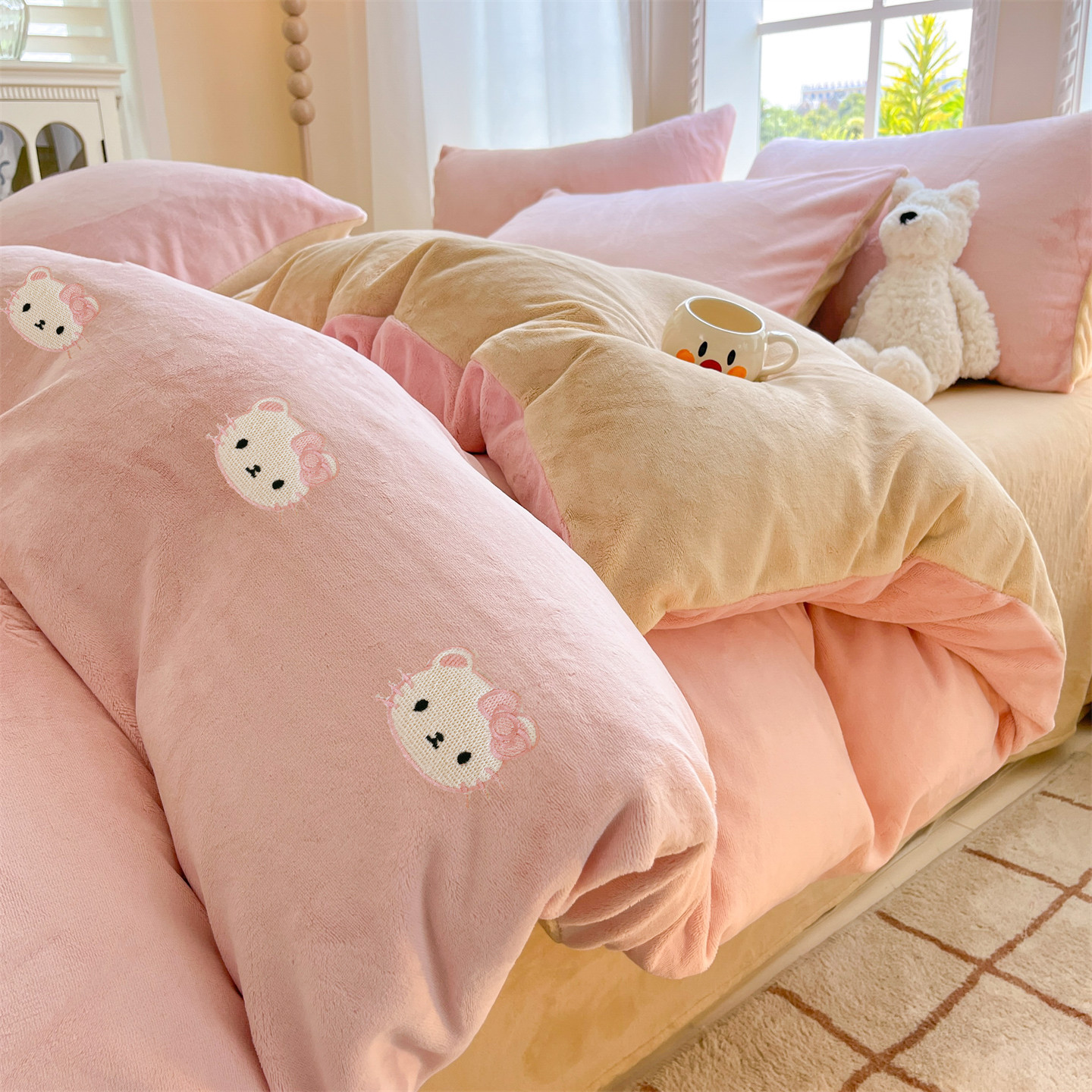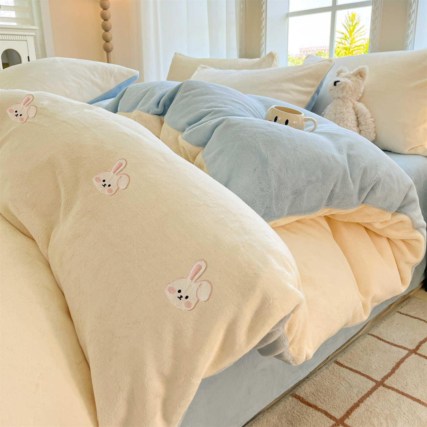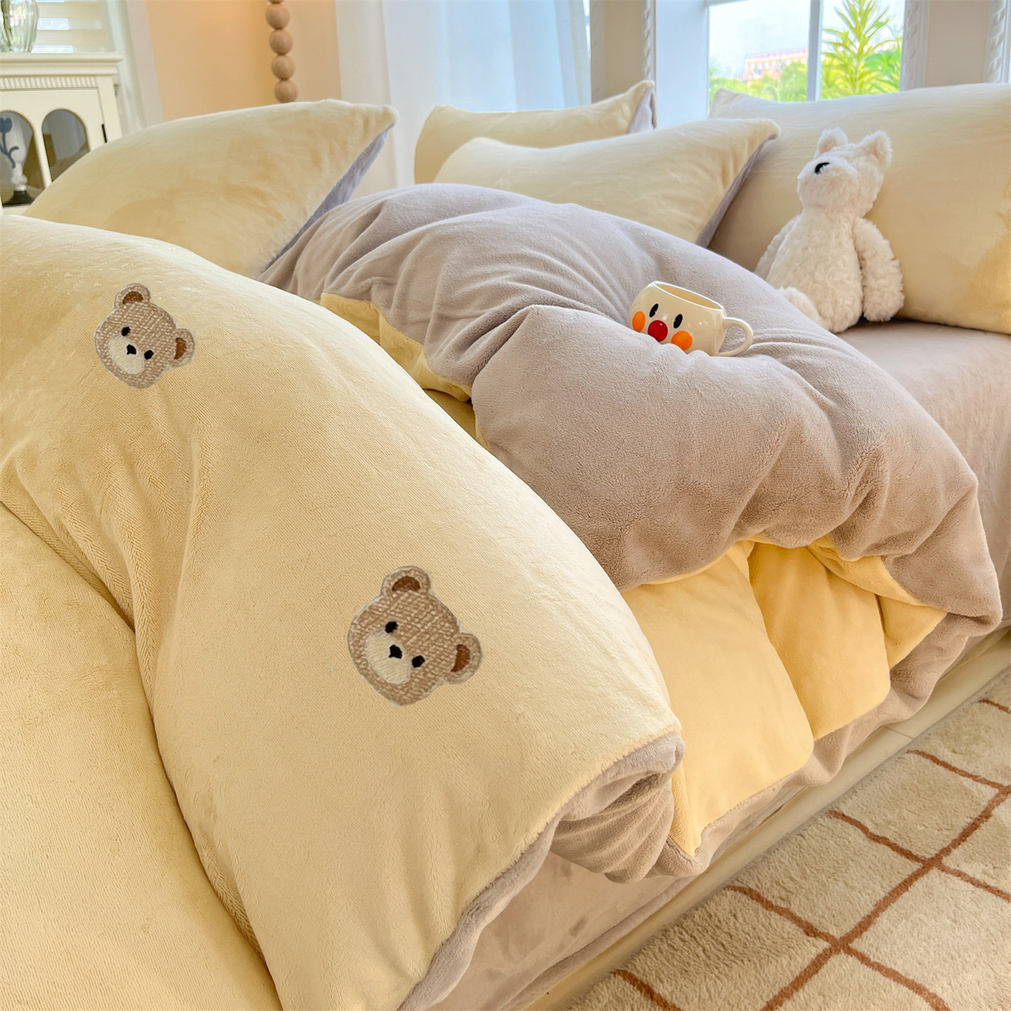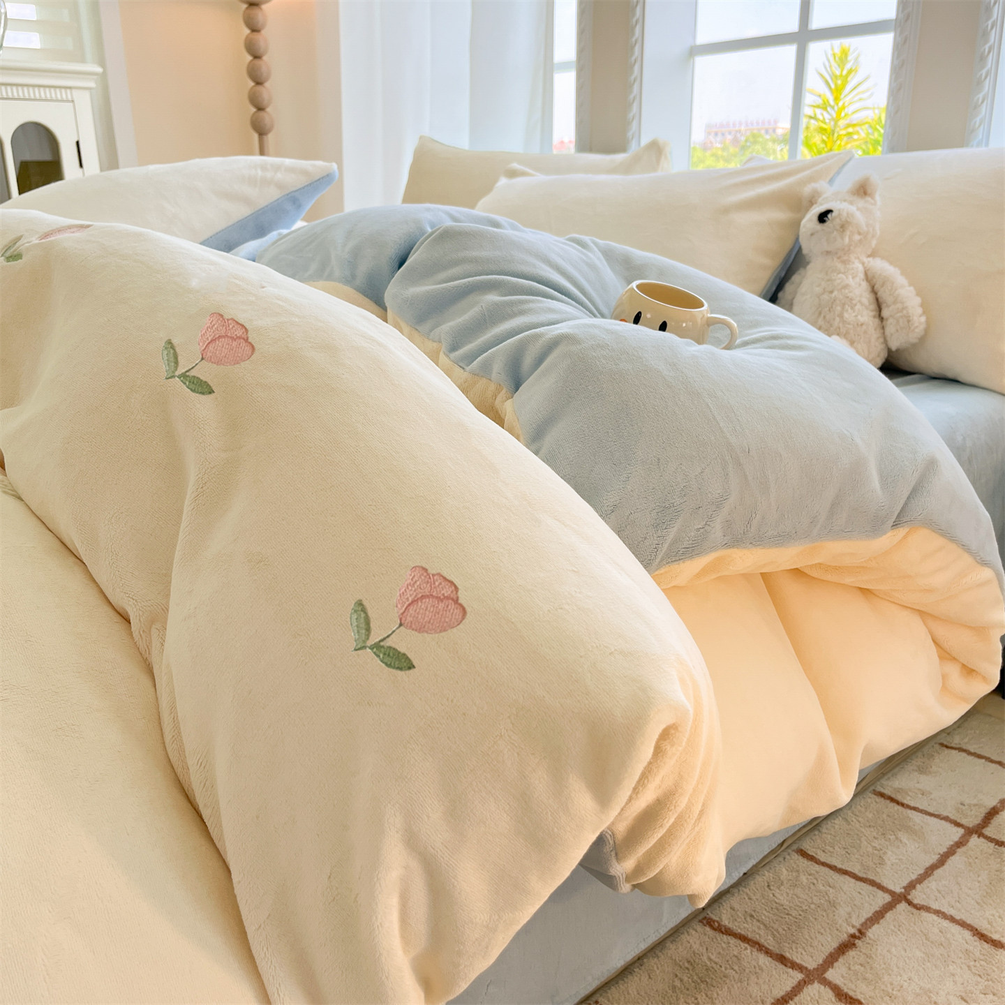 冬季加绒加厚牛奶绒四件套法兰绒床单被套毛绒冬天床上用品三件套