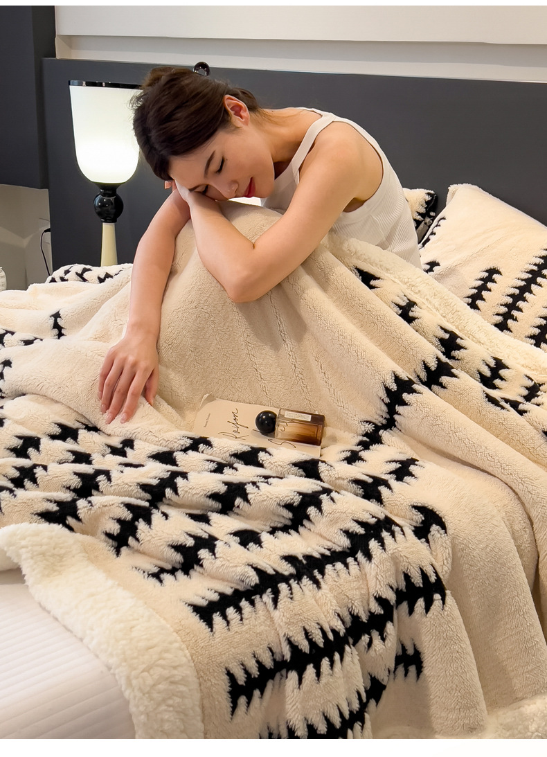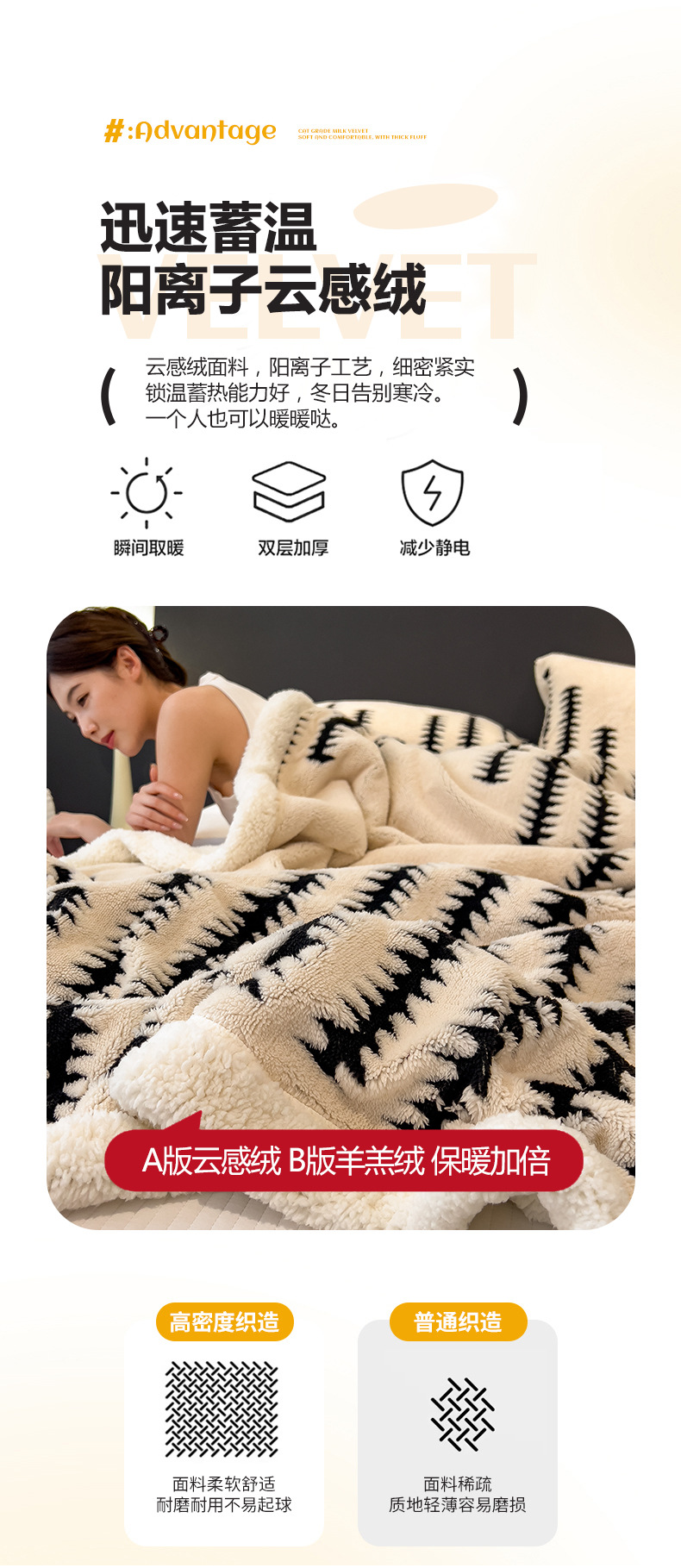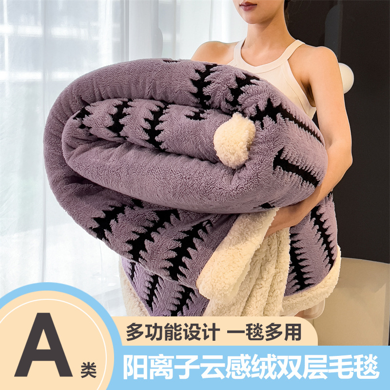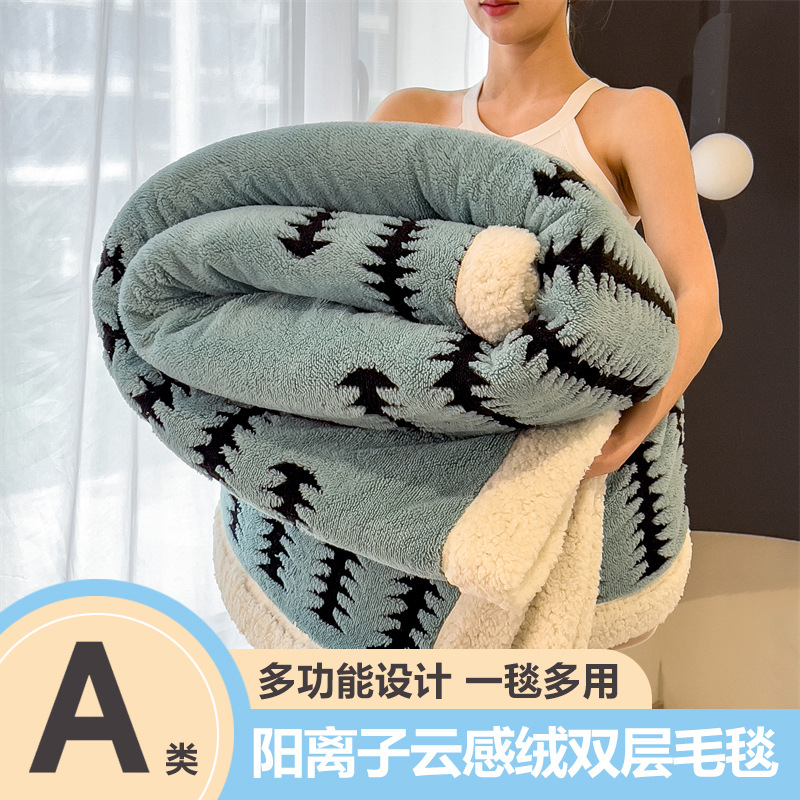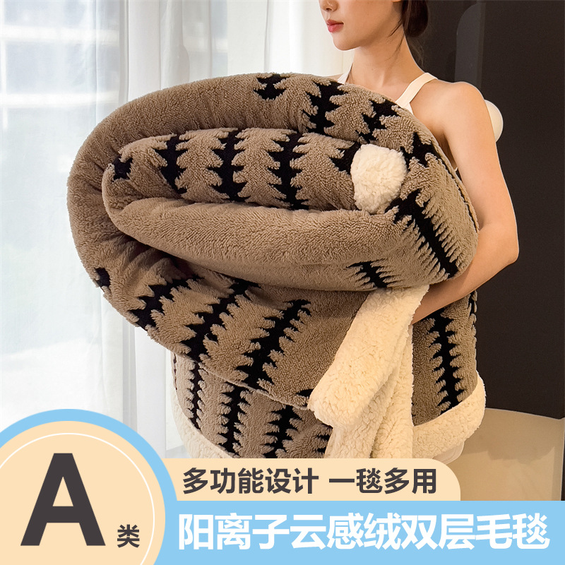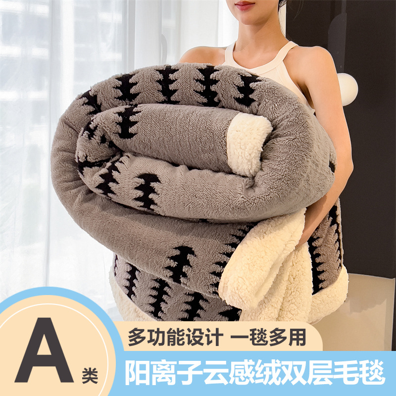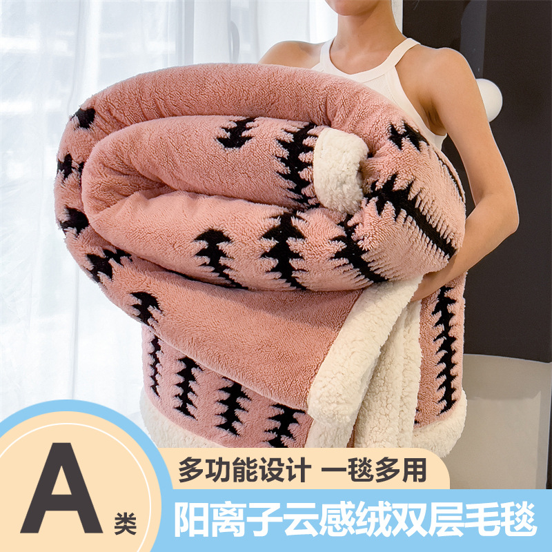 A类提花加厚云感绒羊羔绒双层毛毯被子加厚午睡单人办公室小毯子