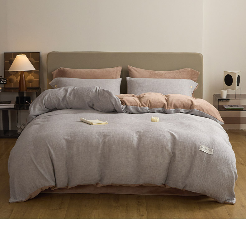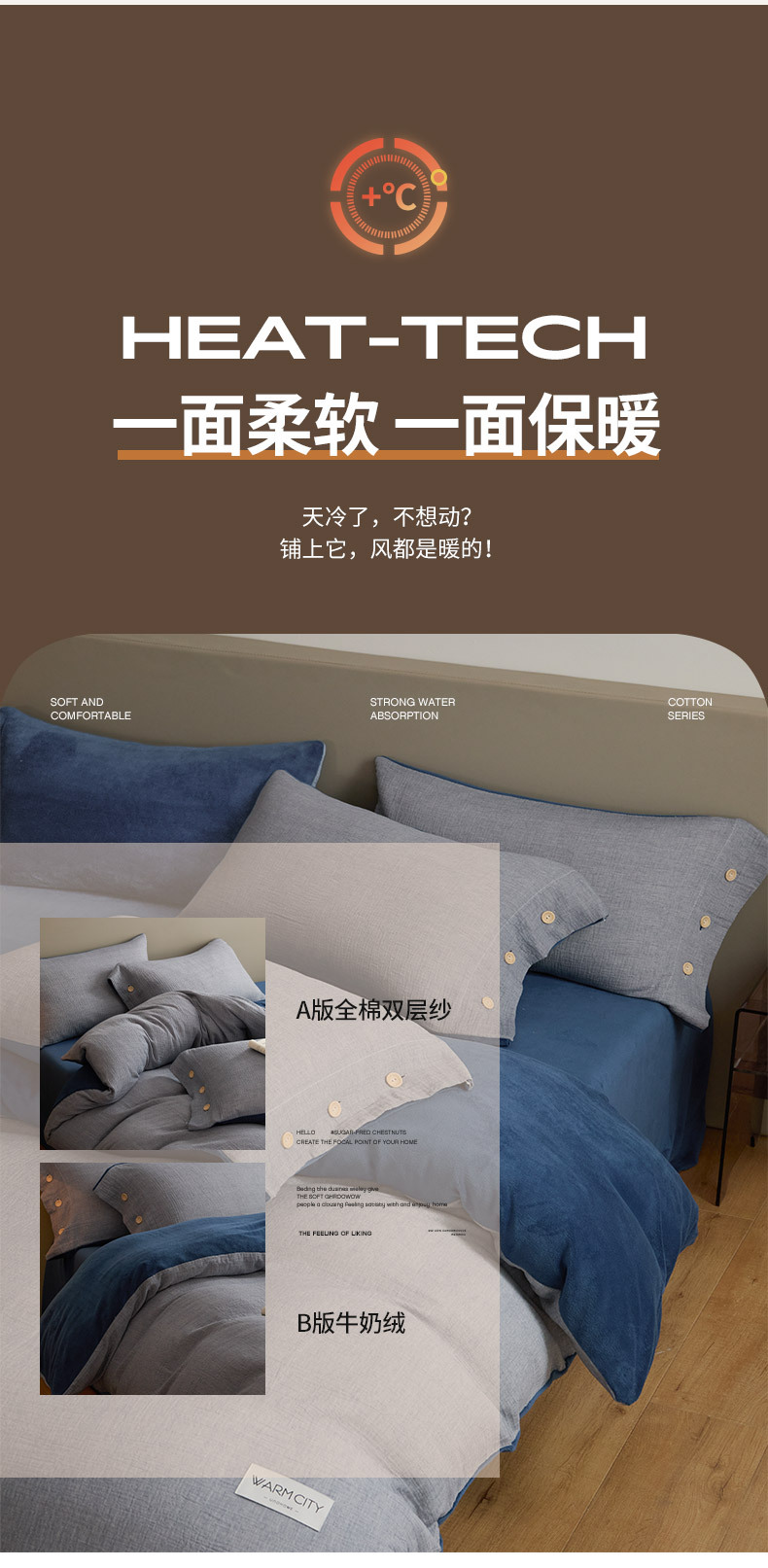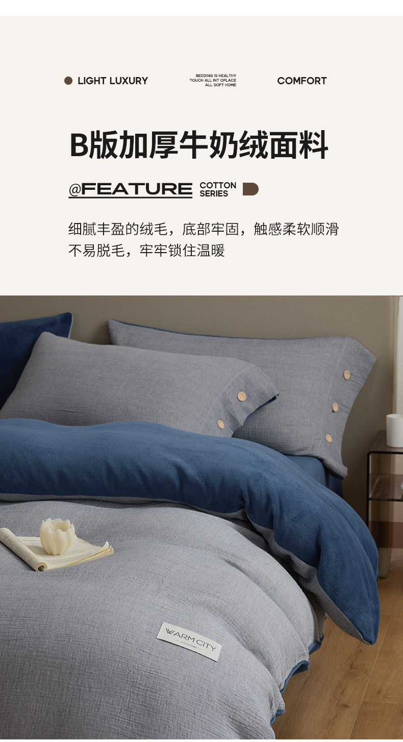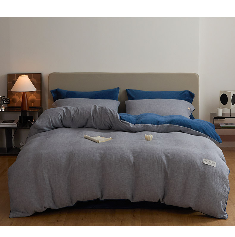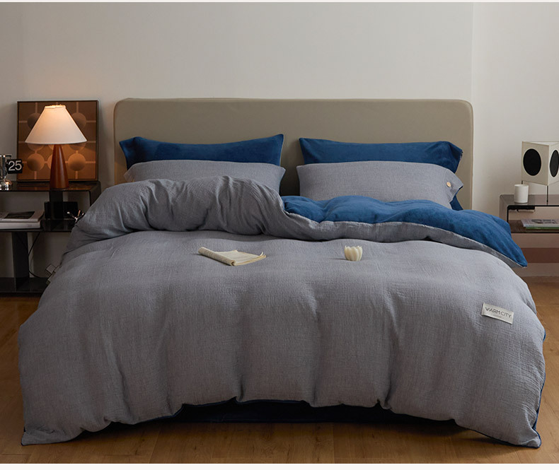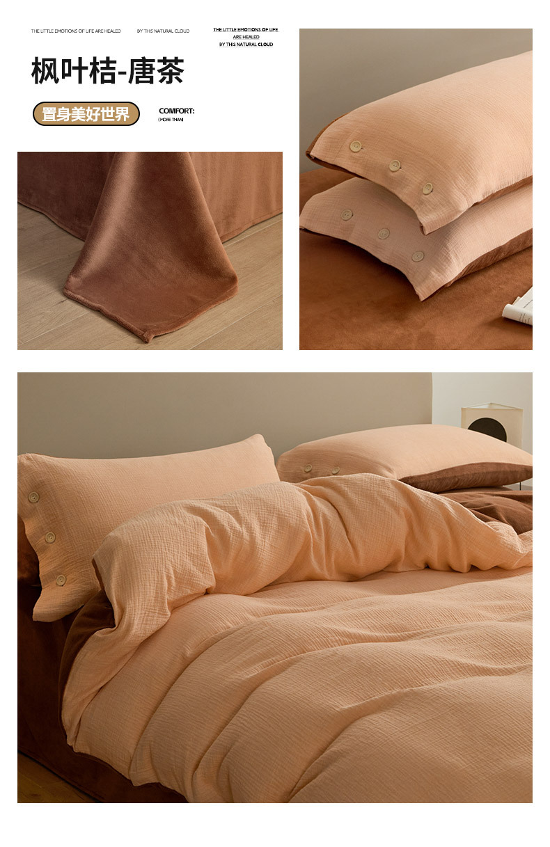 ab面四件套纯棉全棉加绒被套床单珊瑚绒冬季单面绒牛奶绒床上用品